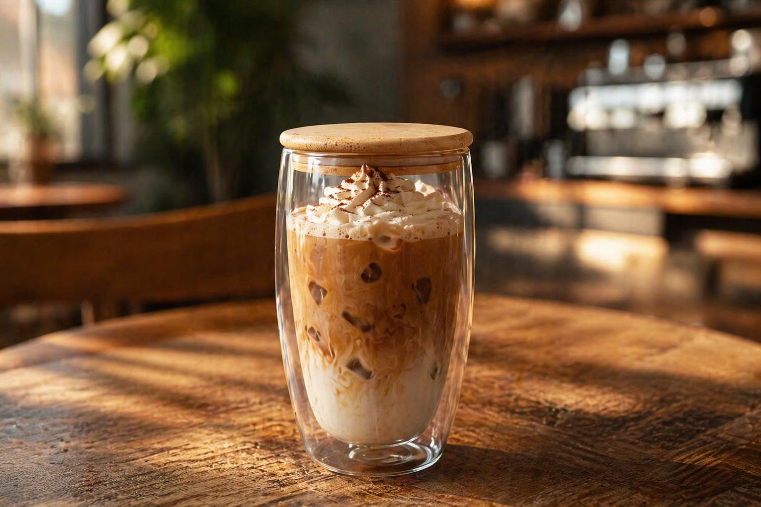 Двойные стенки создают эффект «парящего напитка»: кофе, чай или лимонад выглядят визуально дороже и интереснее.