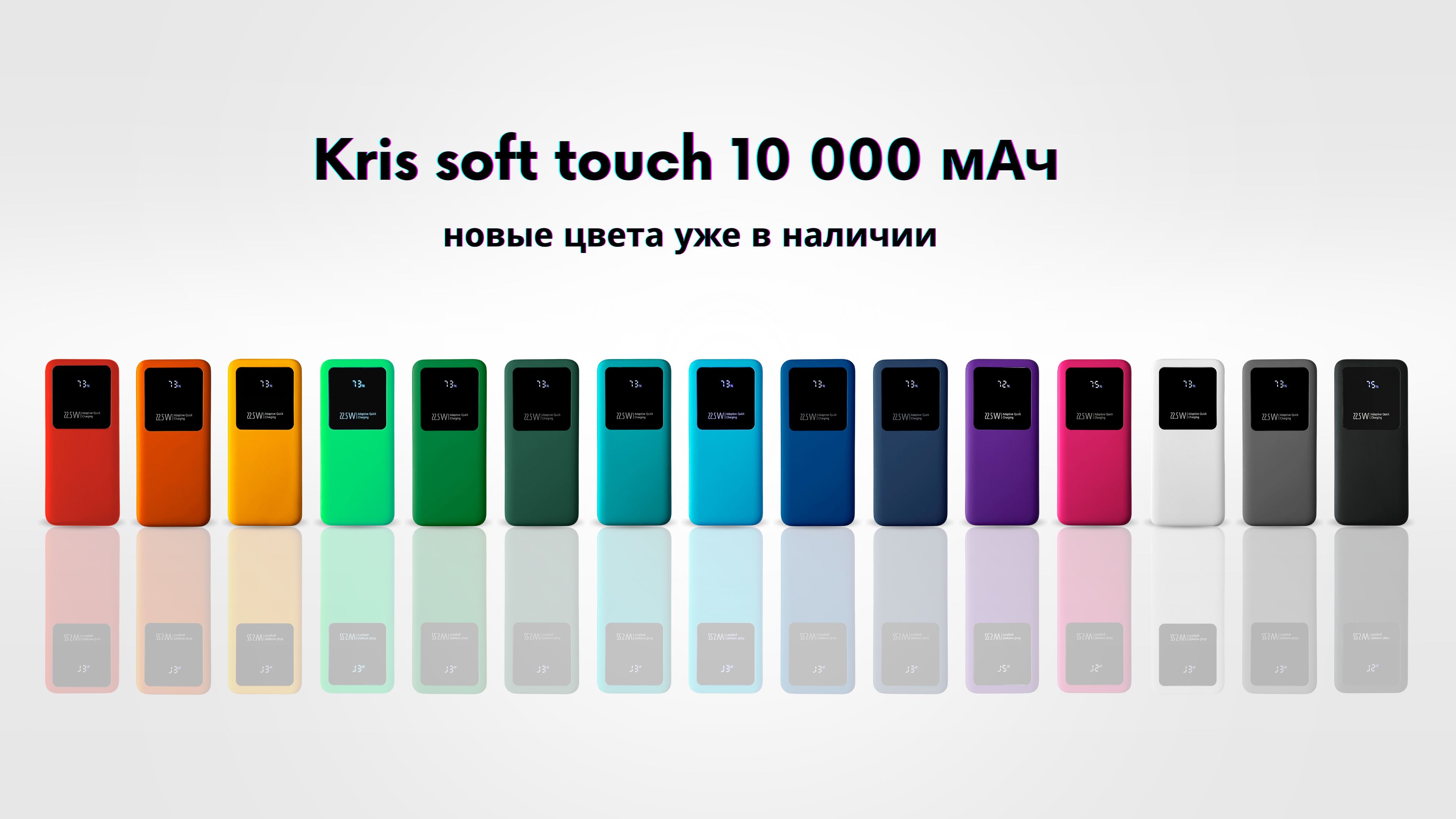 В капсульной коллекции FAMILY пополнение – на склад поступили новые цвета внешнего аккумулятора KRIS SOFT TOUCH 10 000 мАч, ещё больше выбора для тех, кто ценит стиль, удобство и функциональность.