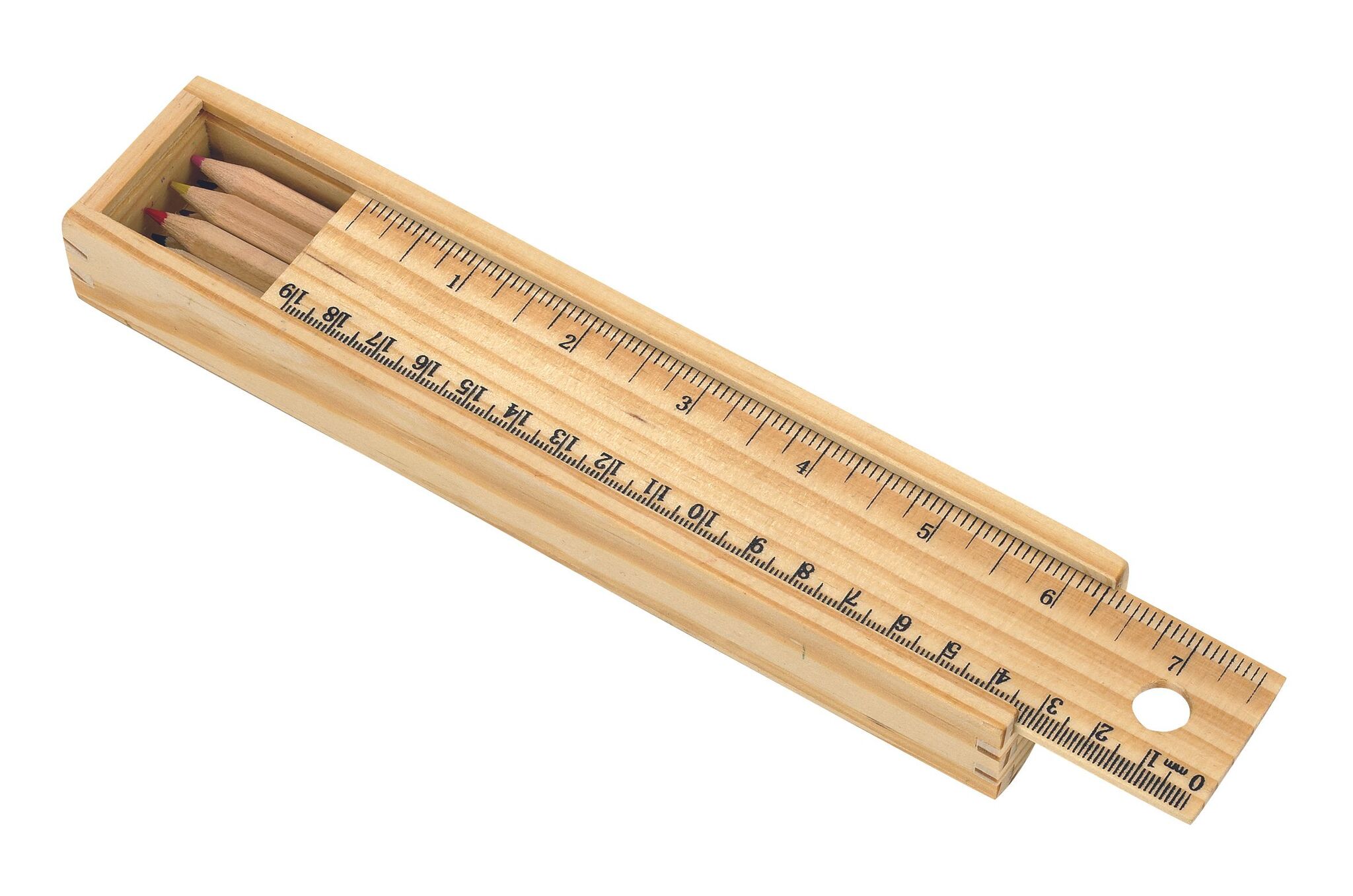 8 цветных карандашей STRAIGHT , заточенные, изготовленные из натуральноего дерева упакованы в деревянный ящик с линейкой