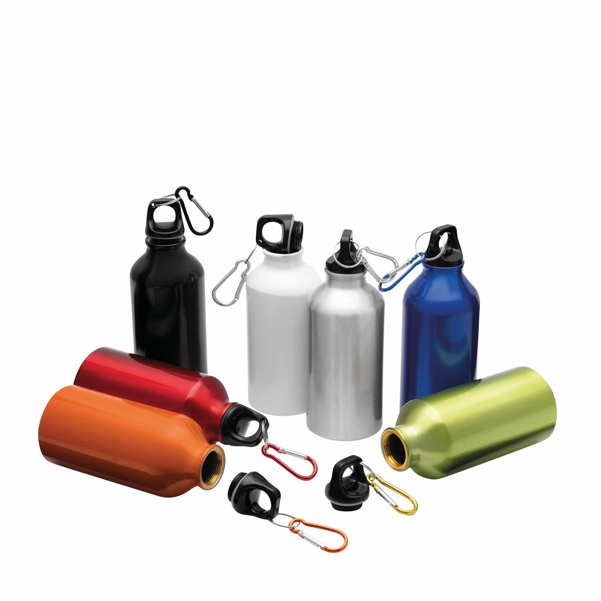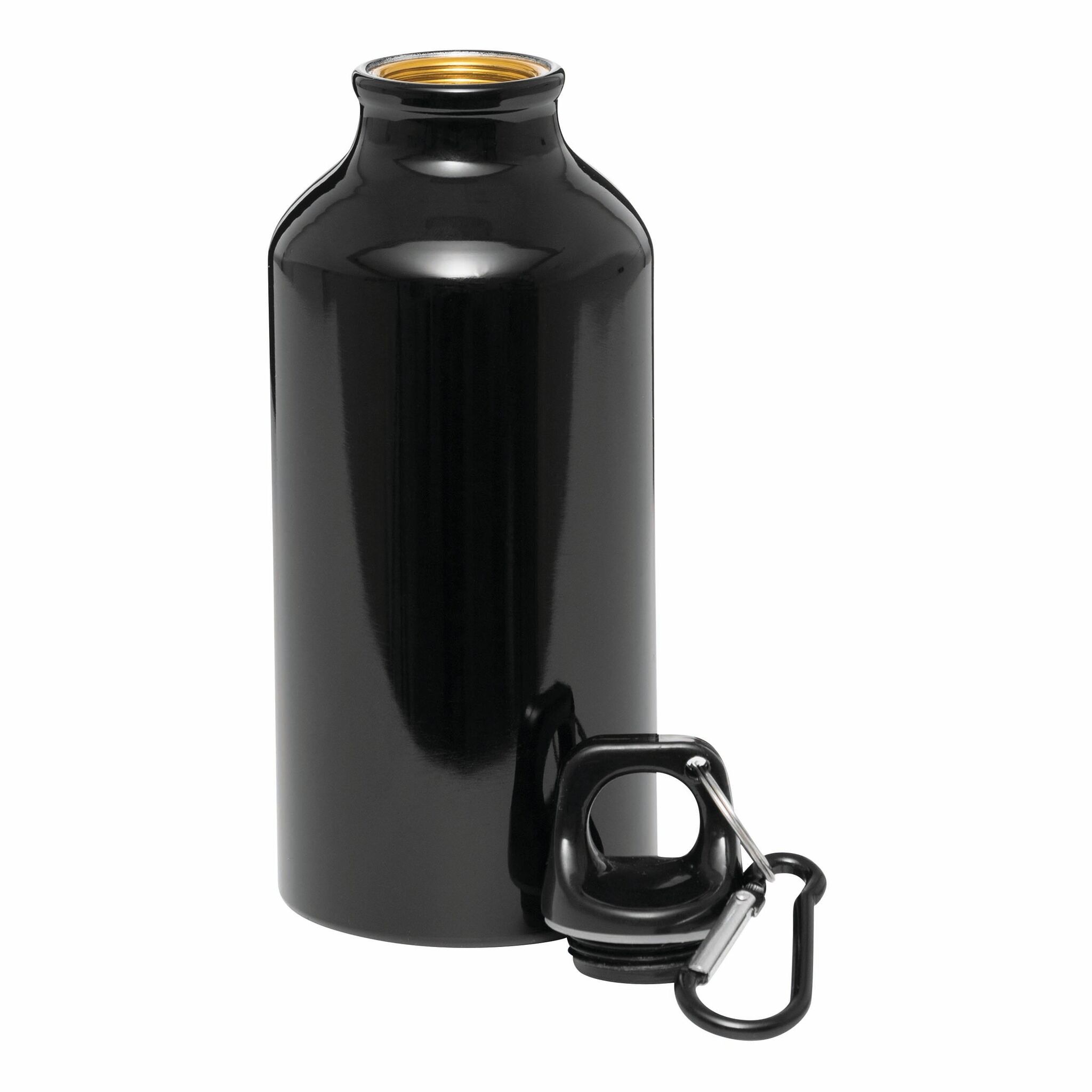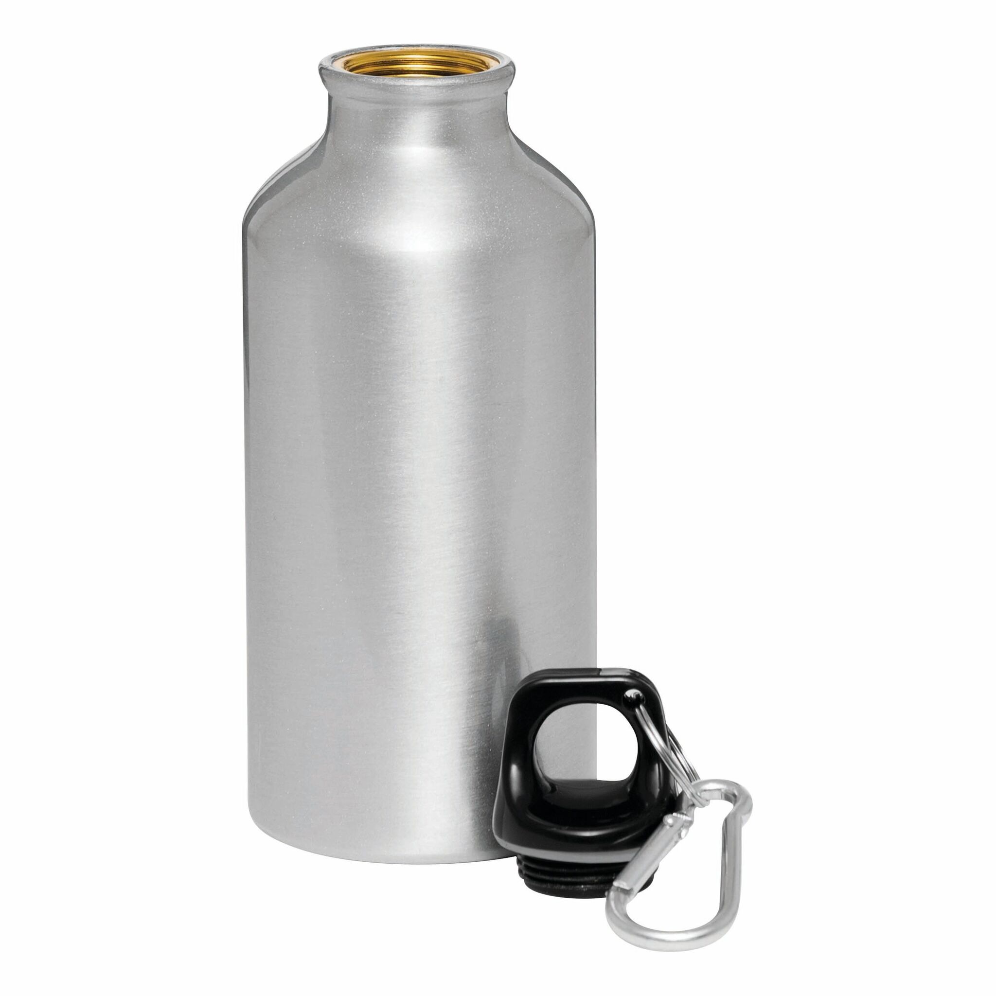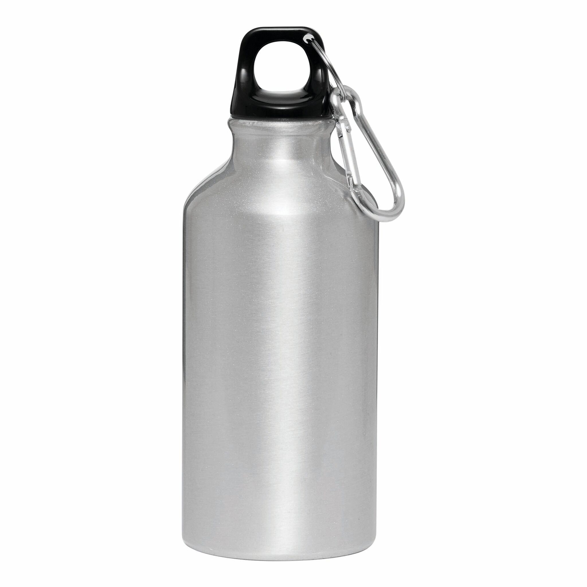 Алюминевая бутылка TRANSIT с карабином цвета бутылки и пластмассовой застёжкой, объём 400 мл.