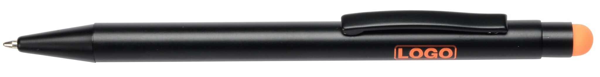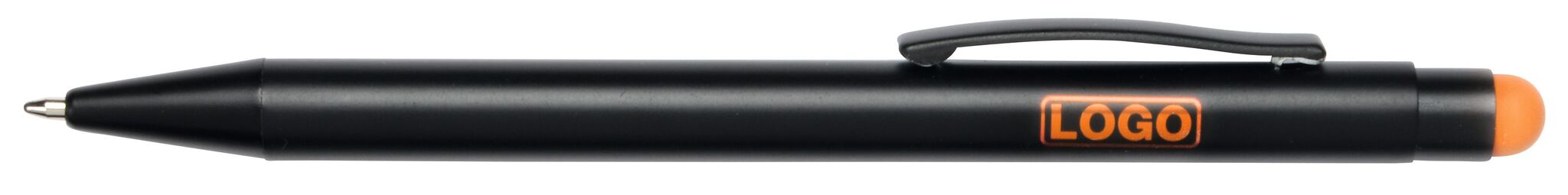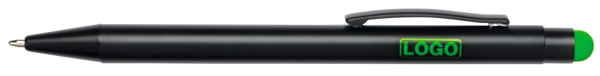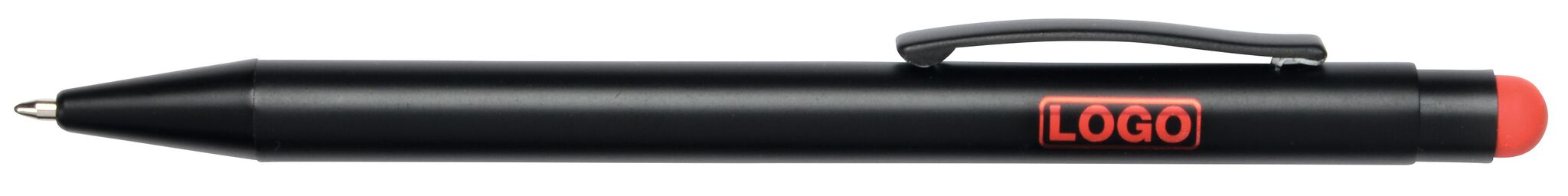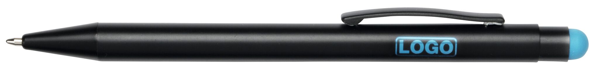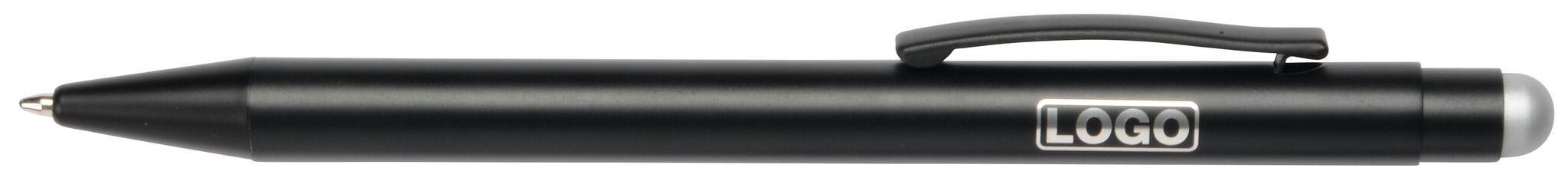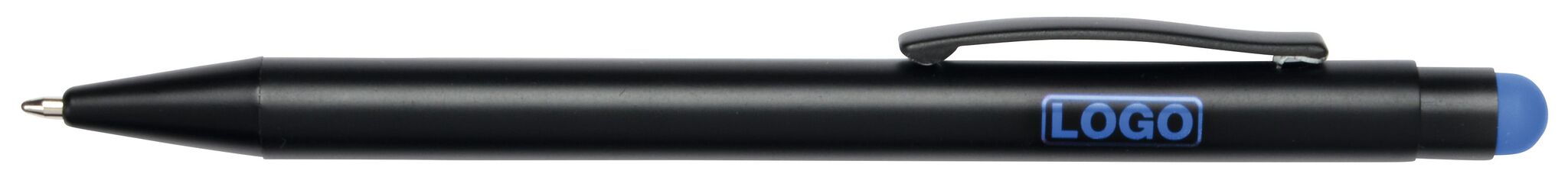 Алюминиевая шариковая ручка BLACK BEAUTY , с большим наполнителем, стилусом для сенсорных экранов, матовая поверхность с цетной ocновой для гравировки, соответствующей цвету стилуса, синие чернила