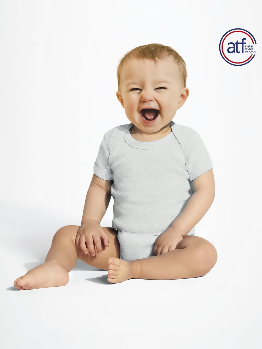 БОДИ ДЛЯ РЕБЕНКА - MADE IN FRANCE. Прошивка по вороту, низу рукавов и по ластовице; Спущенное плечо; Застегивается на кнопку возле ластовицы