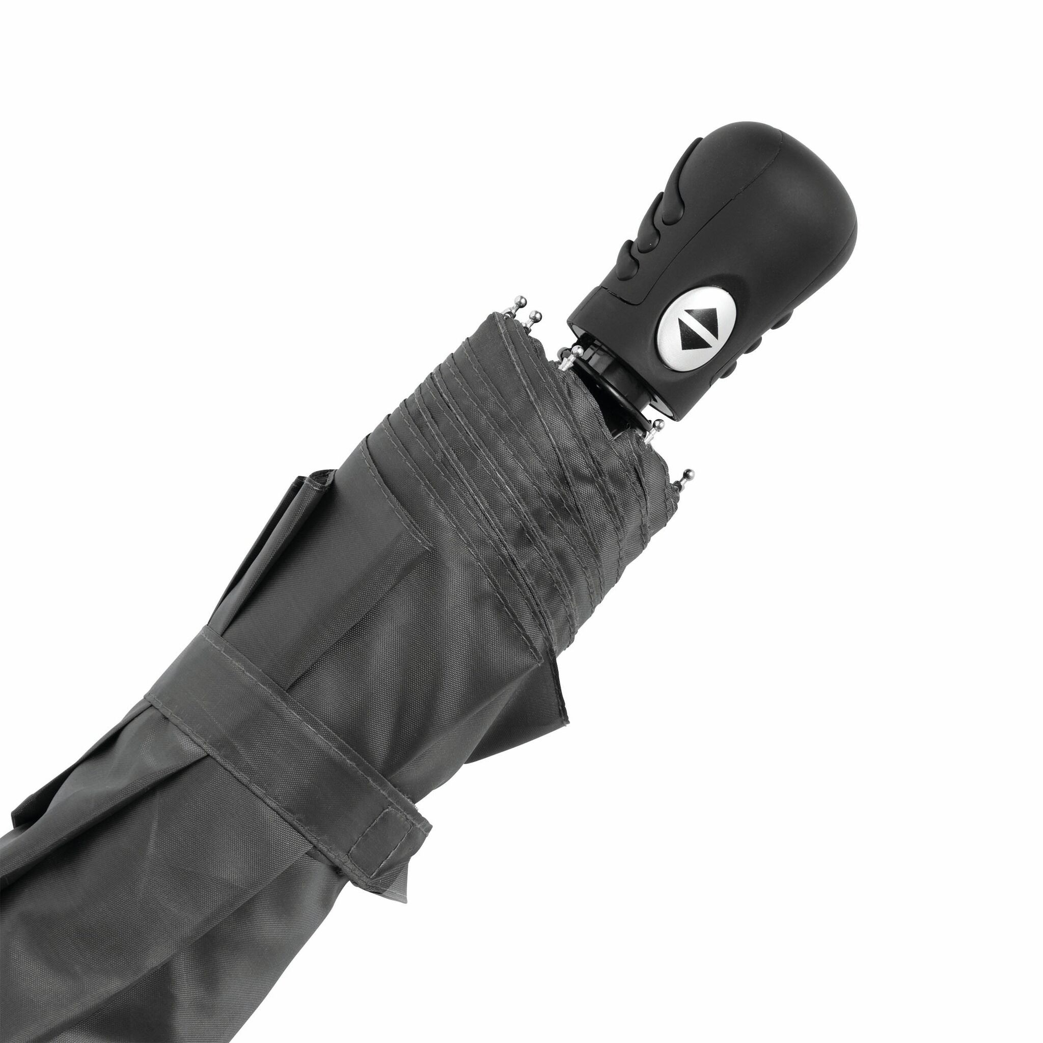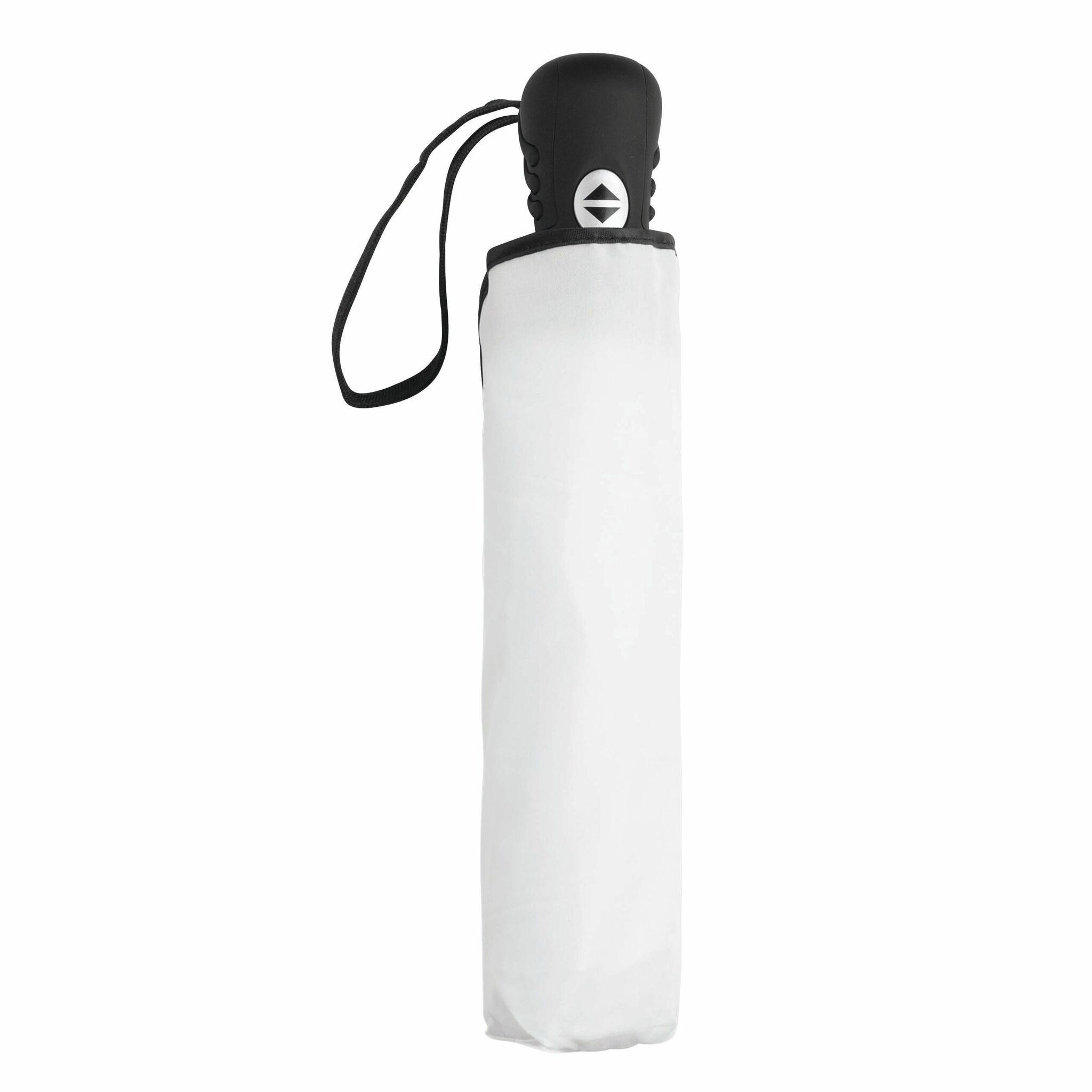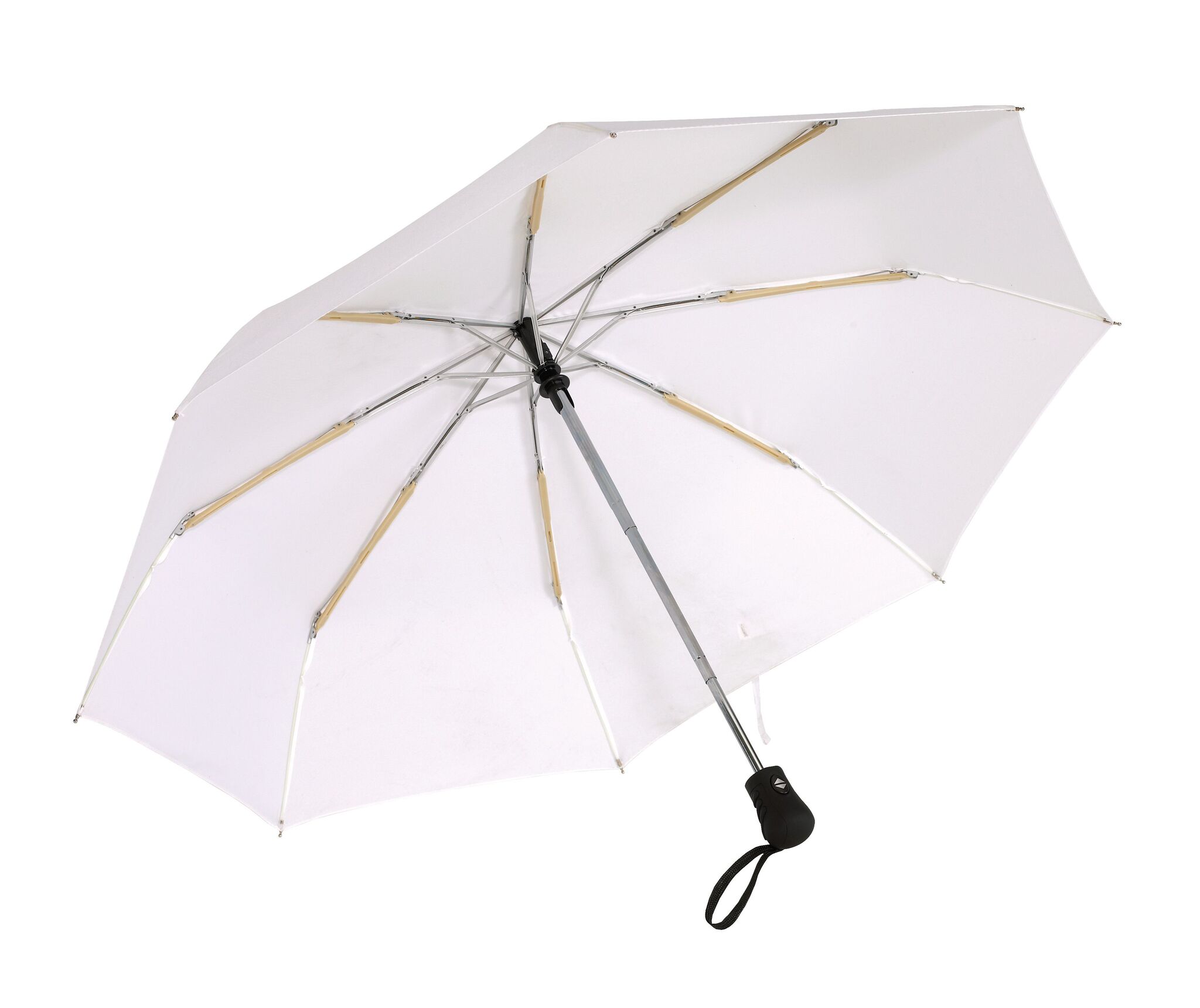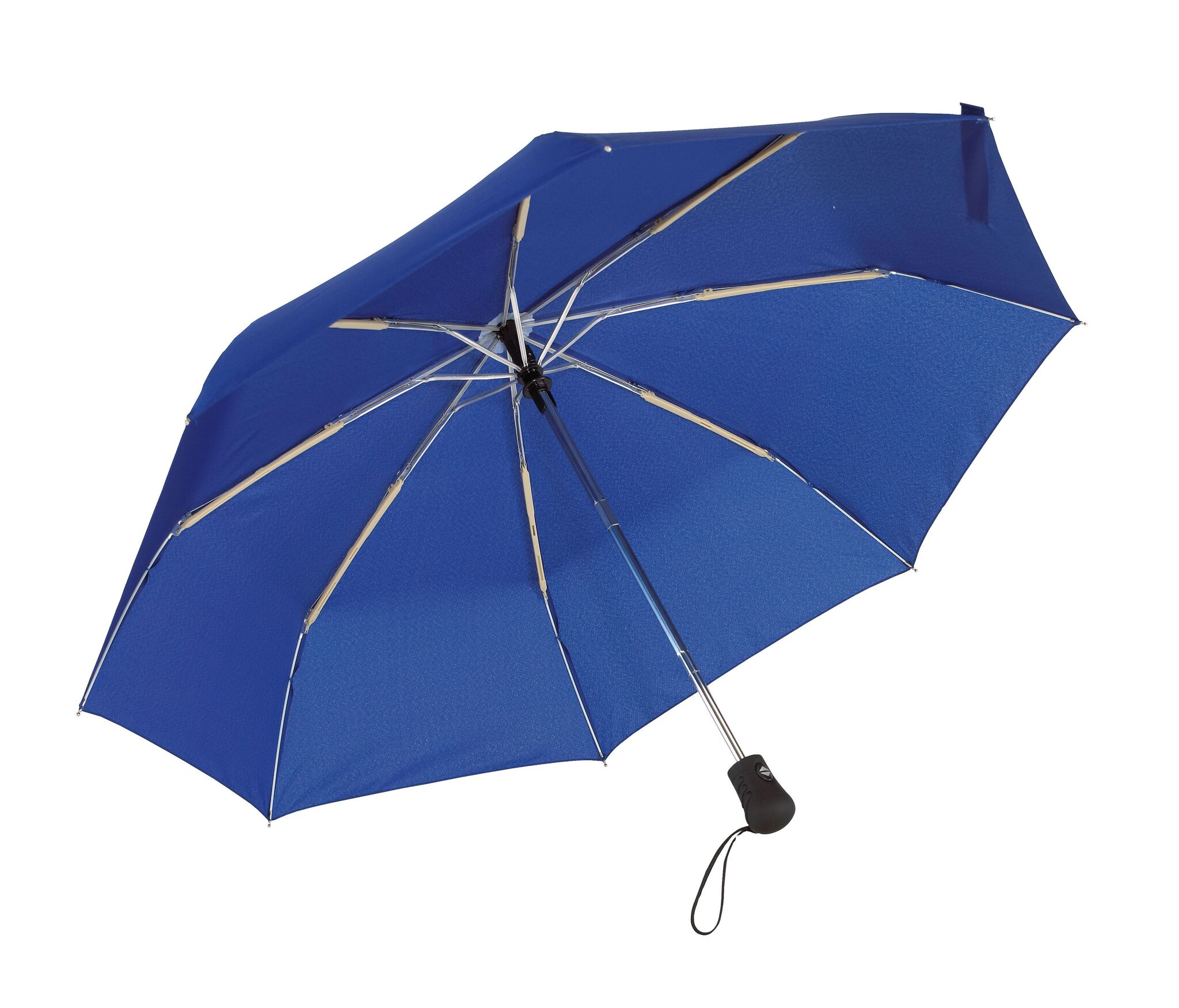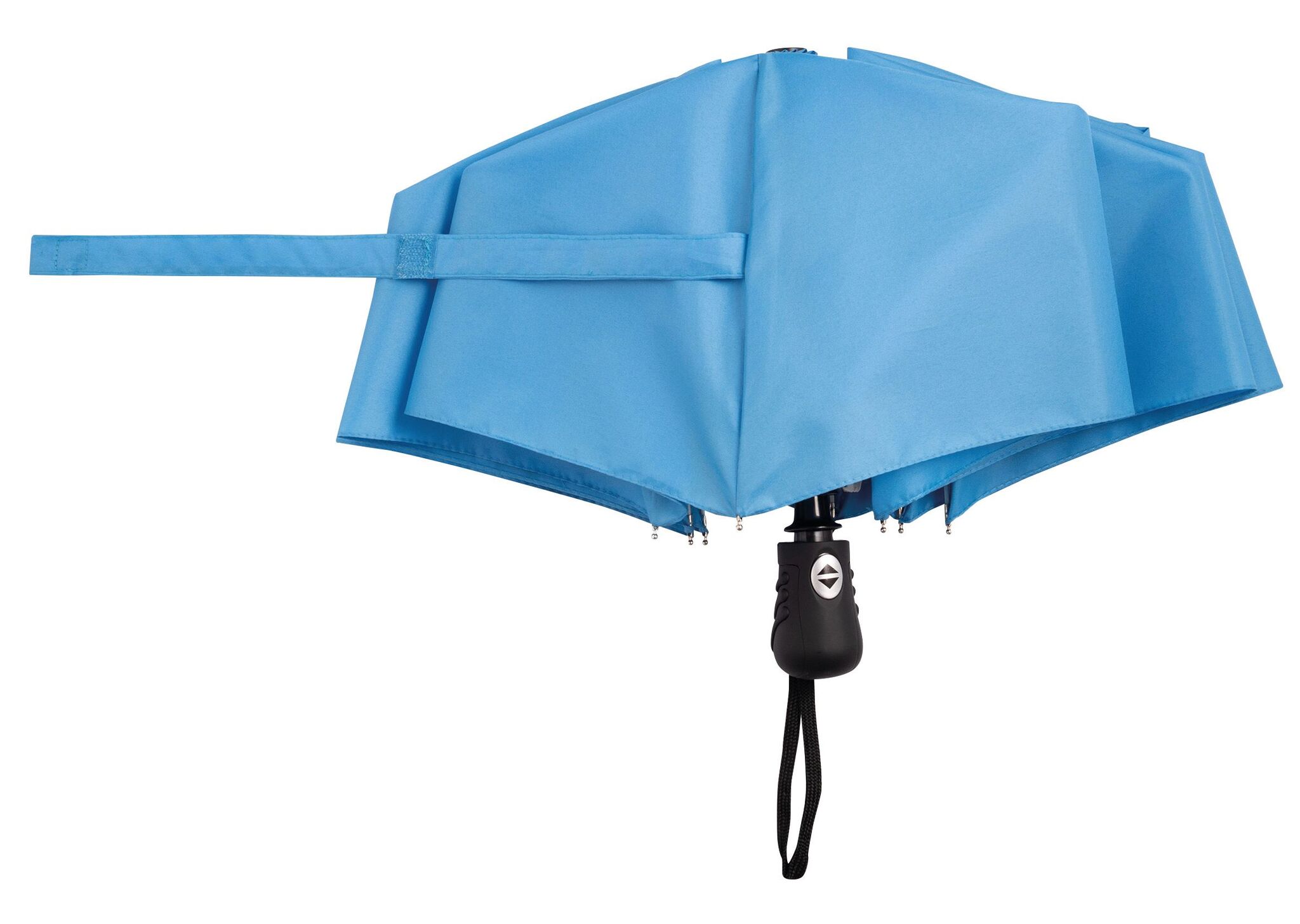 Автоматический ветроустойчивый складной зонт BORA , в чехле соответствующего зонту цвета: тройной металлический стержень, со спицами из алюминия/пластика/стекловолокна и металлическими наконечниками, прорезиненная ручка, полиестер-понджи купол с тефлоновым слоем, обжимная лента на липучке