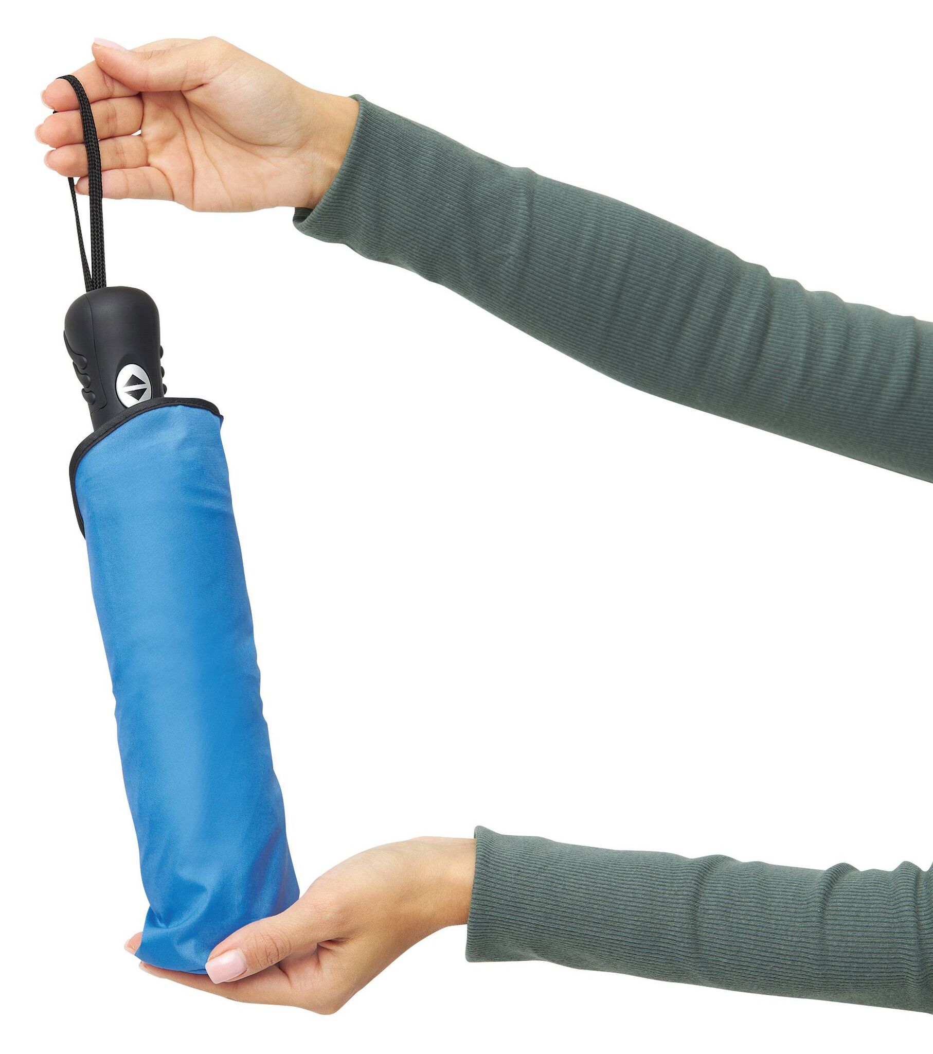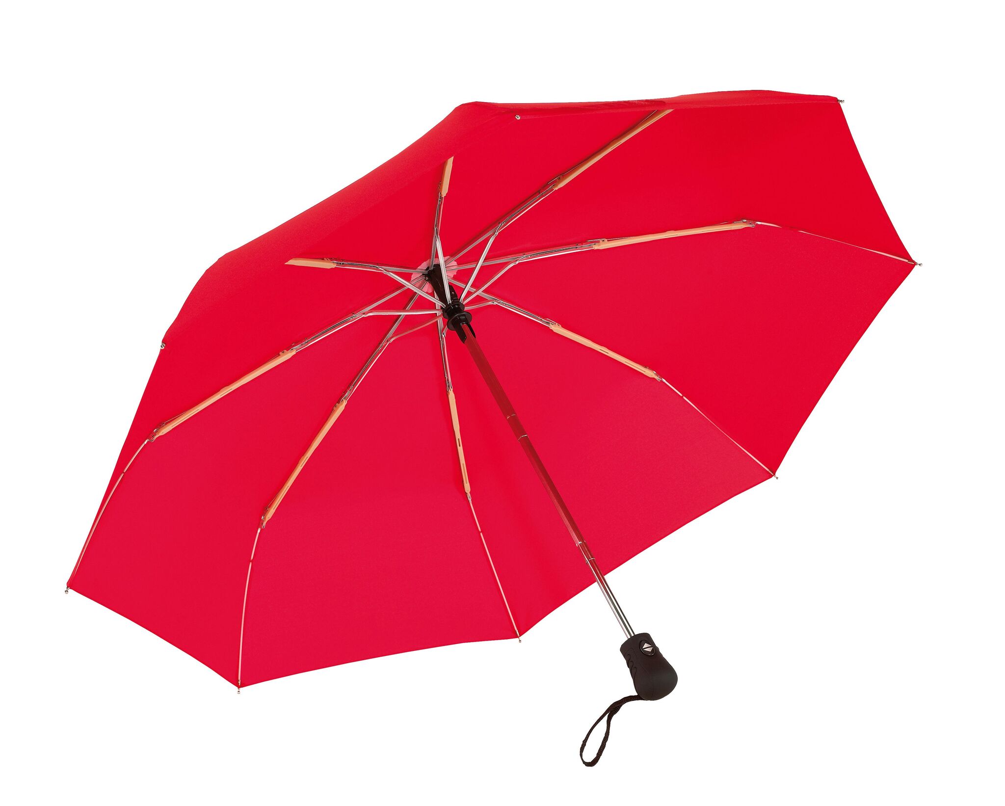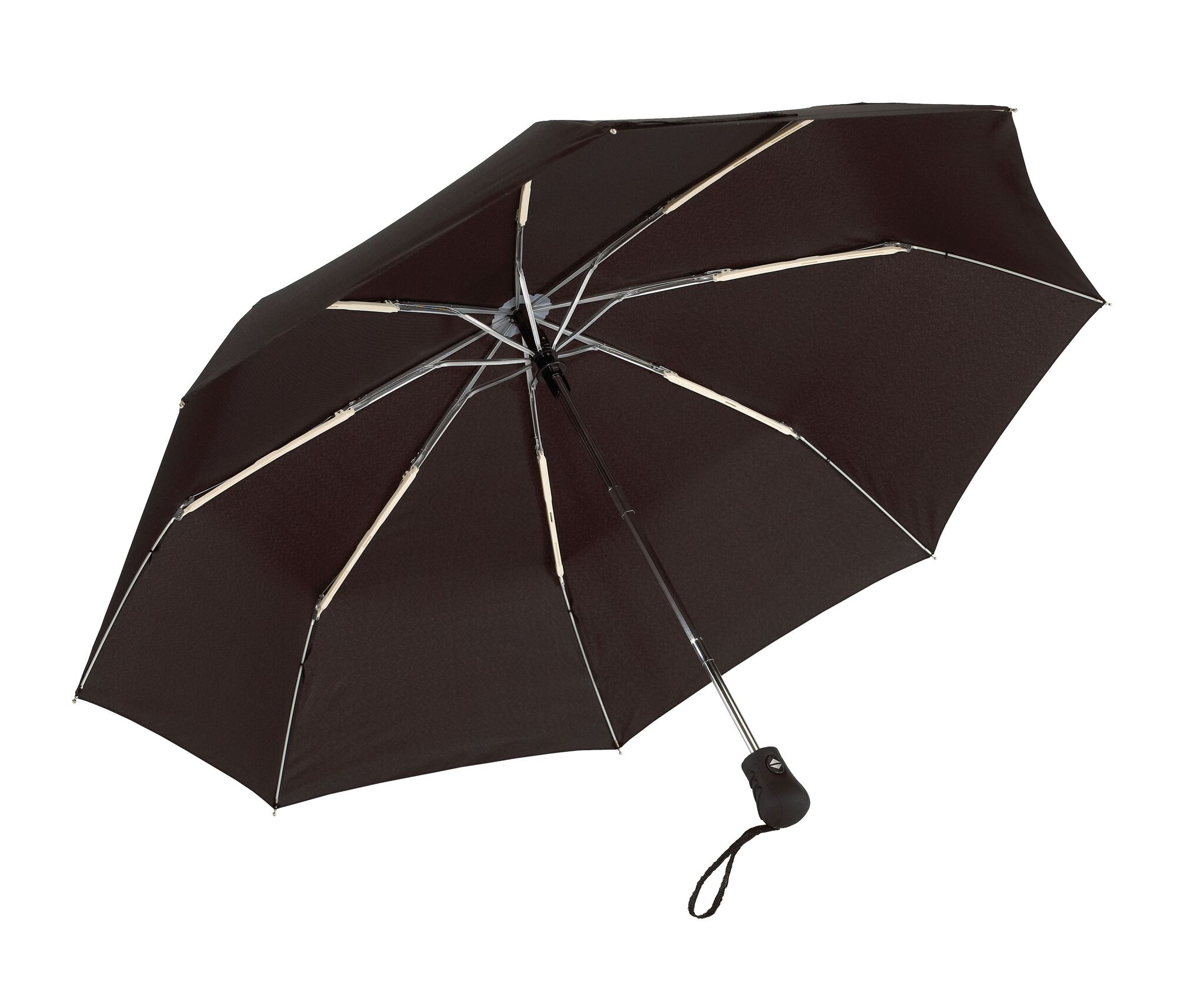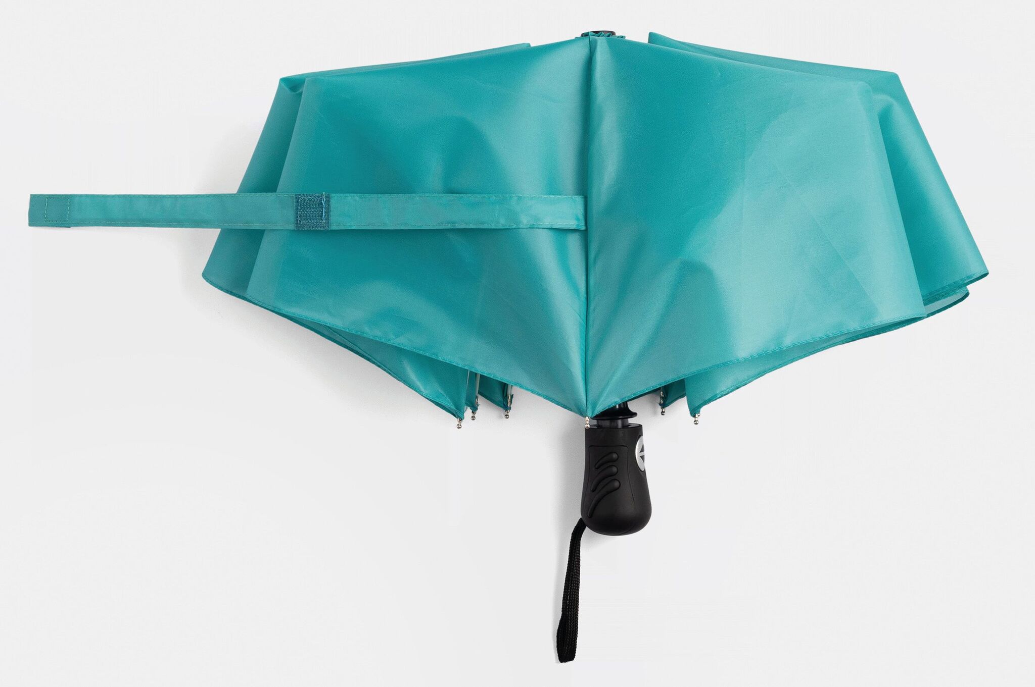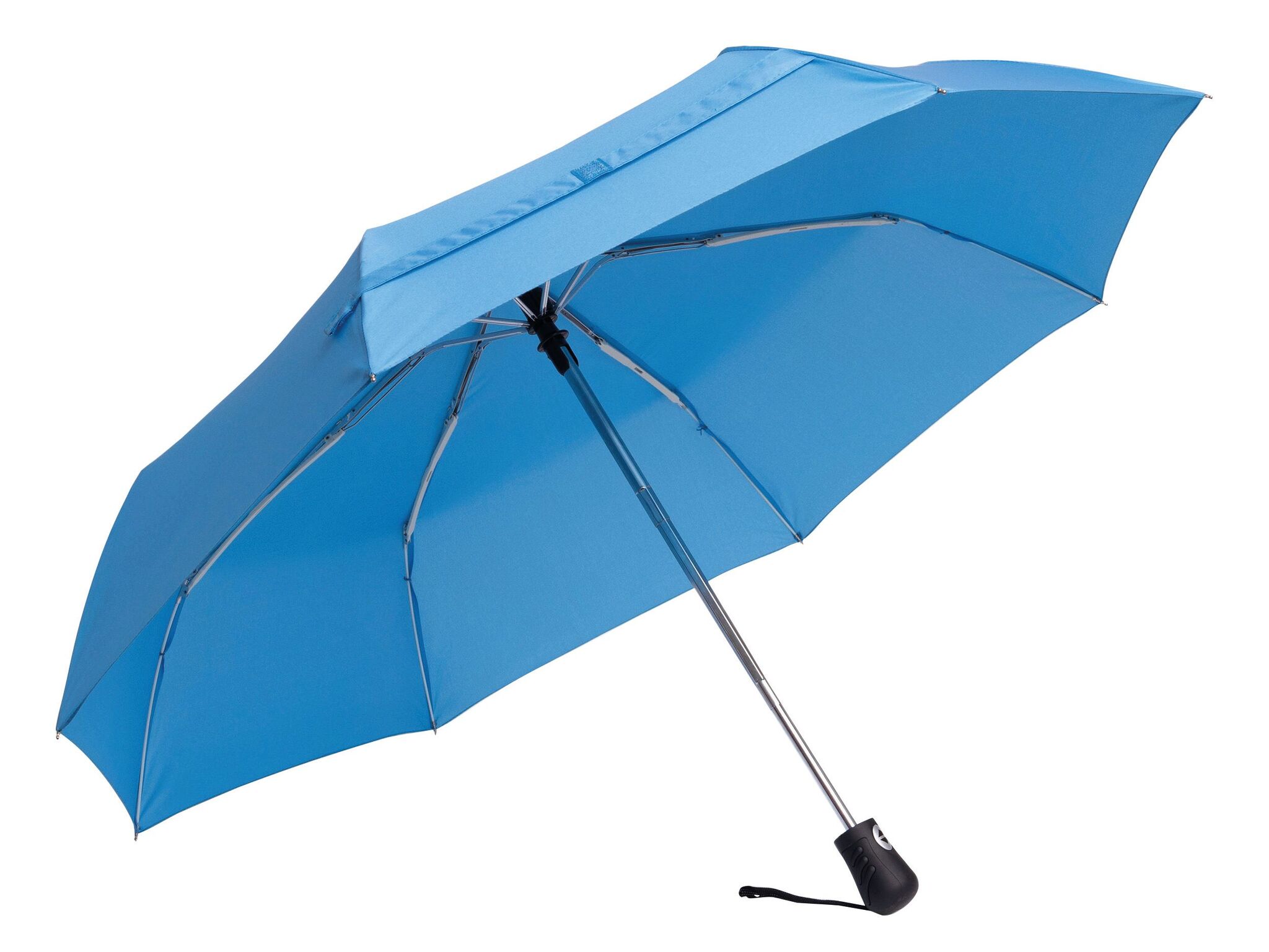 Автоматический ветроустойчивый складной зонт BORA , в чехле соответствующего зонту цвета: тройной металлический стержень, со спицами из алюминия/пластика/стекловолокна и металлическими наконечниками, прорезиненная ручка, полиестер-понджи купол с тефлоновым слоем, обжимная лента на липучке