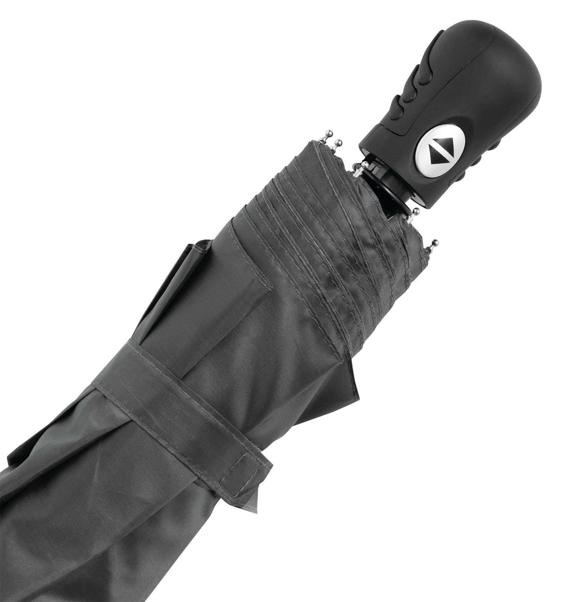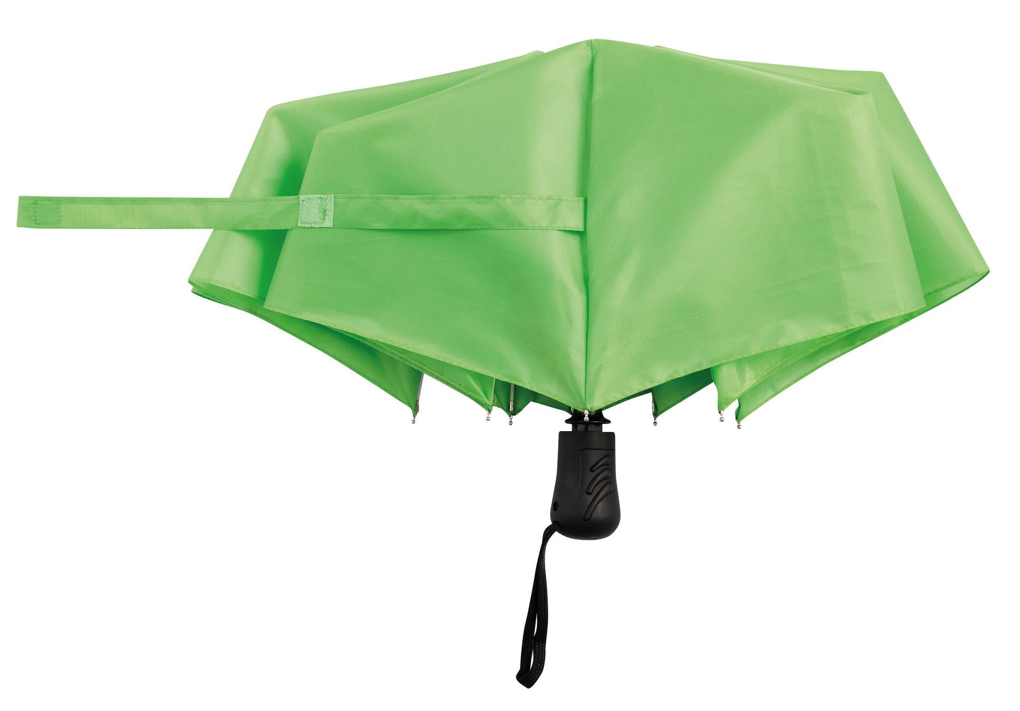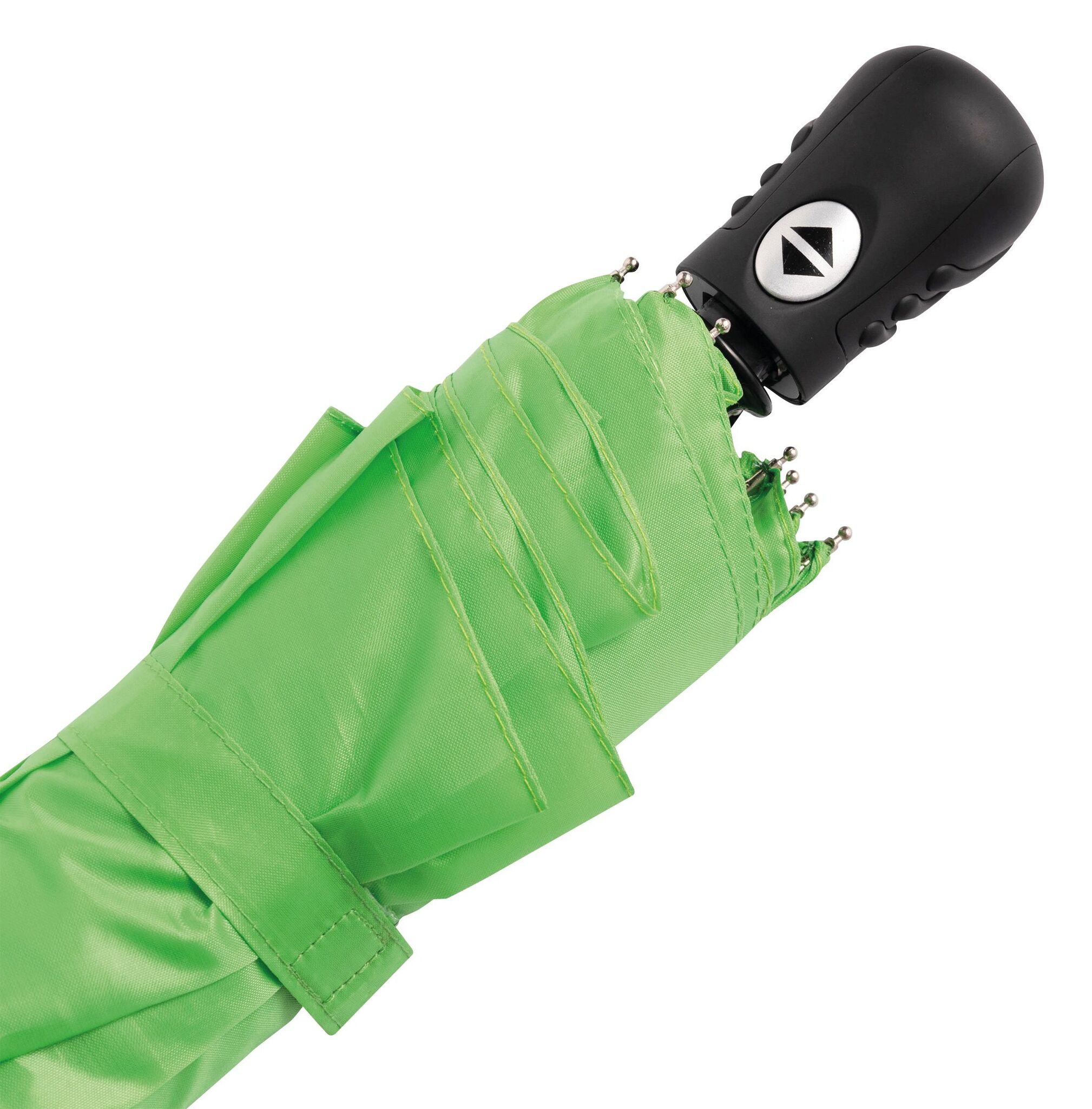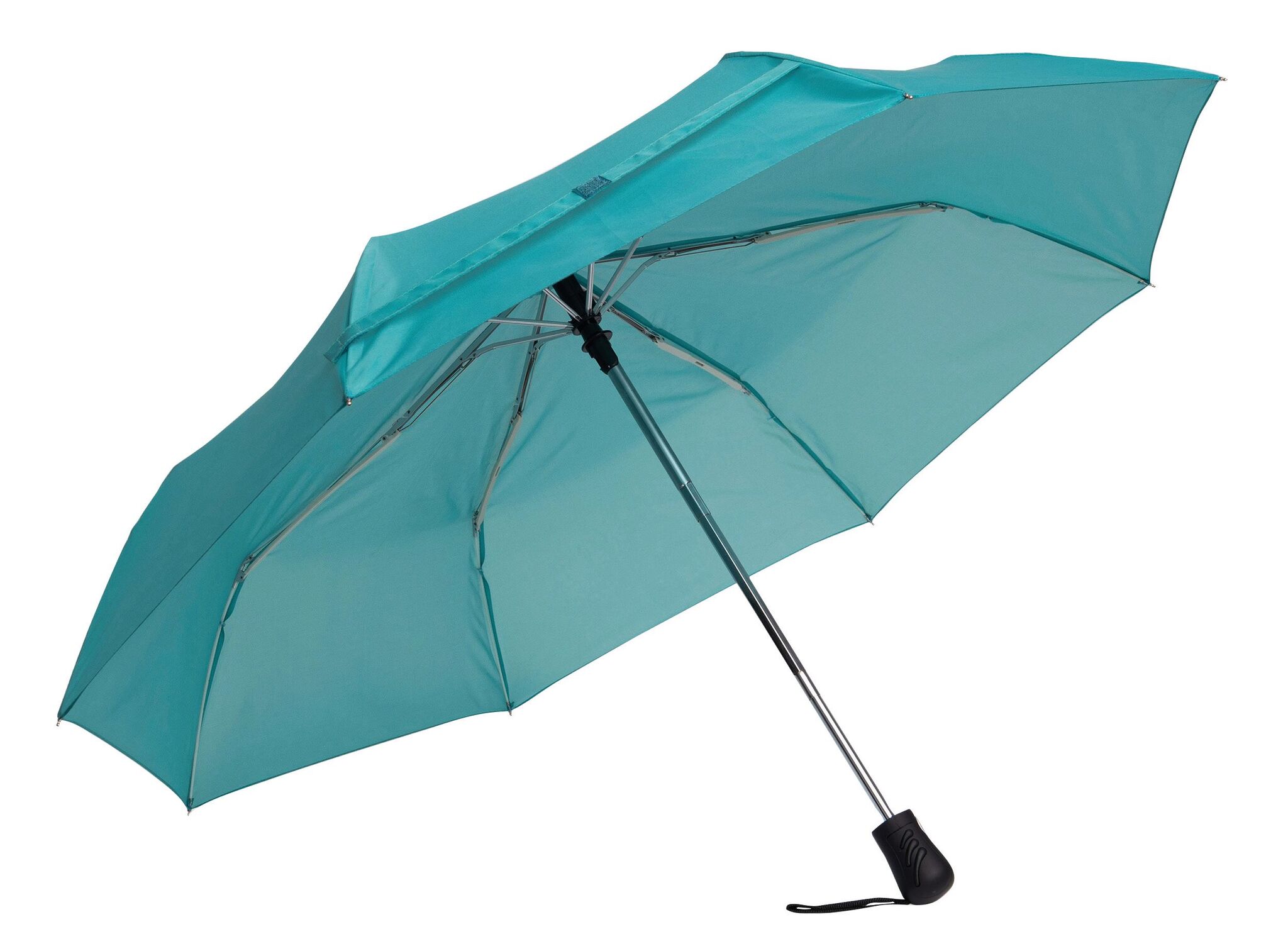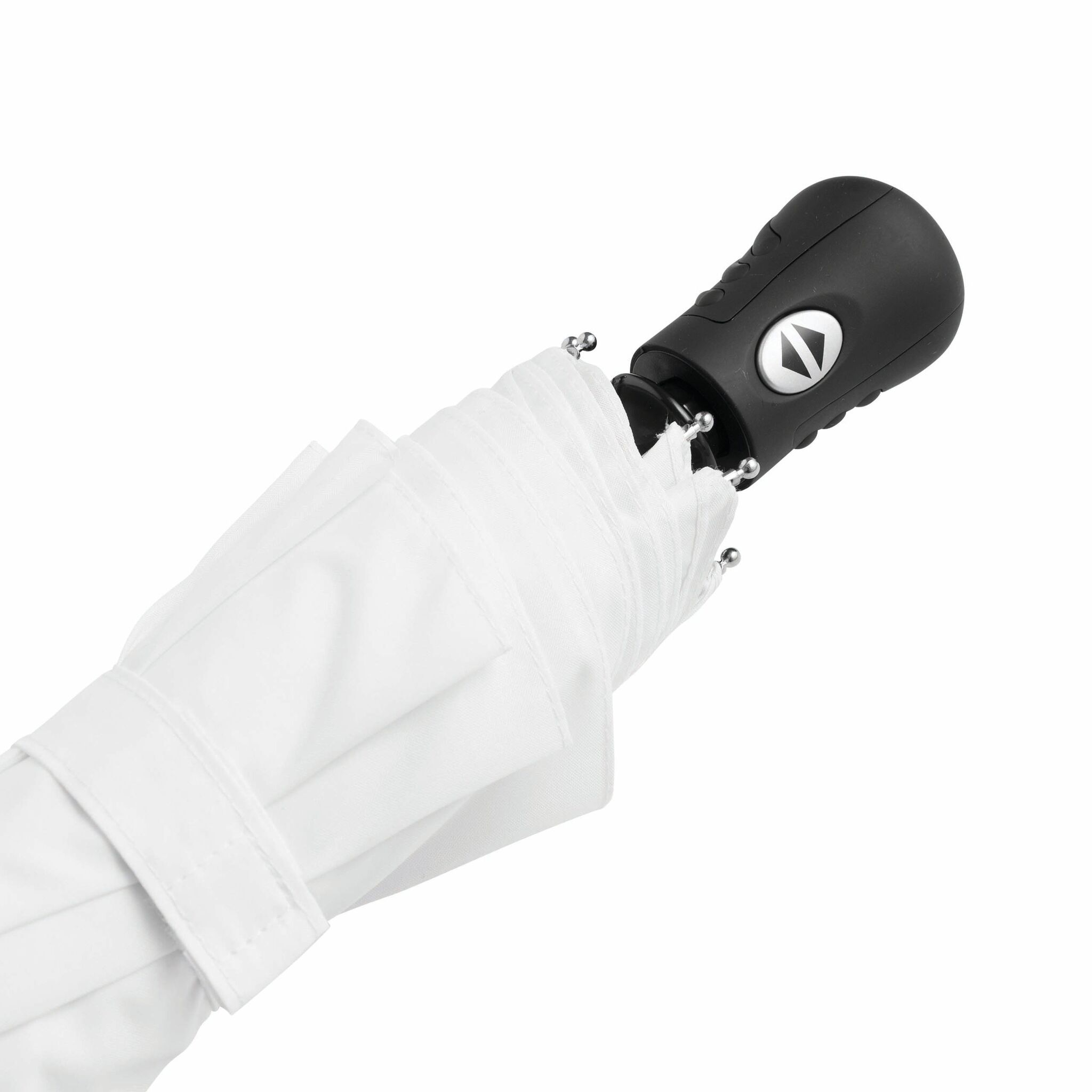 Автоматический ветроустойчивый складной зонт BORA , в чехле соответствующего зонту цвета: тройной металлический стержень, со спицами из алюминия/пластика/стекловолокна и металлическими наконечниками, прорезиненная ручка, полиестер-понджи купол с тефлоновым слоем, обжимная лента на липучке