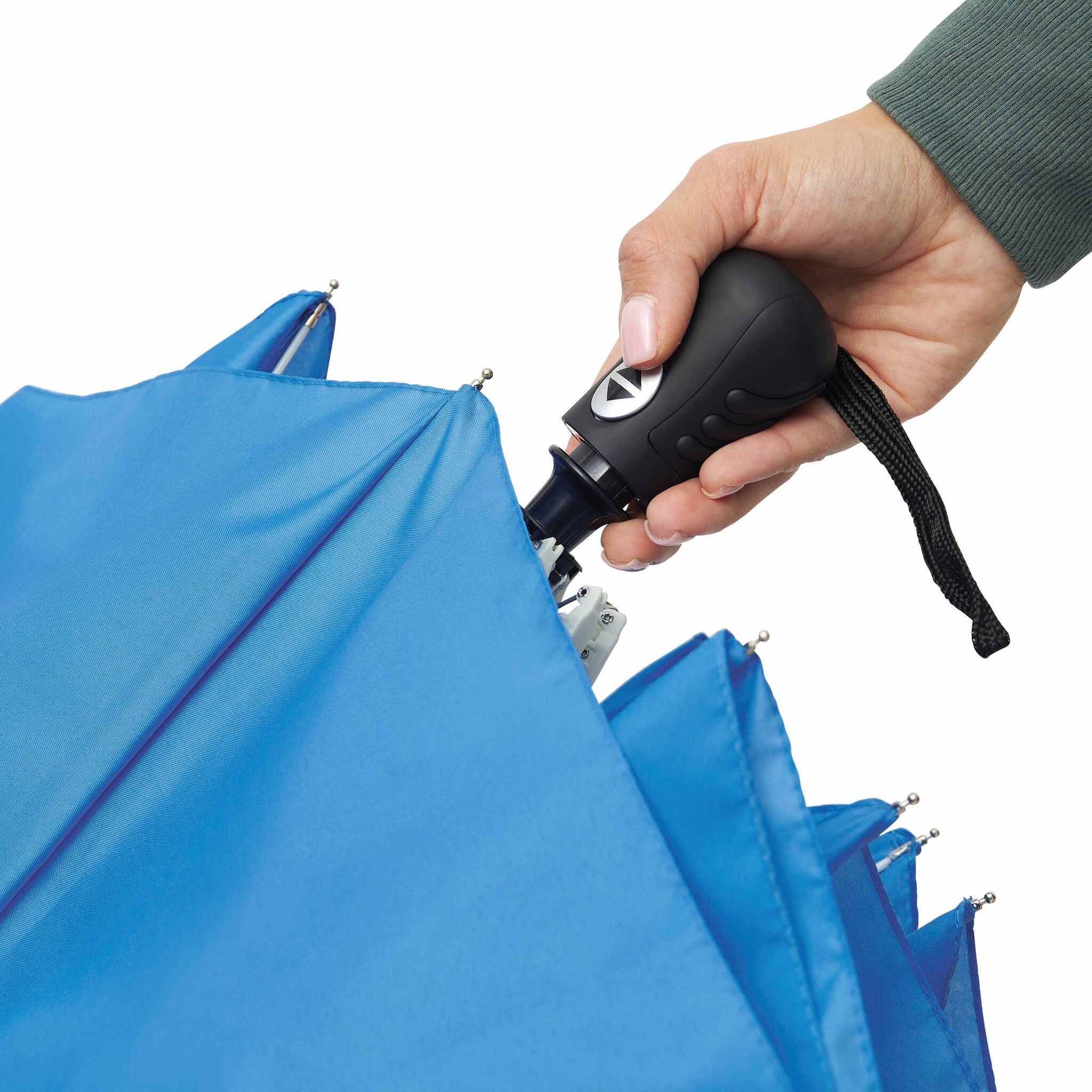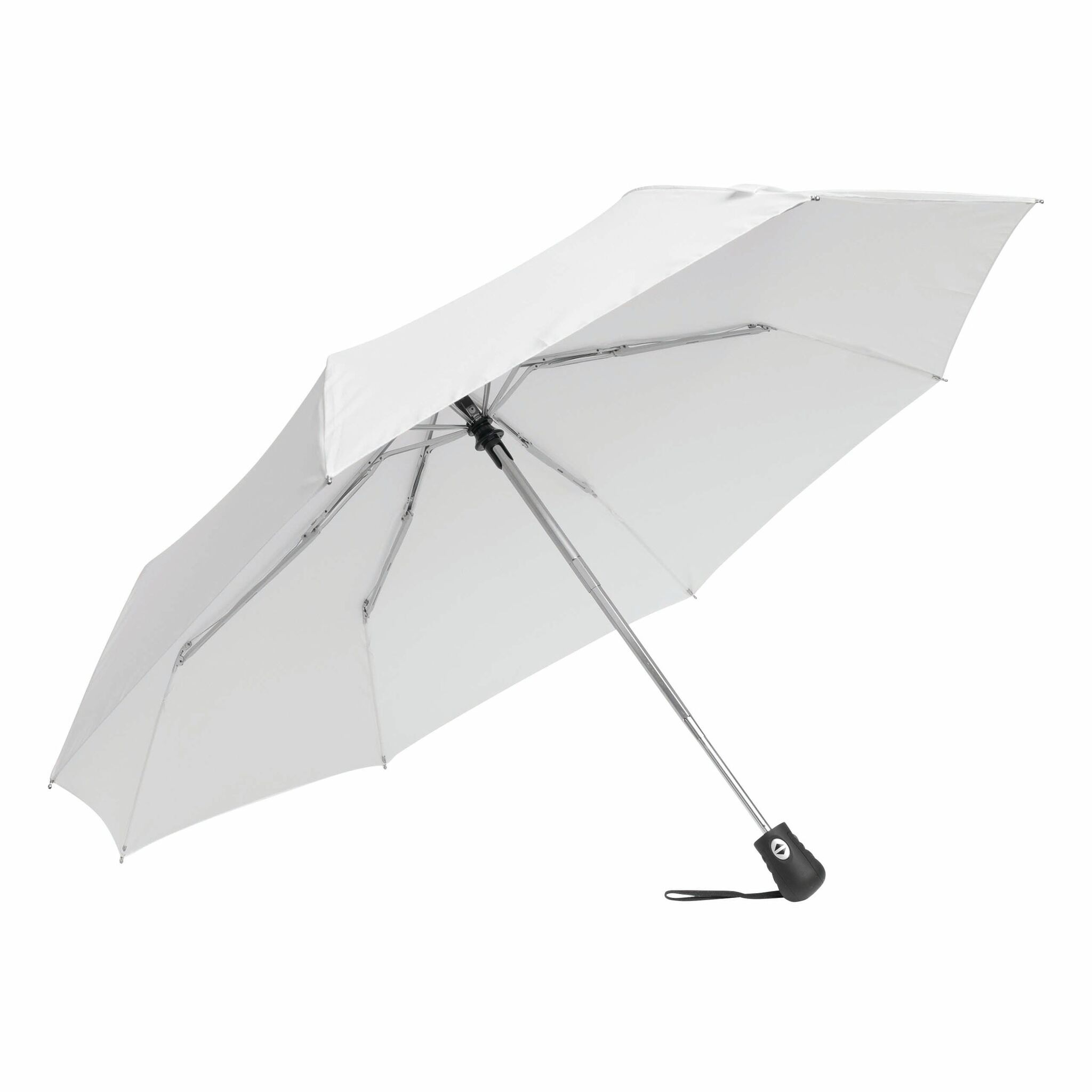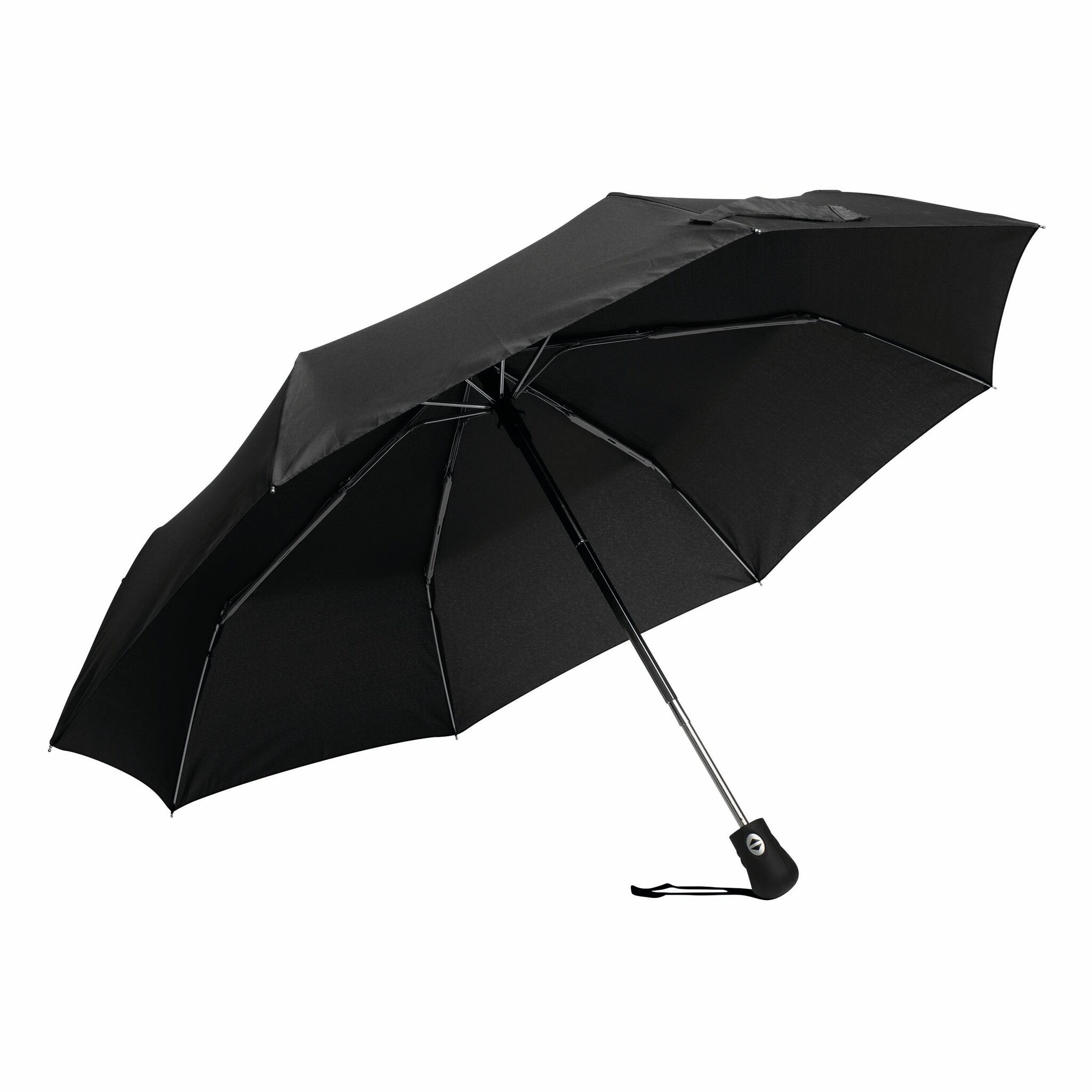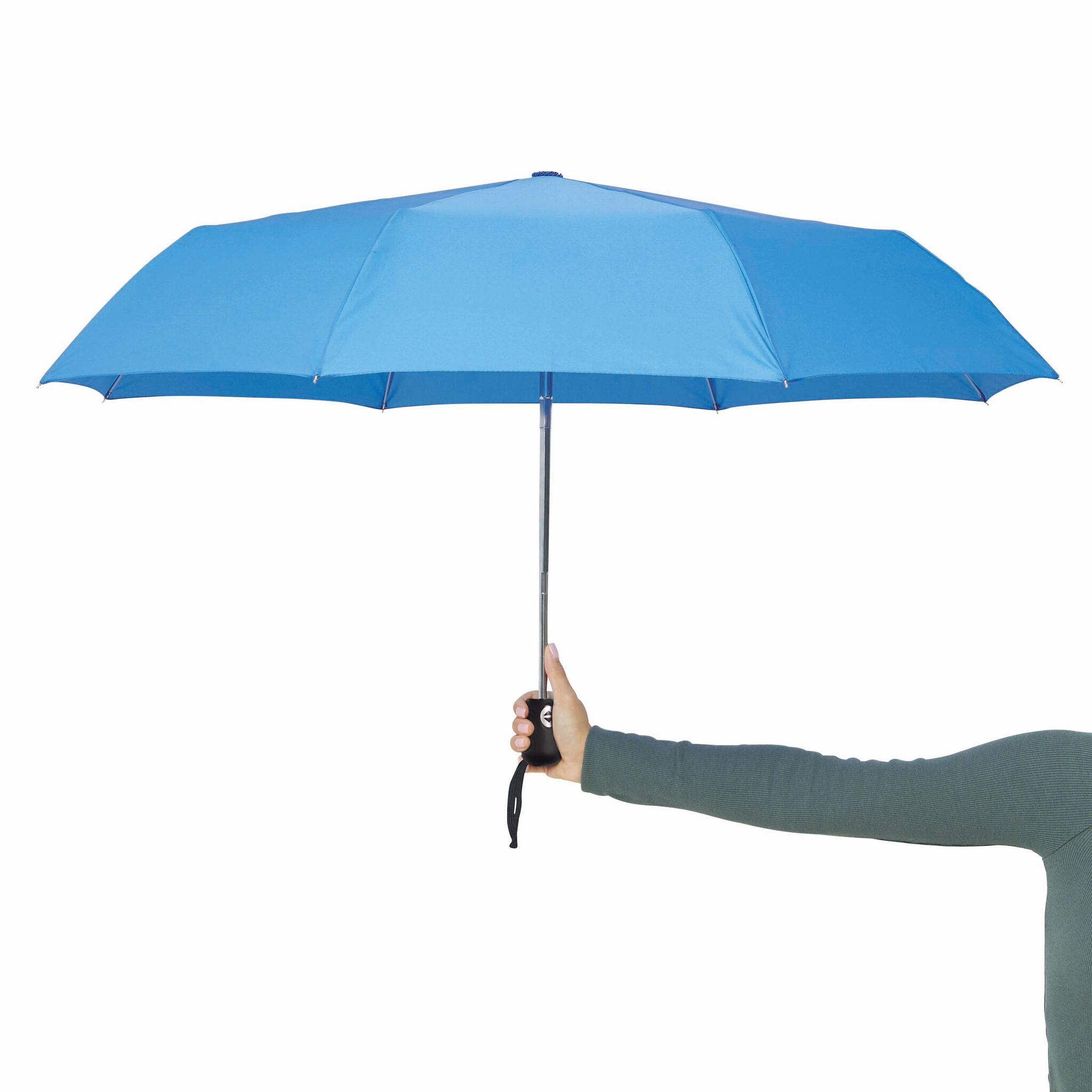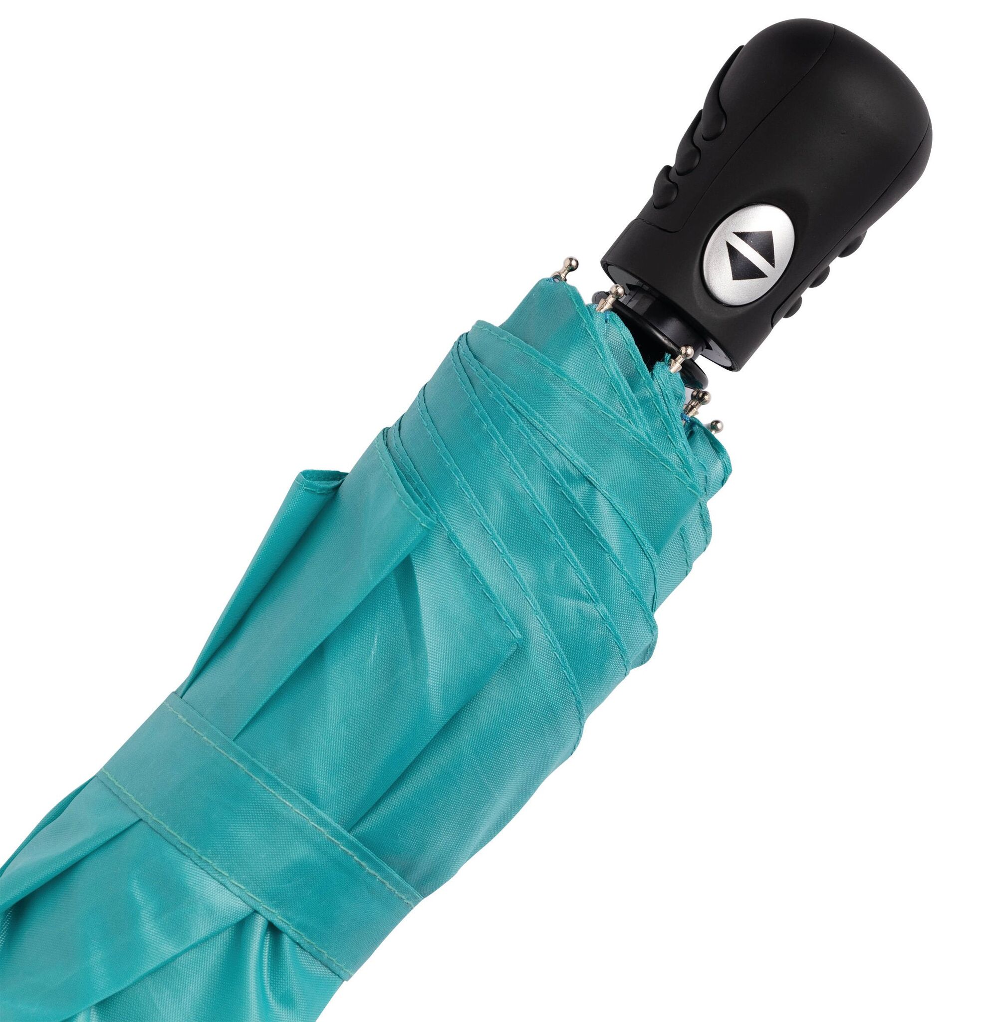 Автоматический ветроустойчивый складной зонт BORA , в чехле соответствующего зонту цвета: тройной металлический стержень, со спицами из алюминия/пластика/стекловолокна и металлическими наконечниками, прорезиненная ручка, полиестер-понджи купол с тефлоновым слоем, обжимная лента на липучке