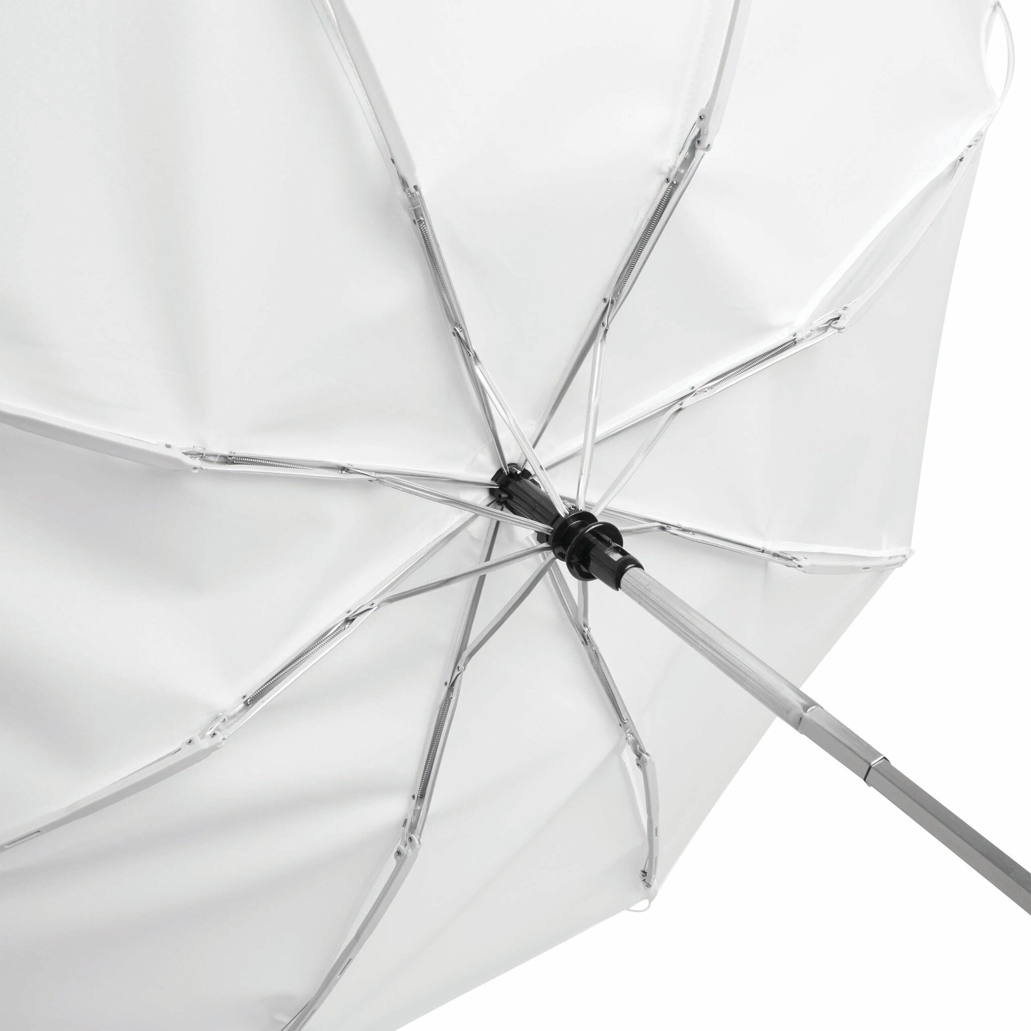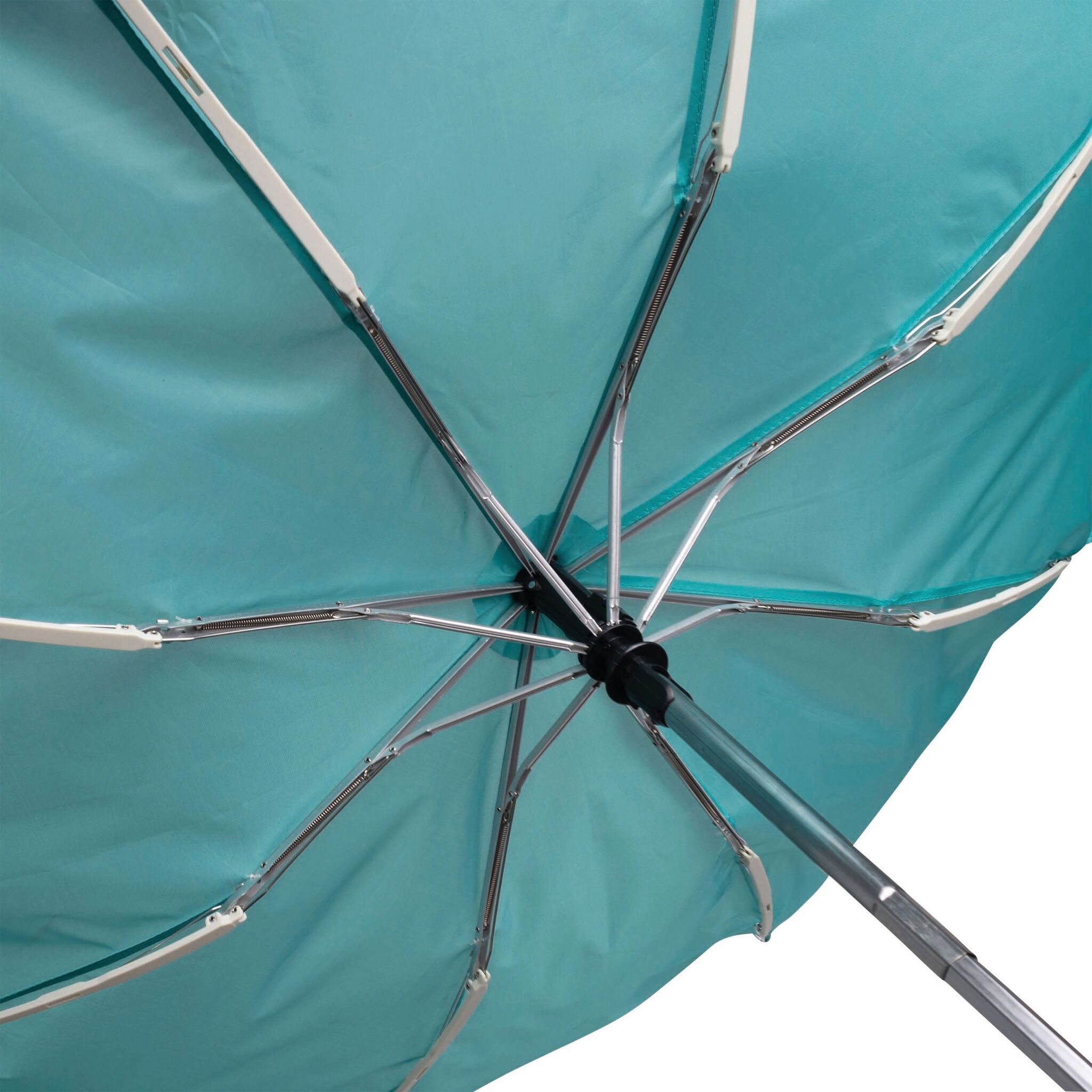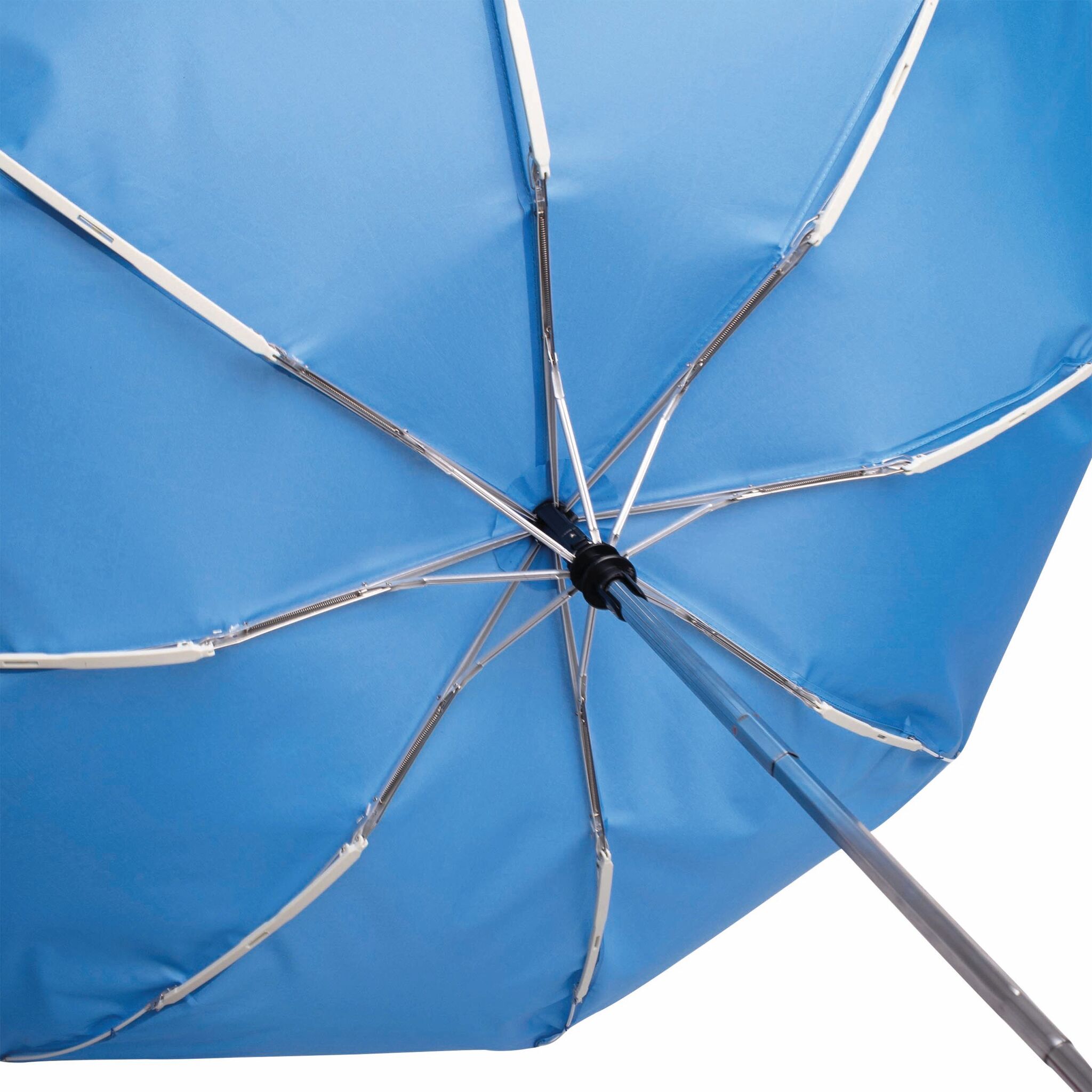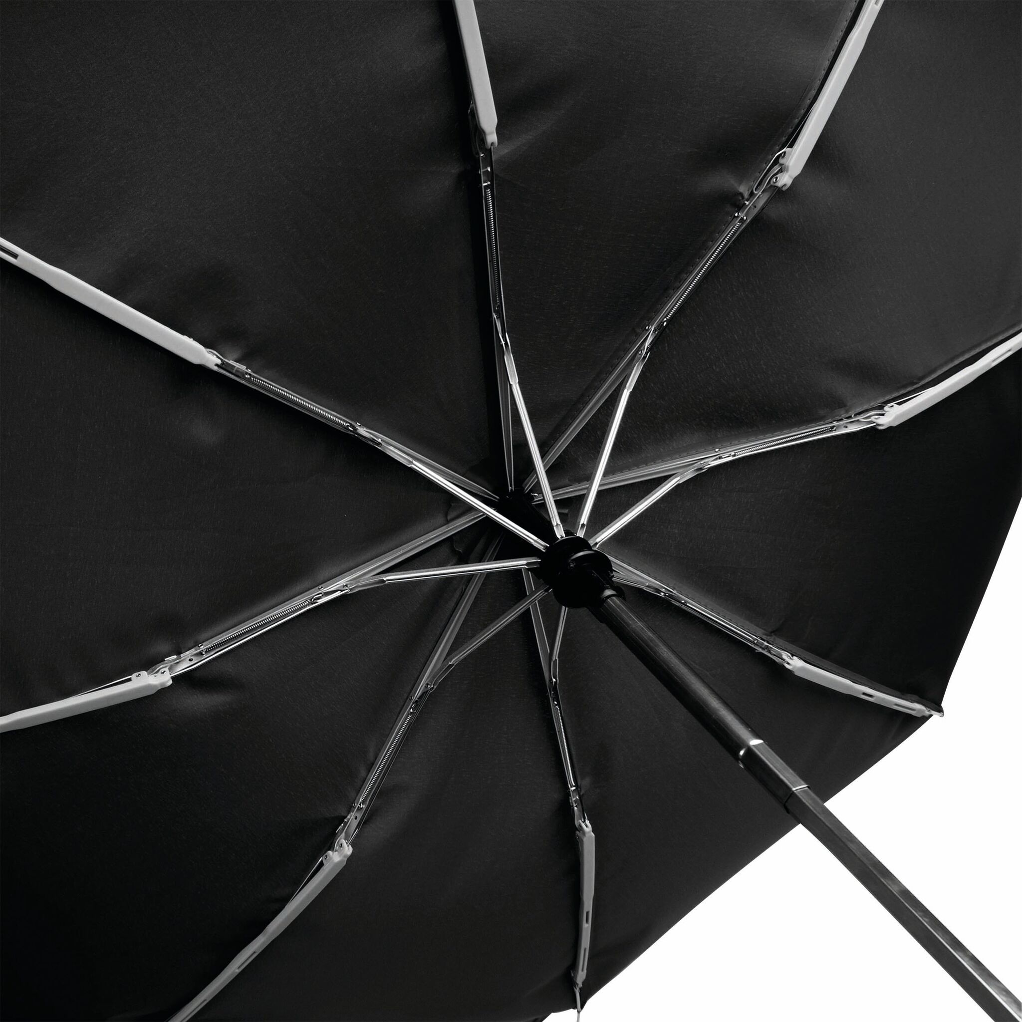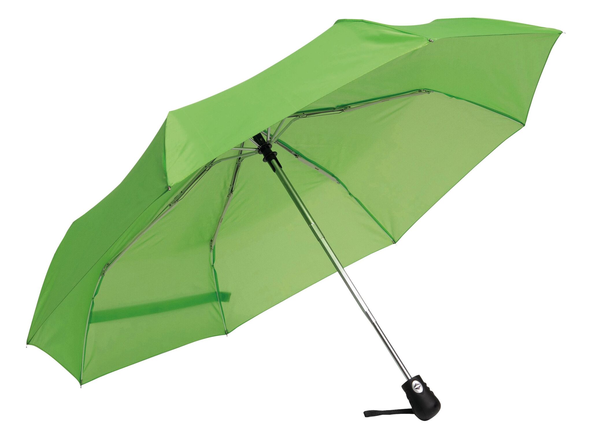 Автоматический ветроустойчивый складной зонт BORA , в чехле соответствующего зонту цвета: тройной металлический стержень, со спицами из алюминия/пластика/стекловолокна и металлическими наконечниками, прорезиненная ручка, полиестер-понджи купол с тефлоновым слоем, обжимная лента на липучке
