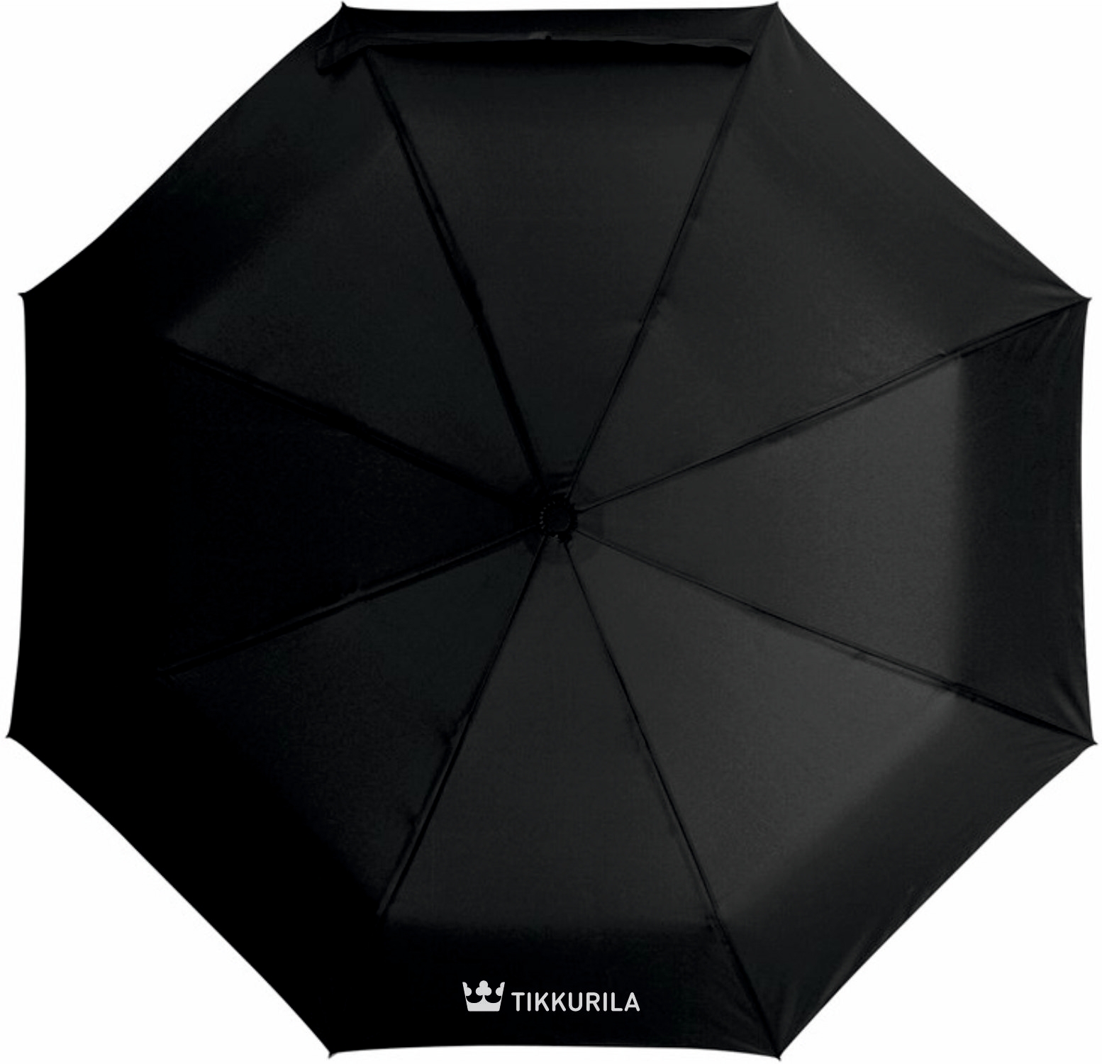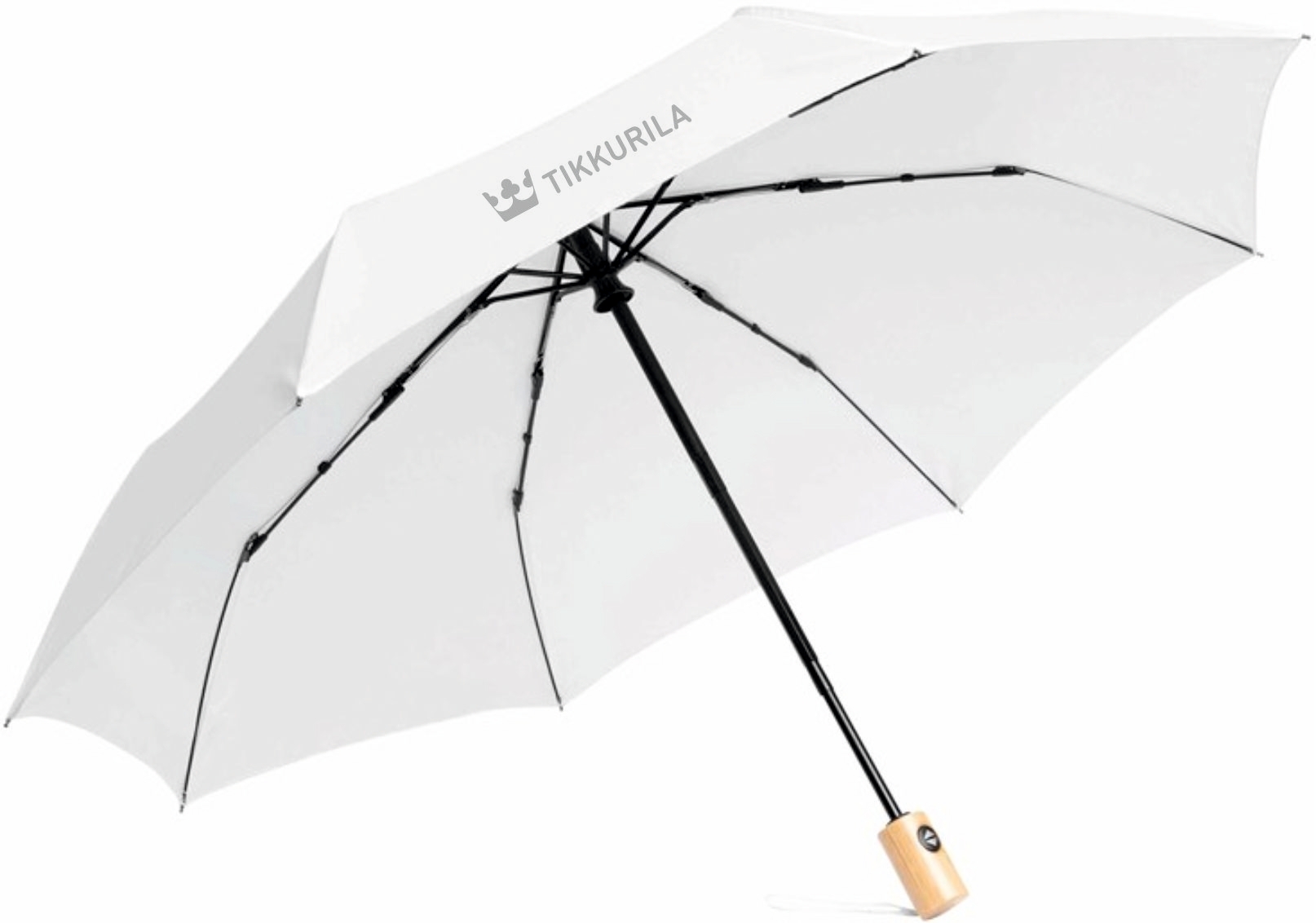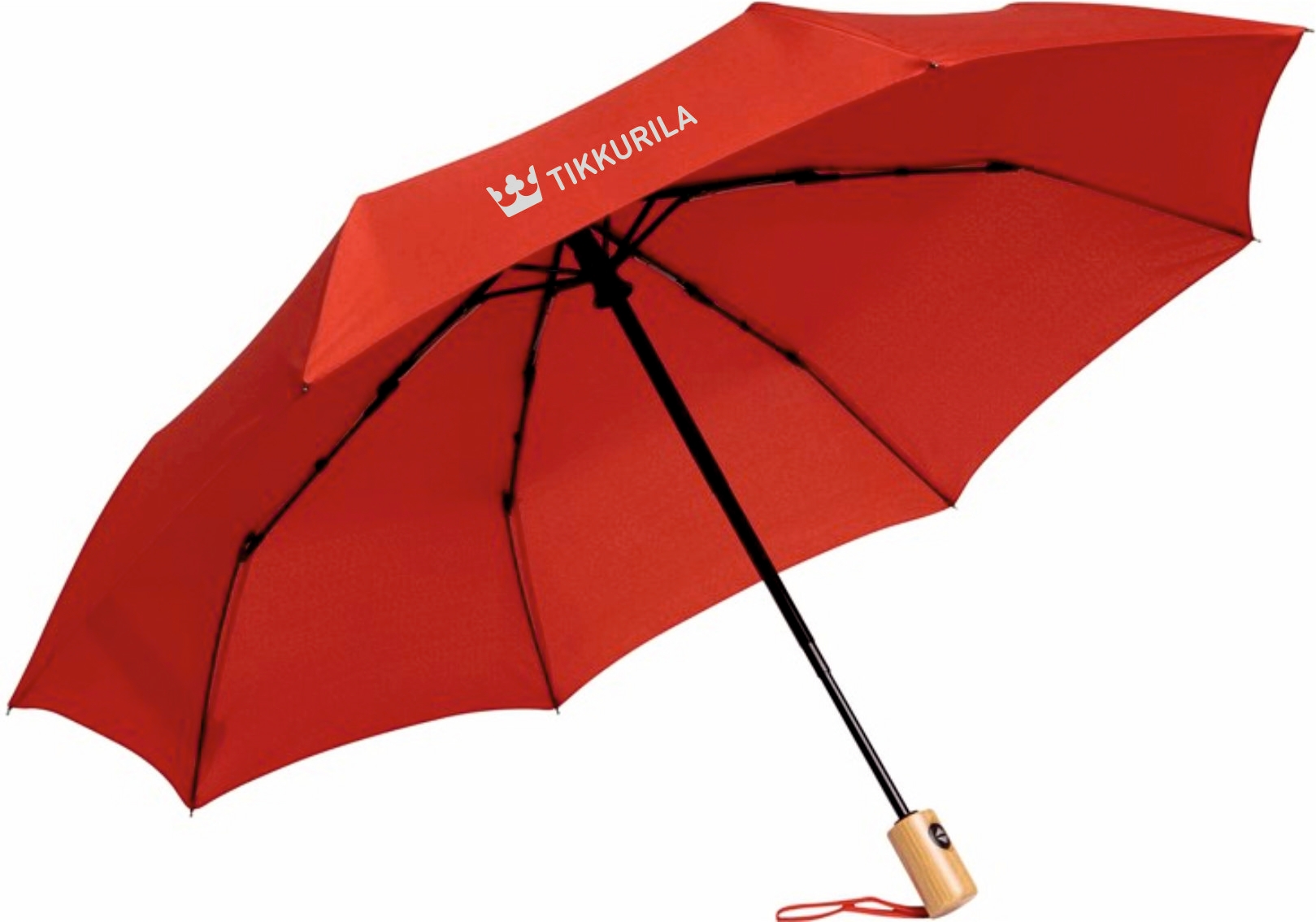 Полностью автоматический ветрозащитный карманный зонт CALYPSO в цветном чехле: металлический стержень из 3 частей, с металлическими-стеклопластиковыми спицами и металлическими наконечниками, бамбуковая ручка с ремешком для руки, купол из полиэстера-понджи из переработанного пластика / RPET, застежка-липучка