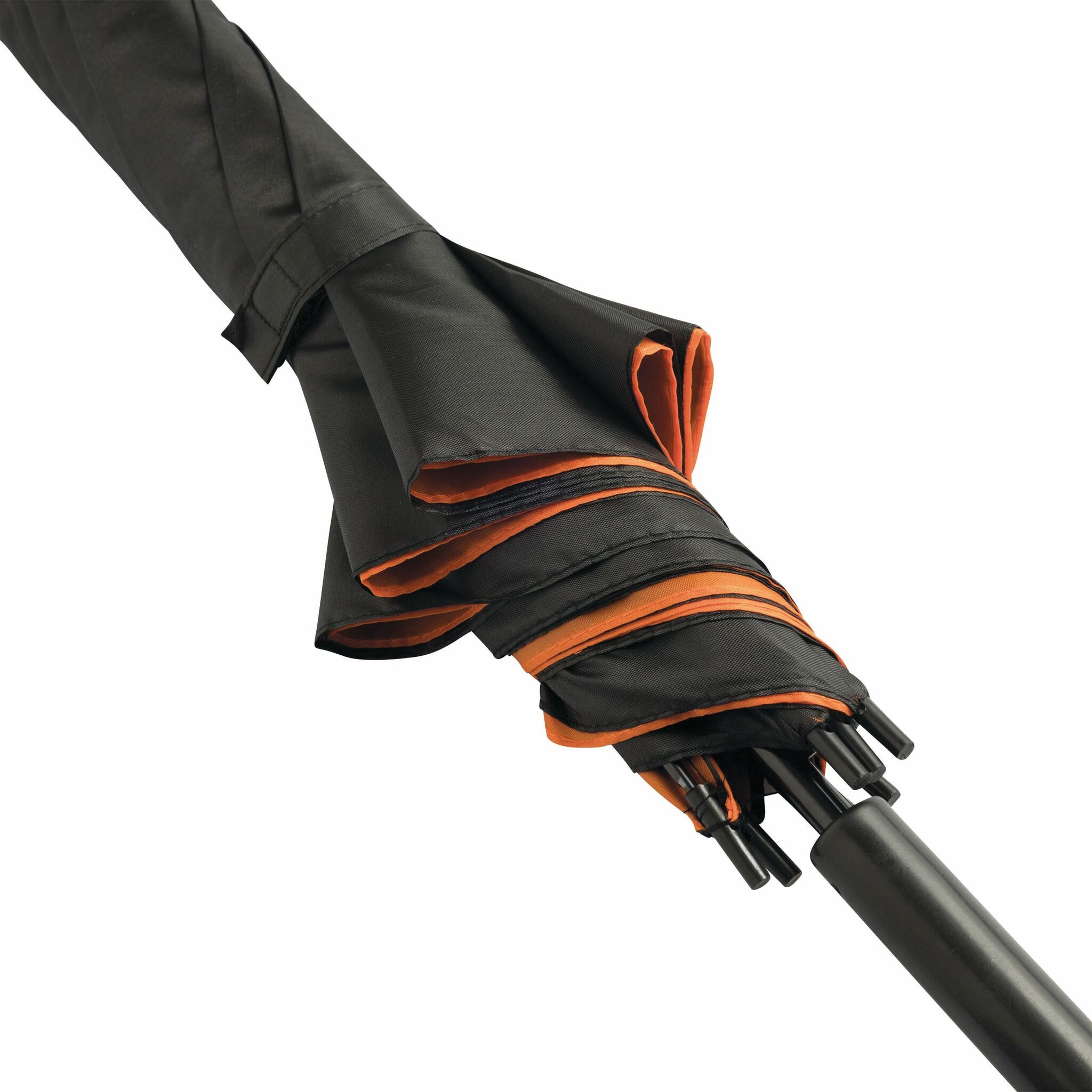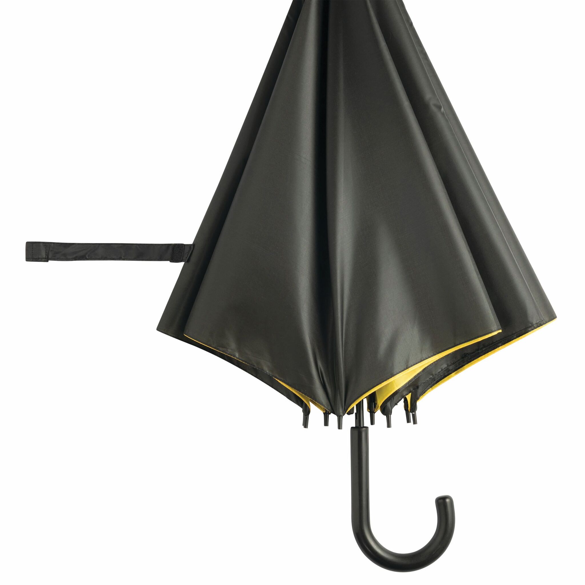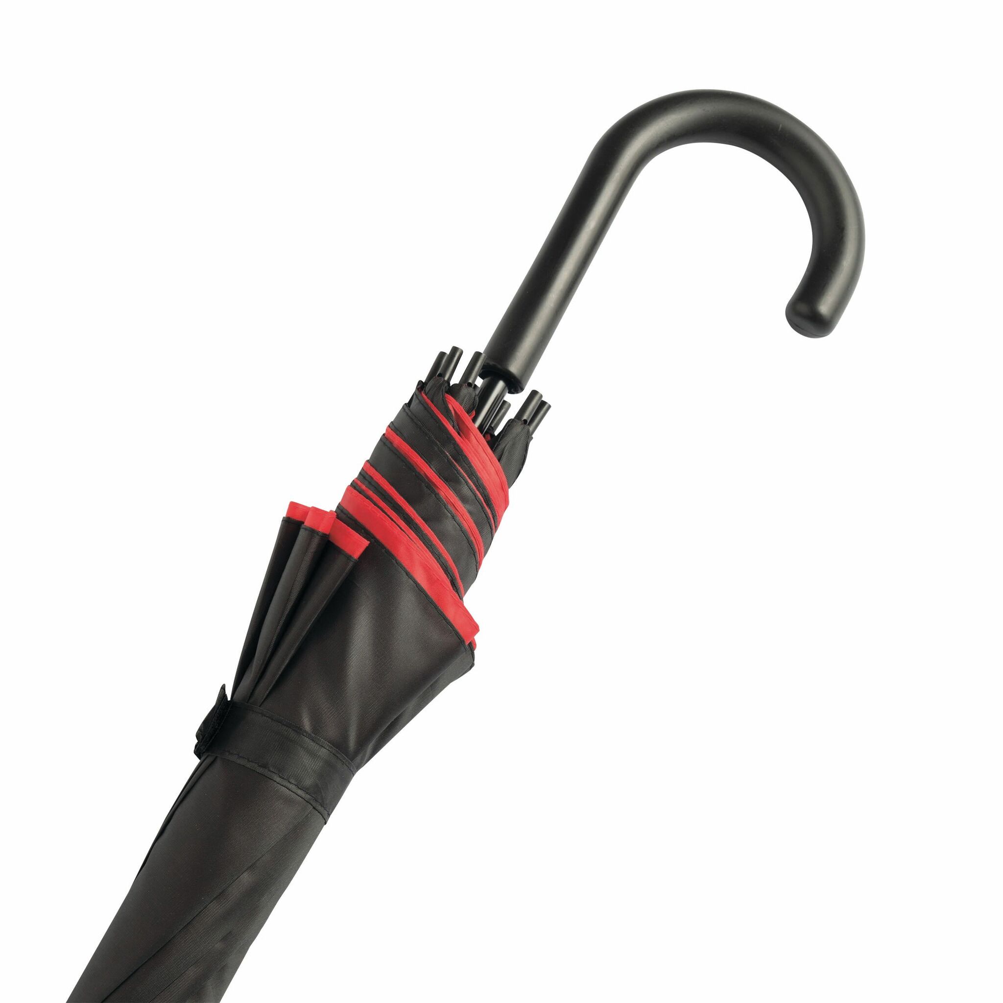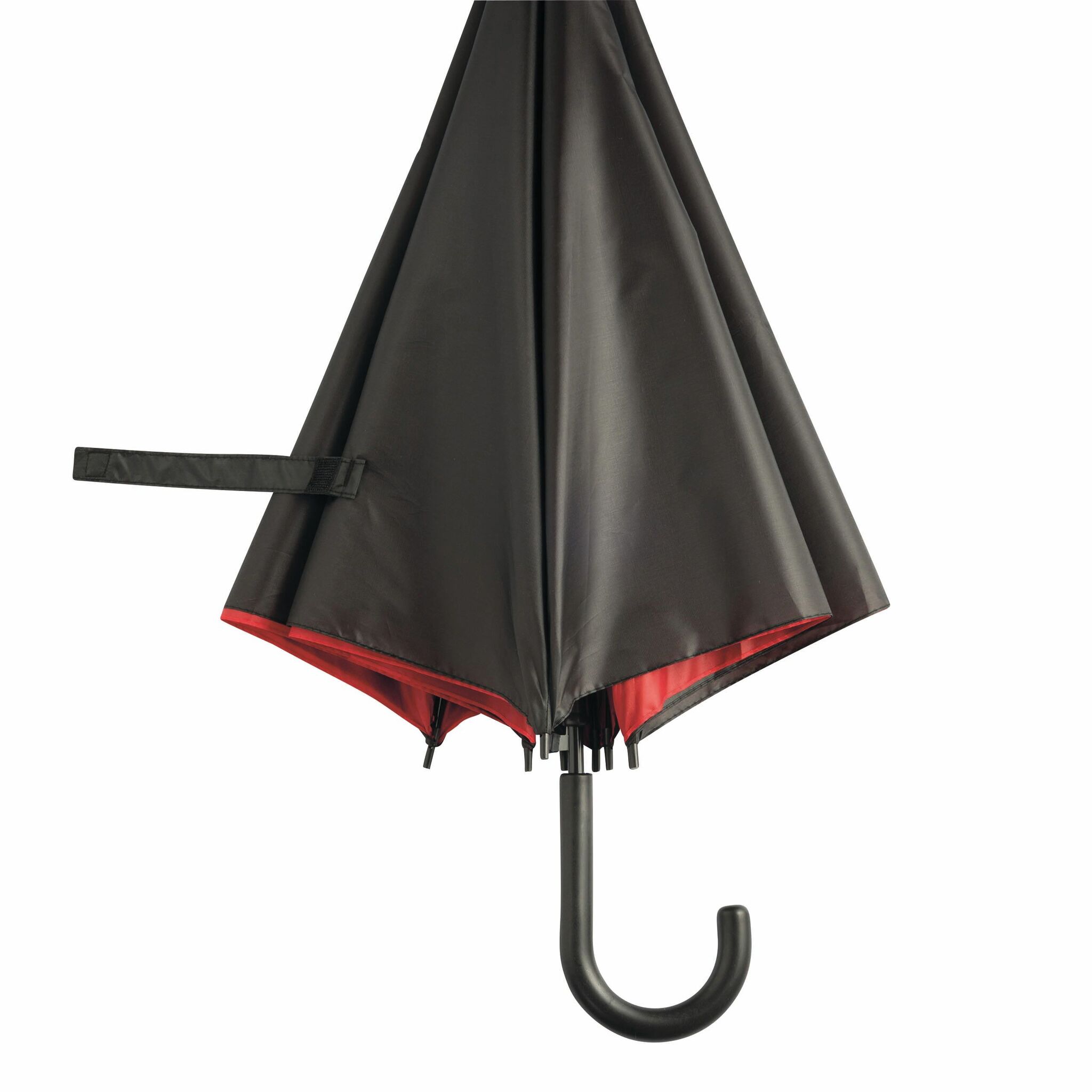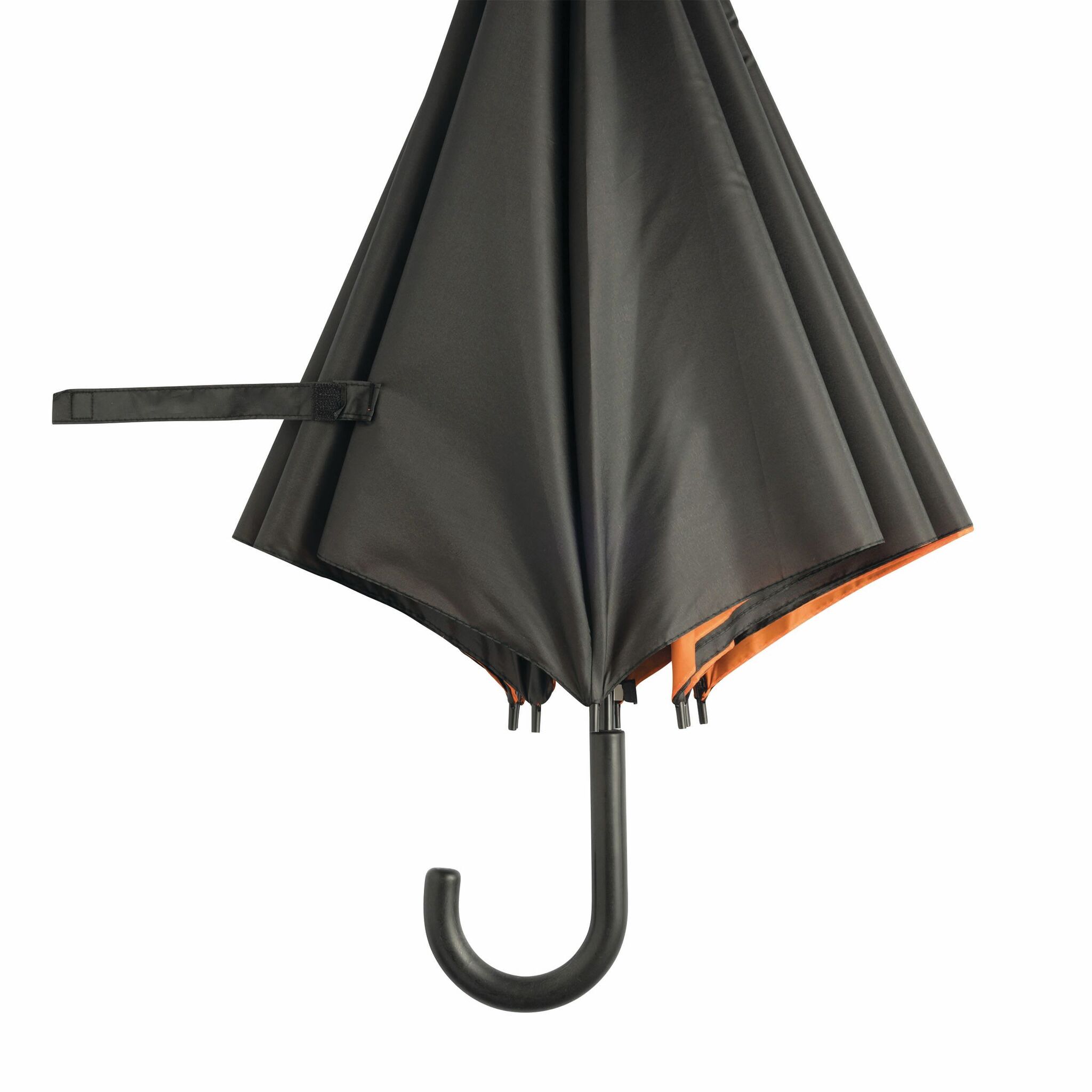 Aвтоматический зонт DOUBLY : металлические стержень и спицы, пластиковые наконечники спиц и ручка, двойной и двухцветный купол зонта из полиэстра, стяжная лента на липучке