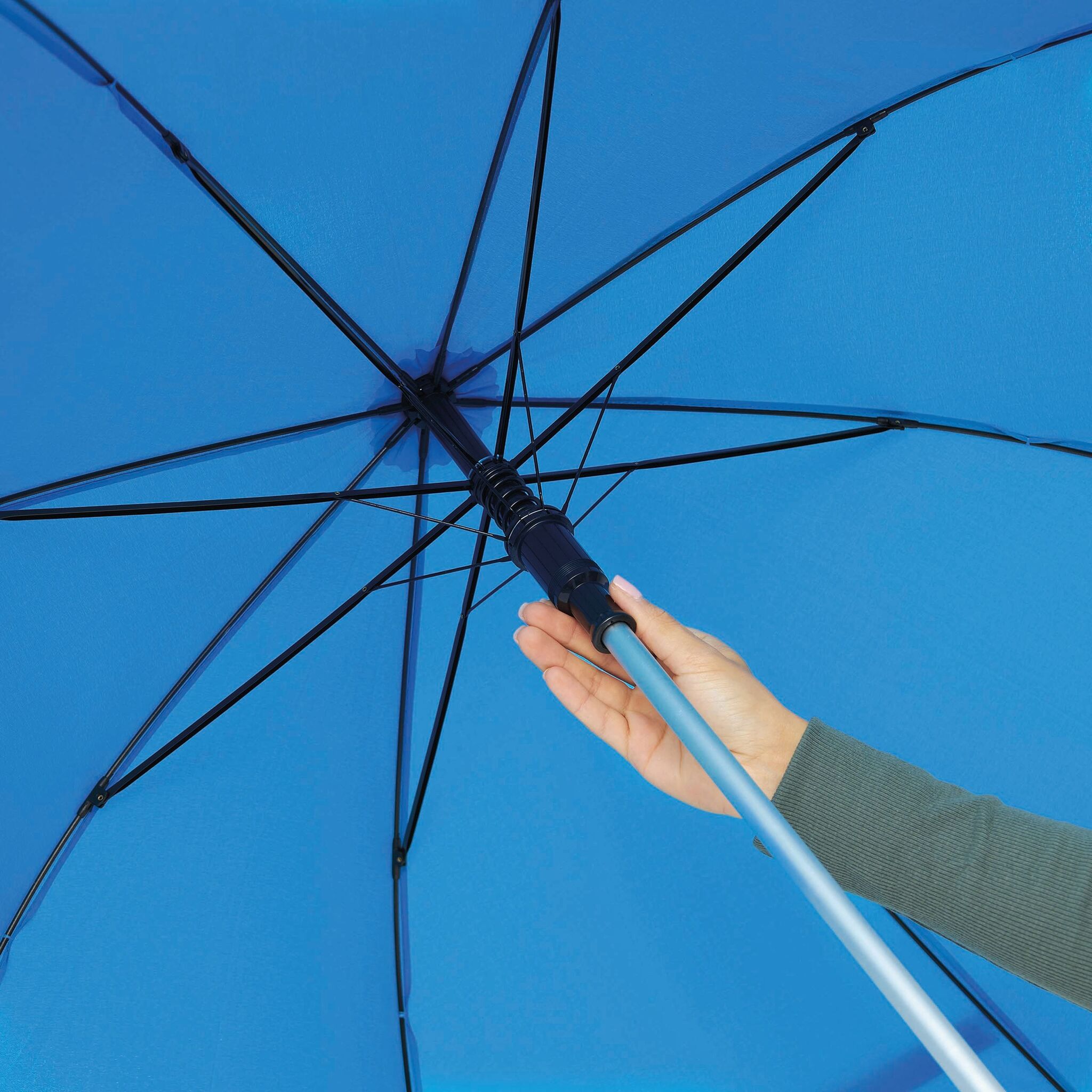 Автоматический зонт RUMBA , трость - алюминий, спицы - стекловолокно, наконечники - металл, ручка - EVA, материал - полиэстер понджи