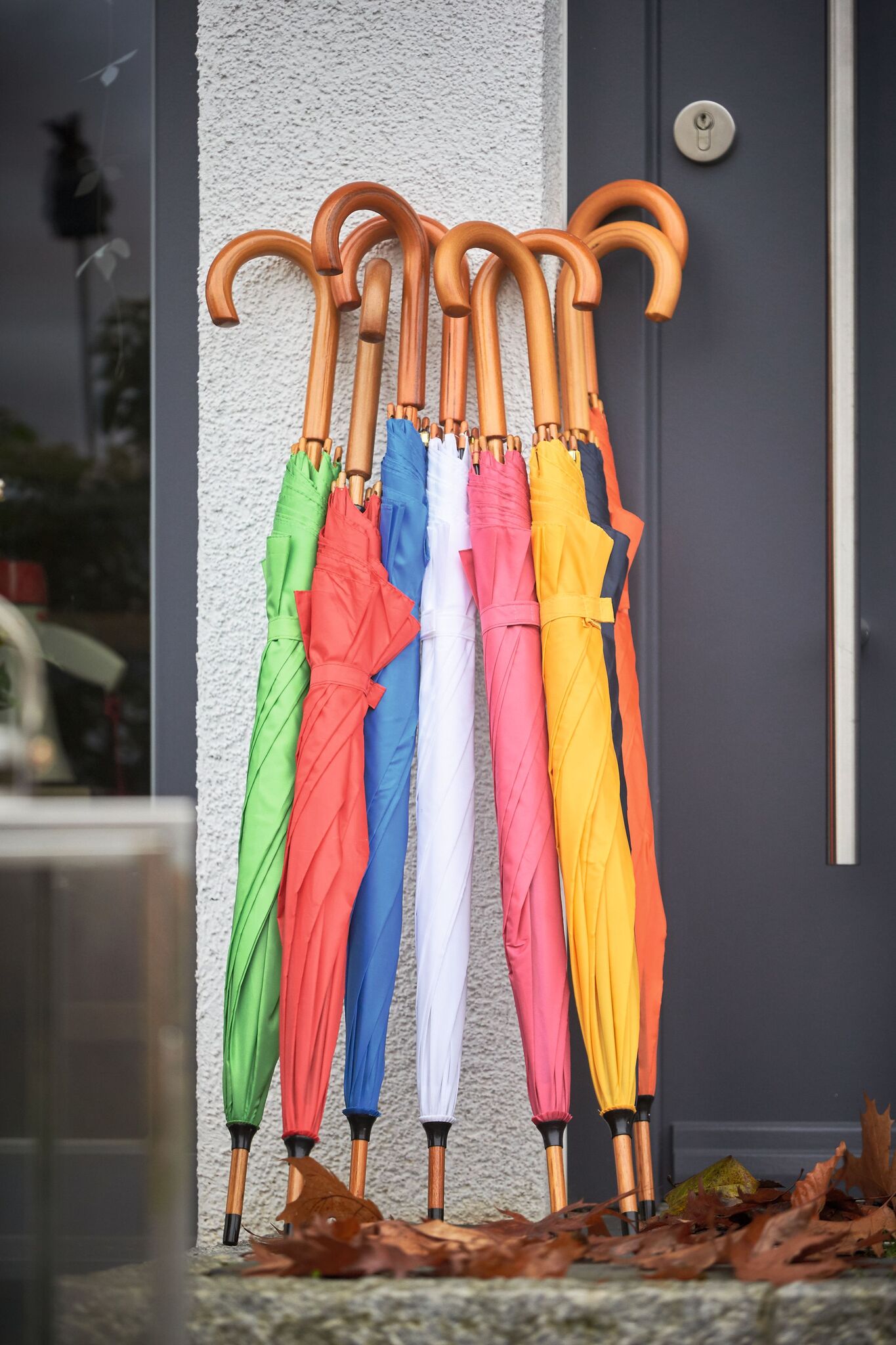 Автоматический зонт TANGO с деревянной тростью, спицы - металл, наконечники и ручка - дерево, материал - полиэстер