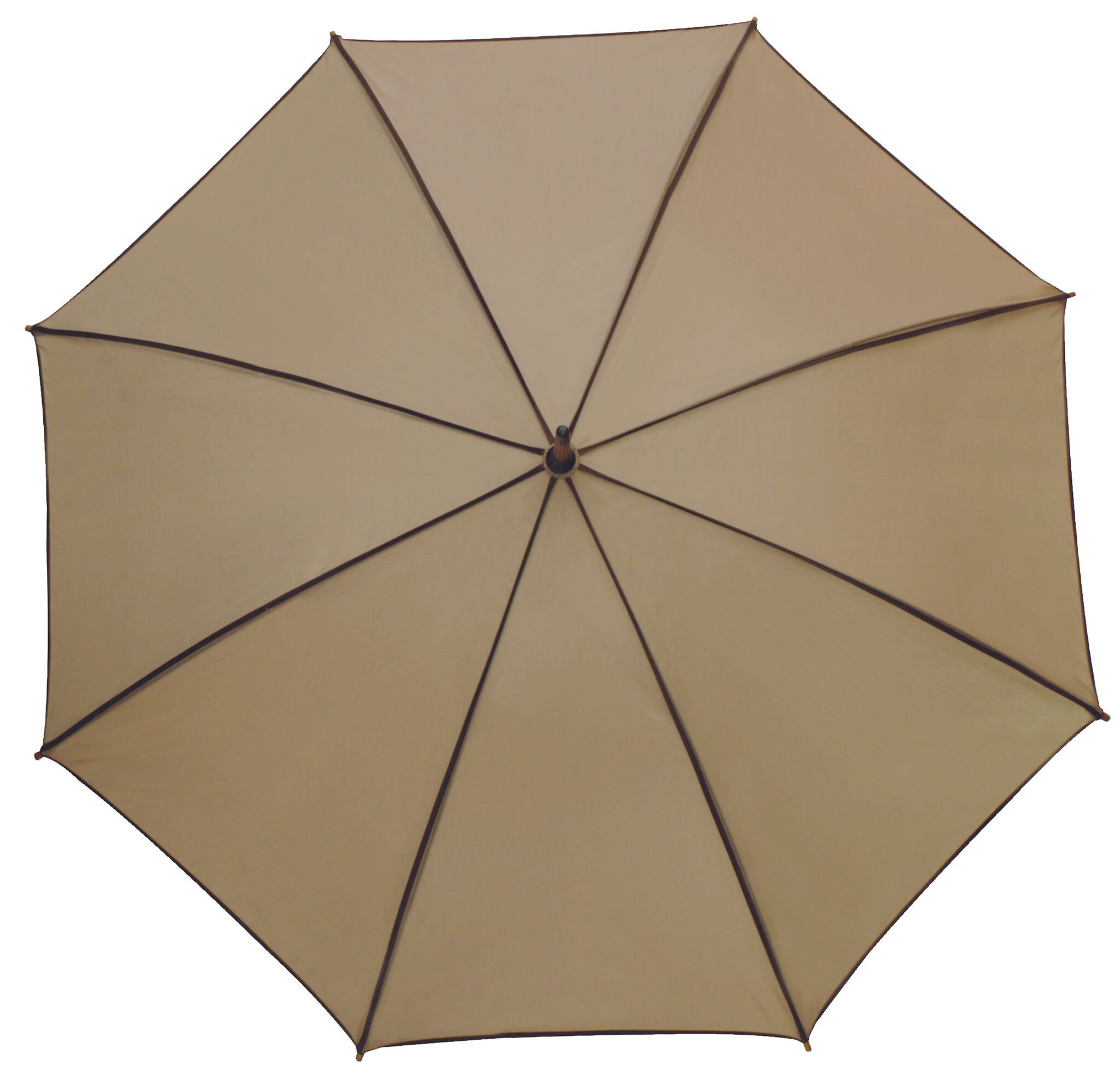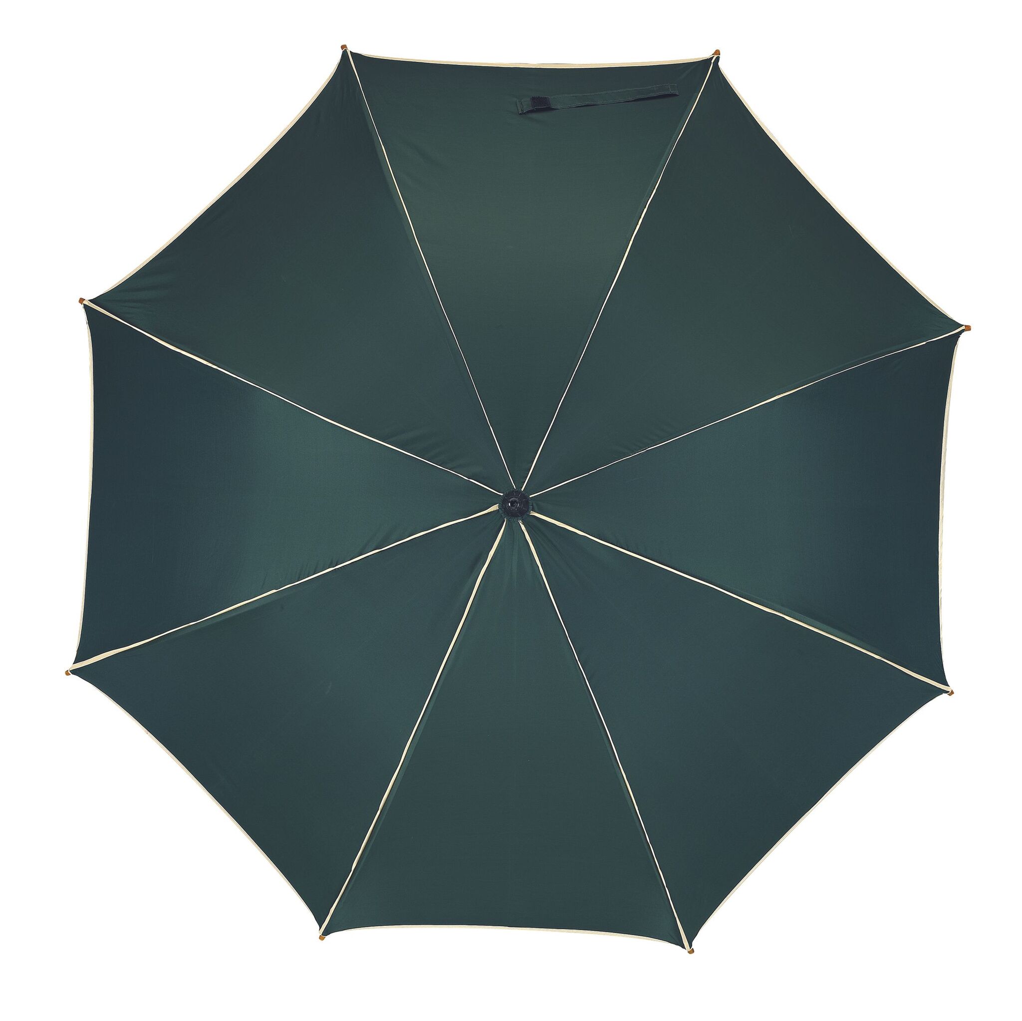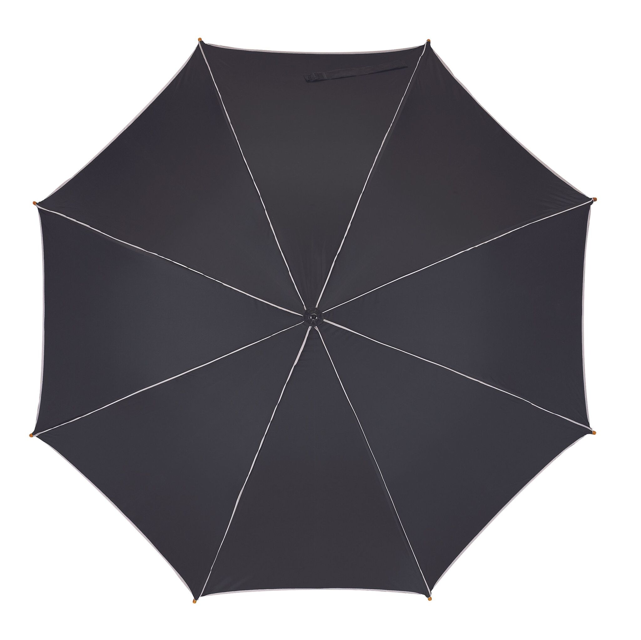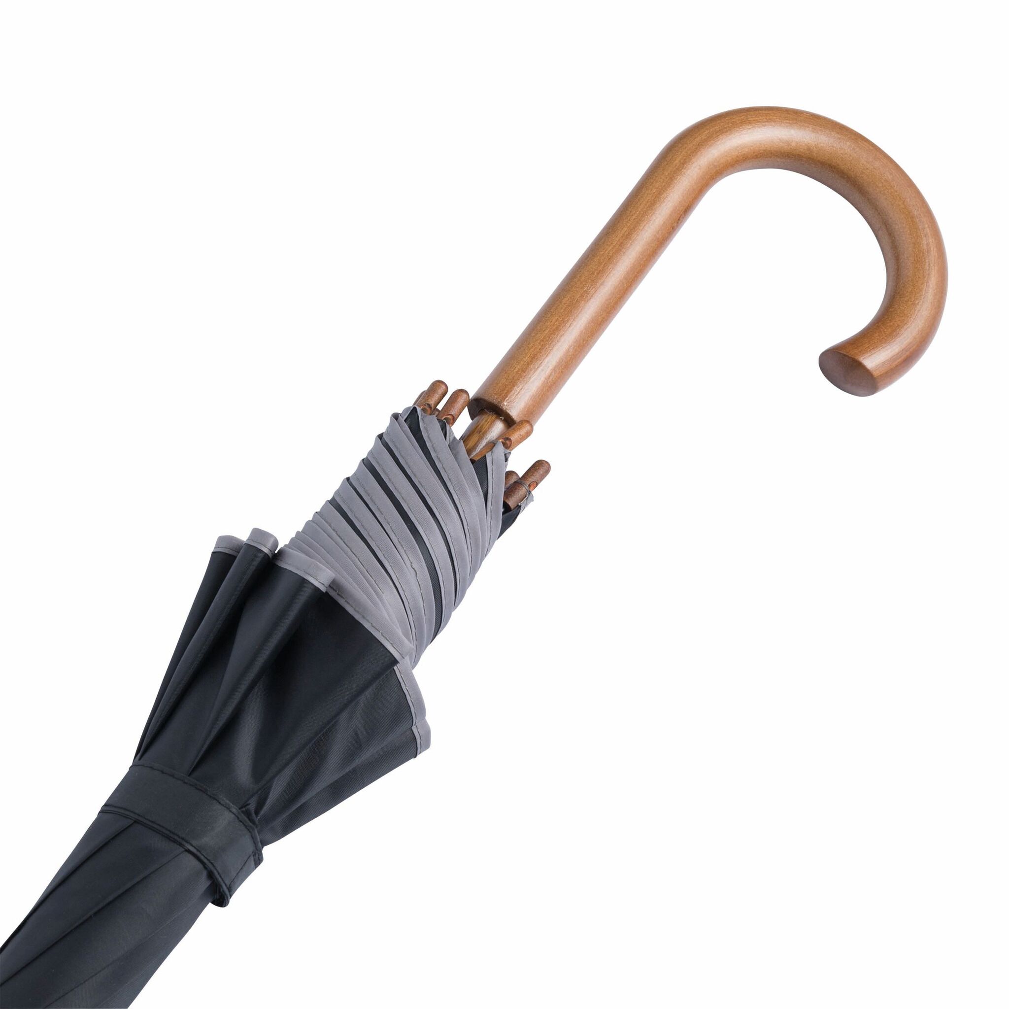 Автоматический зонт WALTZ с деревянной тростью и светлой окантовкой, спицы - металл, наконечники и ручка - дерево, материал - полиэстер 190 T