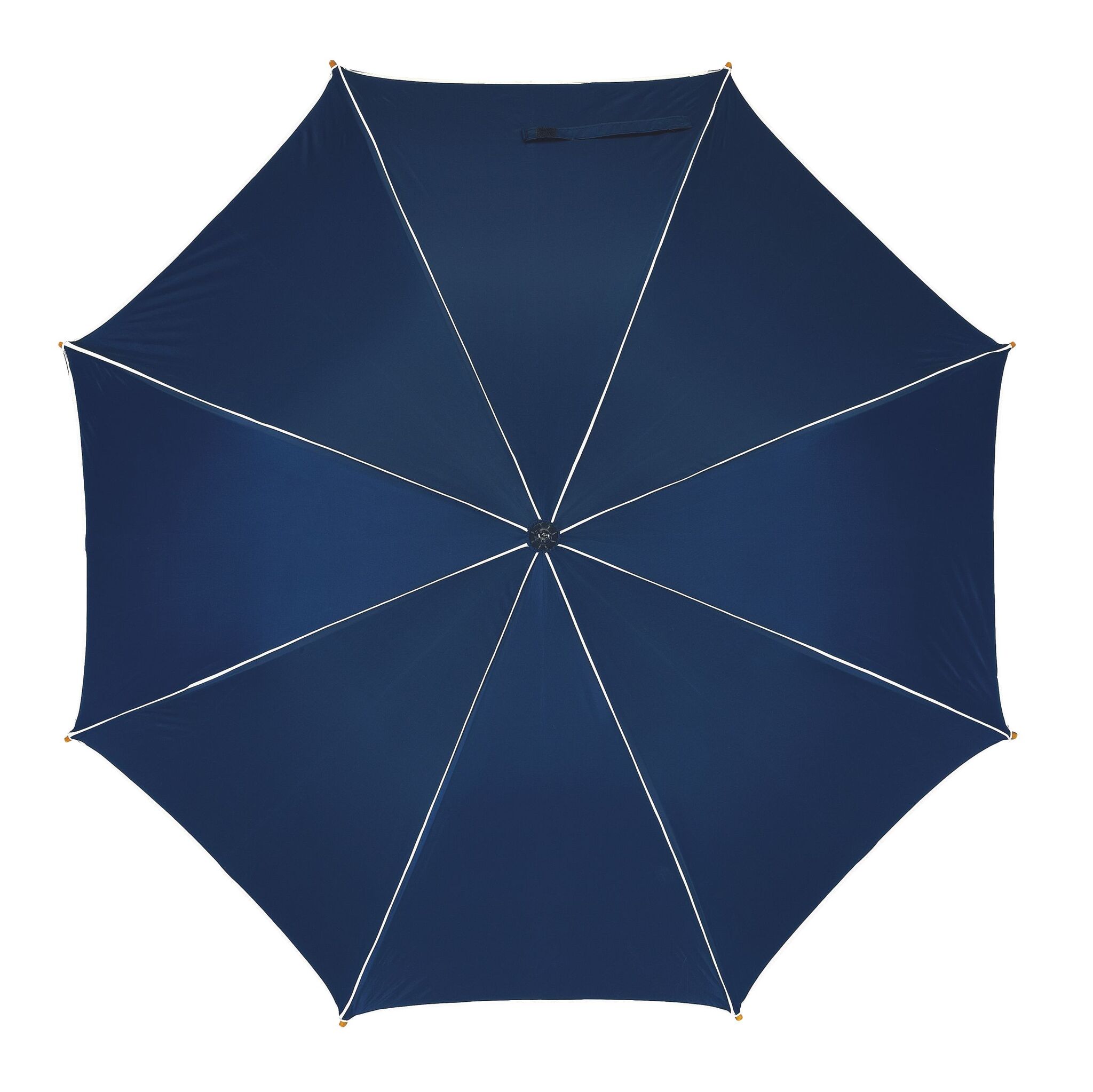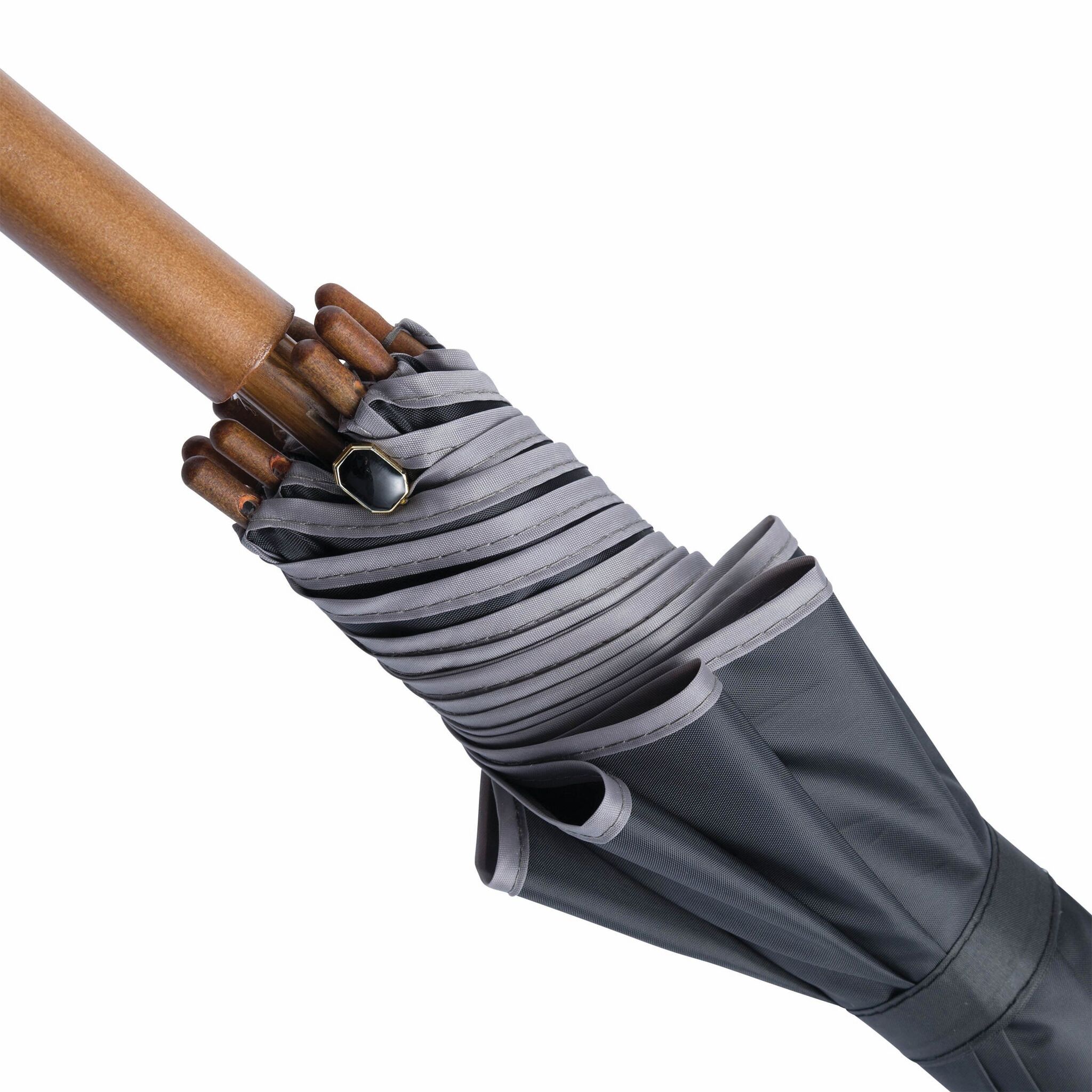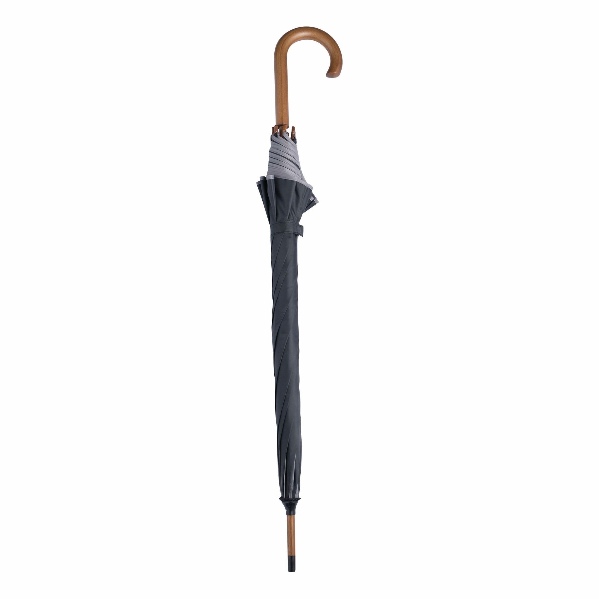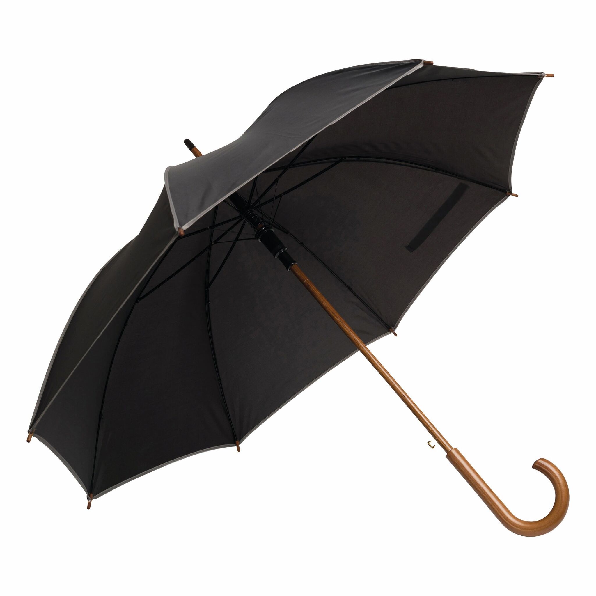 Автоматический зонт WALTZ с деревянной тростью и светлой окантовкой, спицы - металл, наконечники и ручка - дерево, материал - полиэстер 190 T