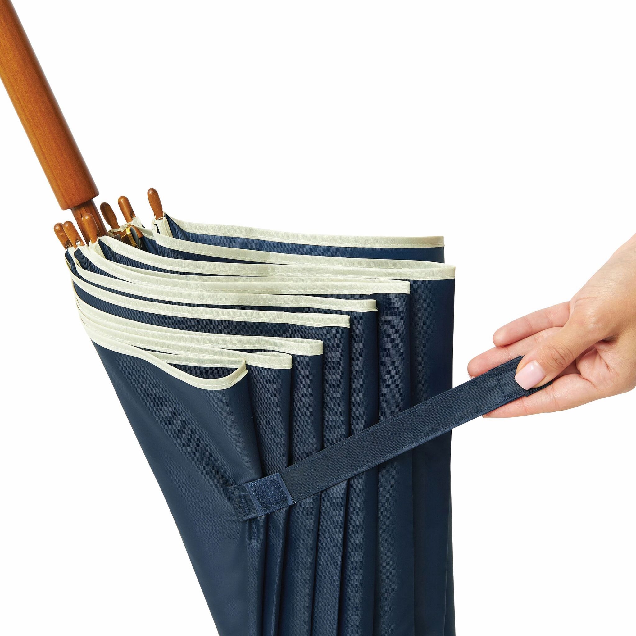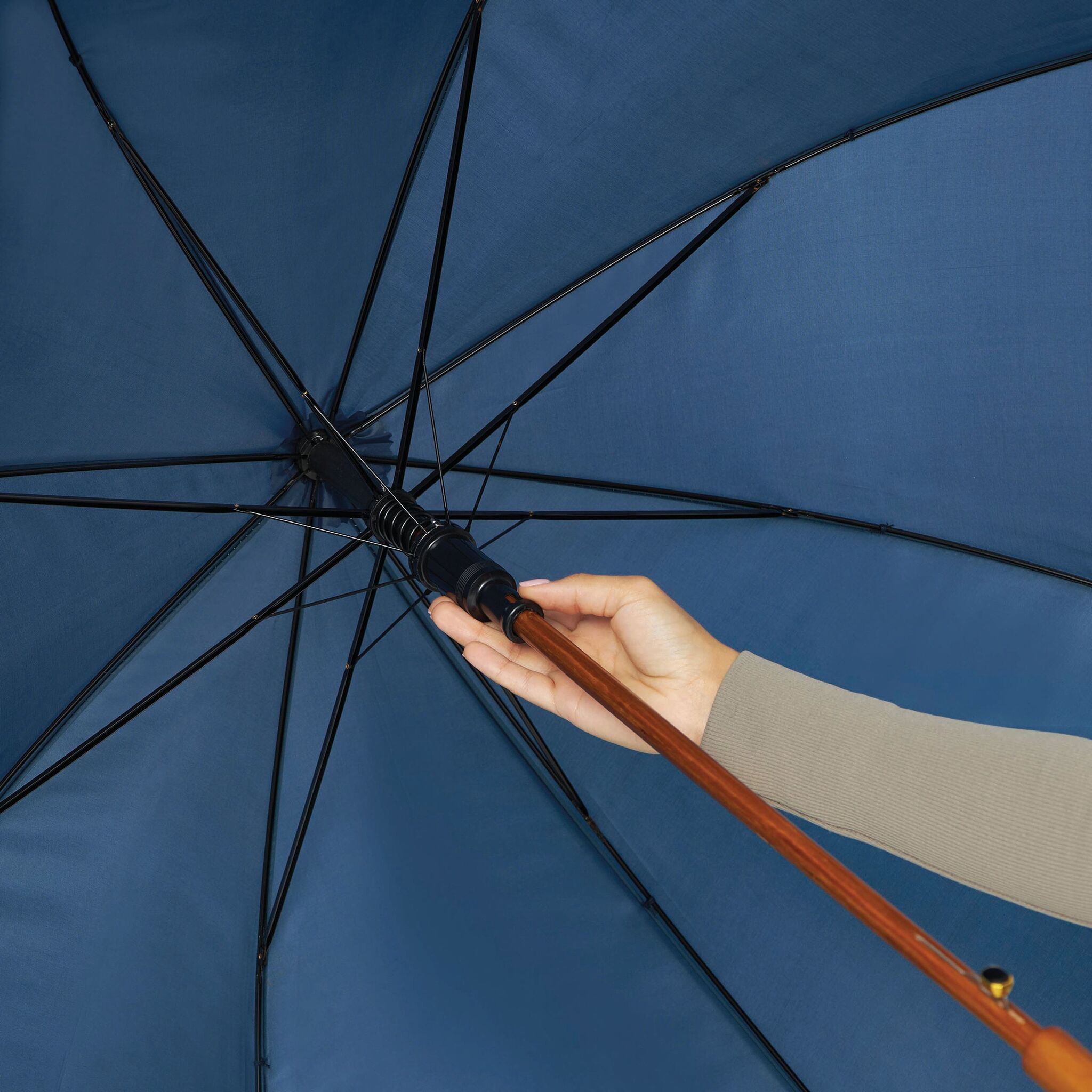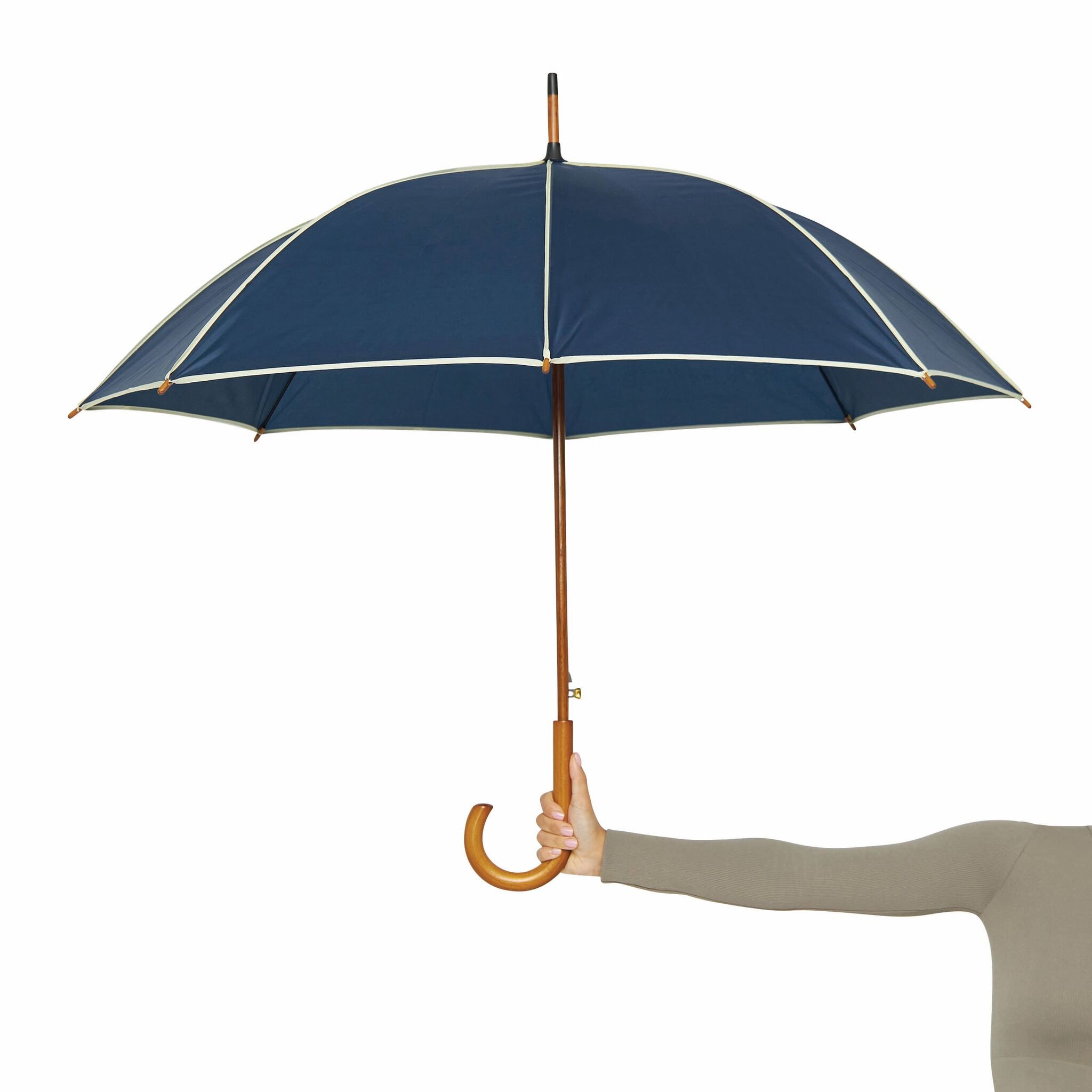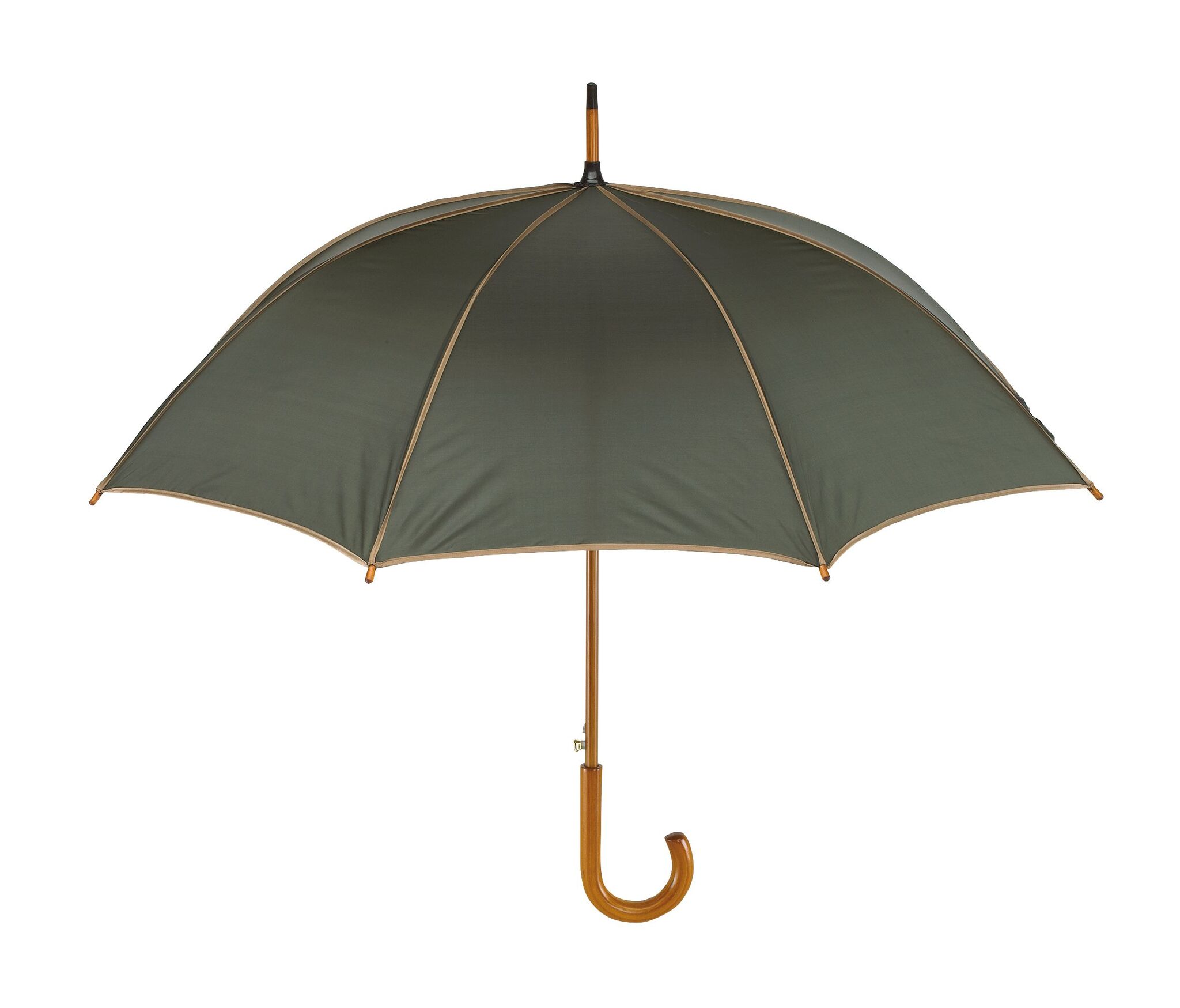Автоматический зонт WALTZ с деревянной тростью и светлой окантовкой, спицы - металл, наконечники и ручка - дерево, материал - полиэстер 190 T