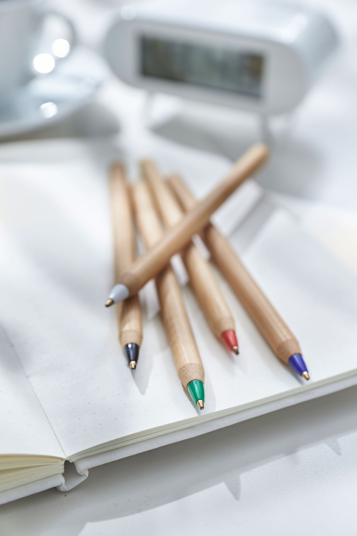 Бамбуковая шариковая ручка ESSENTIAL: с элегантным корпусом из бамбука с цветным наконечником, стержень с синей пастой