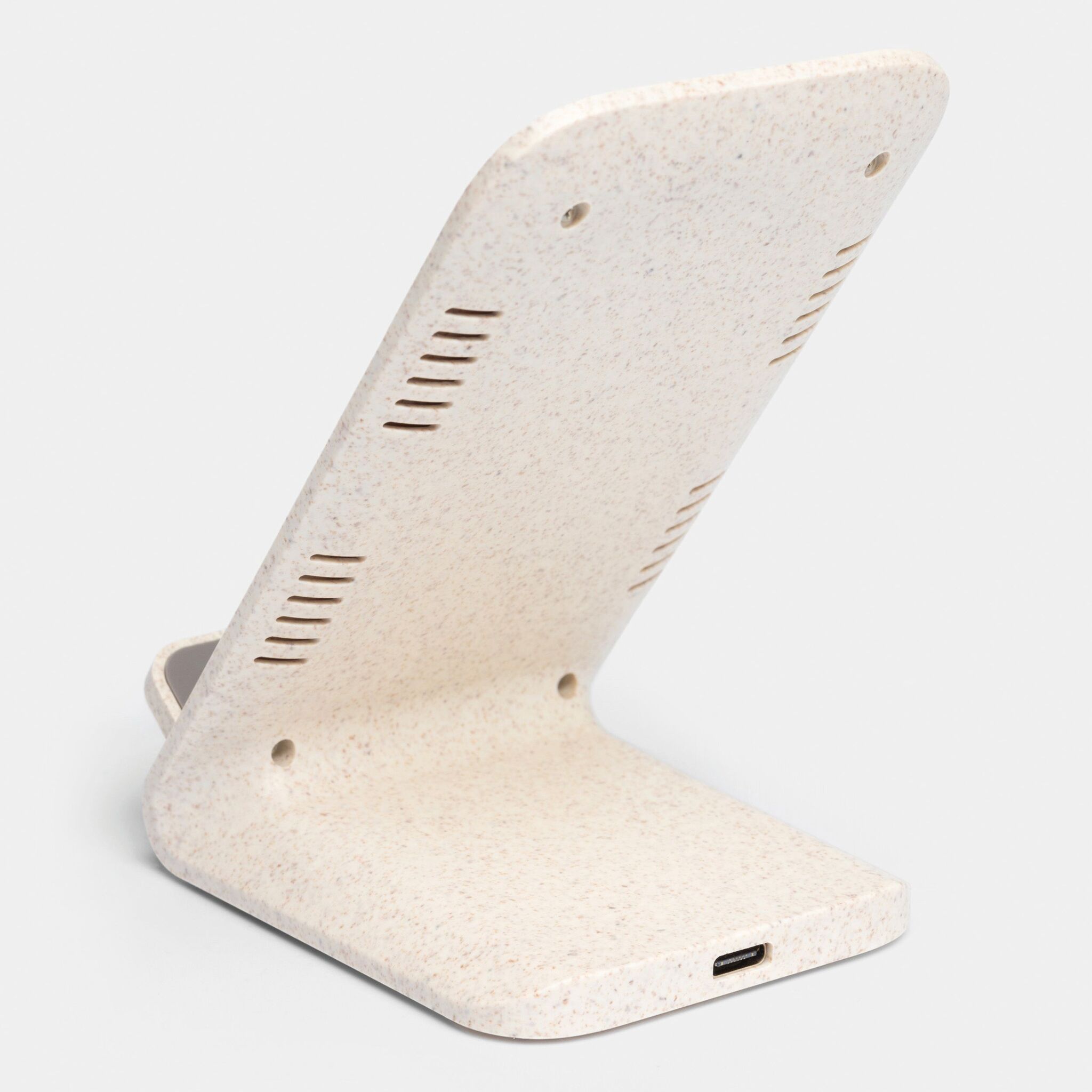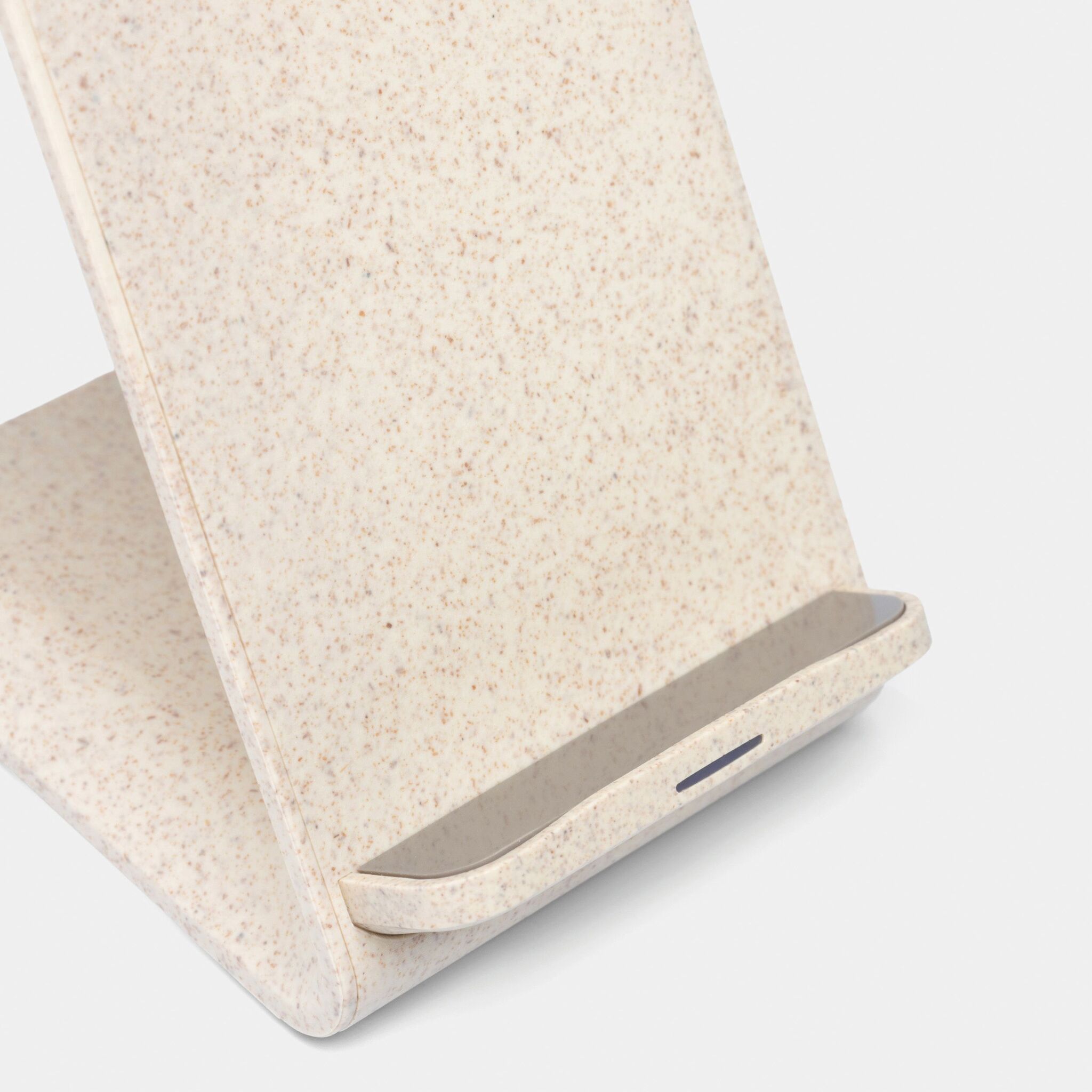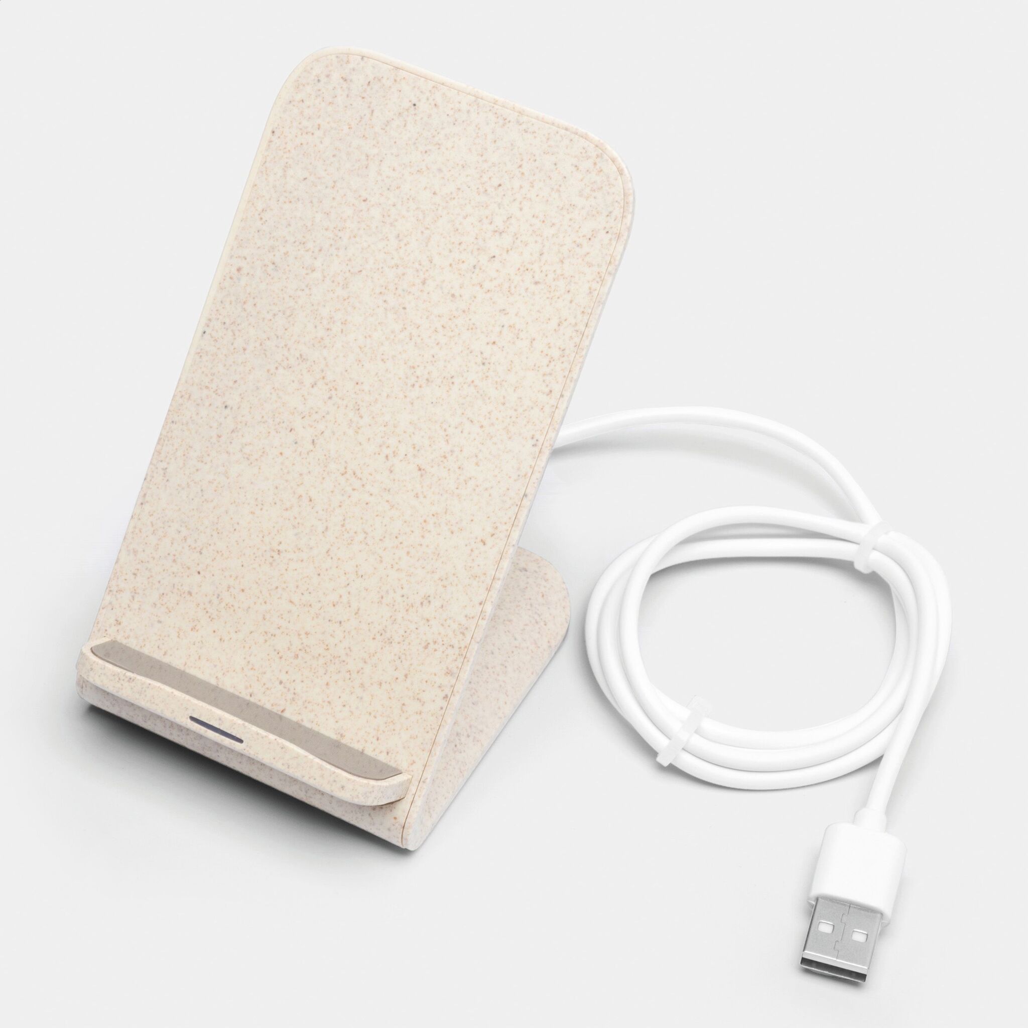 Беспроводная зарядная станция INDUCTIVE : подставка из 35% пшеничной соломы и 65% АБС-пластика, беспроводная зарядка устройства путем прикосновения к контактной поверхности (устройство должно быть приспособлено для индуктивной зарядки), USB-кабель со штекером USB Type-C (длина ок. 102 см), световой индикатор горит синим в процессе зарядки и зеленым по ее окончании, входная мощность: 5 В/9 В, 2 А, выходная мощность: 15 Вт, автоматический контроль температуры и функция обнаружения нежелательных объектов предотвращают перегрев и потери энергии