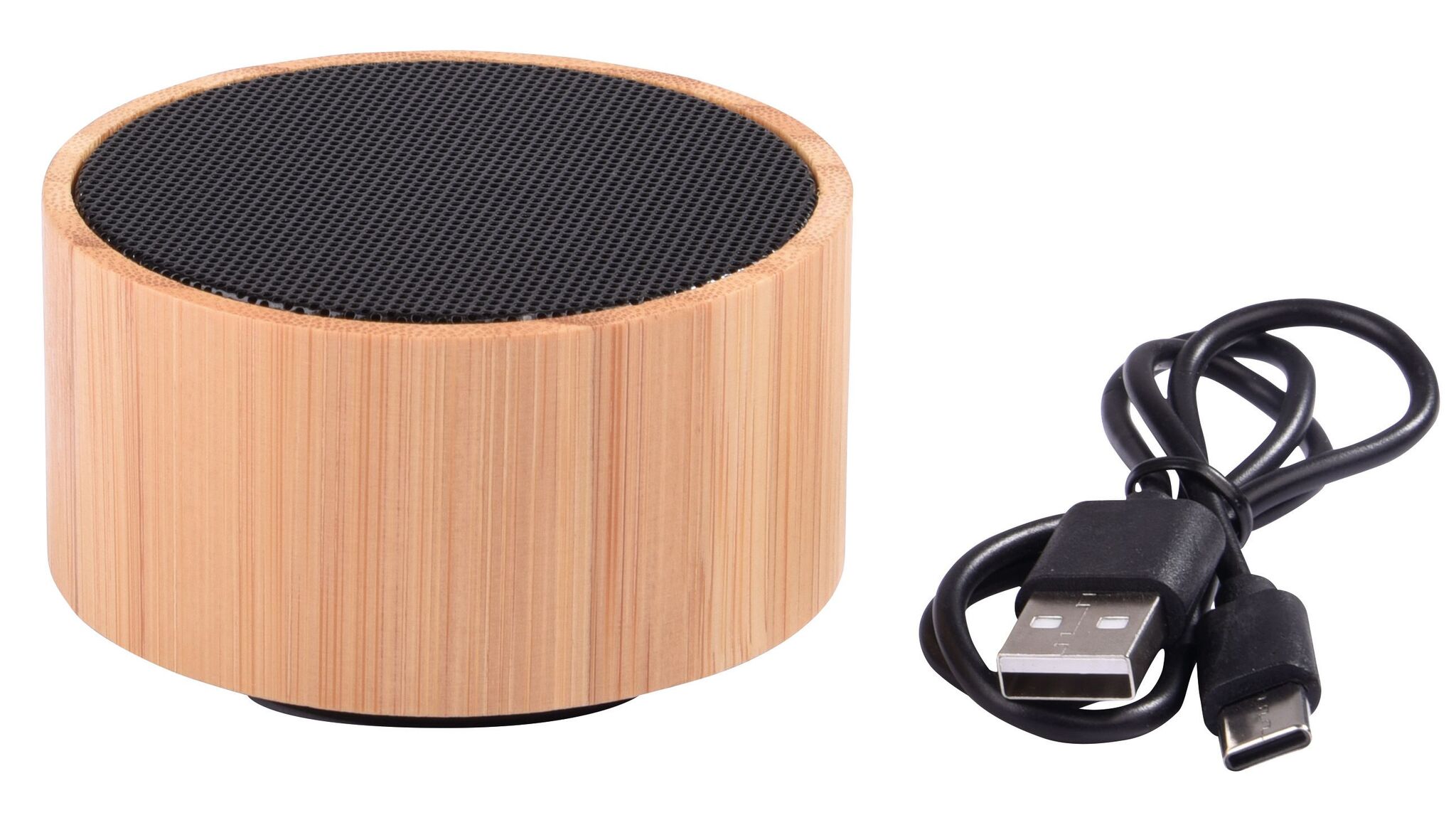 Беспроводное соединение-Lautsprecher BAMBOO SOUND : mit Бамбук-Ummantelung, Musikleistung 3 Watt, прибл. 10 m Reichweite, zur Koppelung mit Handy, Беспроводное соединение-MP3-Player, Tablet, etc., inkl. Aufladekabel (Kabellänge прибл. 50 cм, USB Typ C), Slot für Micro-SD-Karten, Freisprechfunktion, Eingangsleistung: 5V/0,5A, integrierter, aufladbarer Akku mit 300mAh, Anti-Rutsch-Beschichtung am Boden