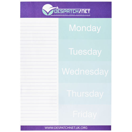 Белый блокнот Desk-Mate® формата А4. Состоит из чистых листов 80 г/м². Стандартный вариант состоит из 50 листов, а также доступно по 25 и 100 листов. На каждый лист можно нанести рисунок. Размеры листа: 210x297мм.
