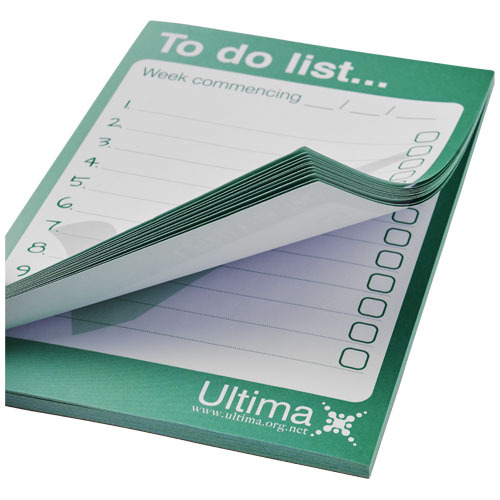 Белый блокнот Desk-Mate® формата А6. Состоит из чистых листов 80 г/м². Стандартный вариант состоит из 50 листов, а также доступно по 25 и 100 листов. На каждый лист можно нанести рисунок. Размеры листа: 105x148мм.