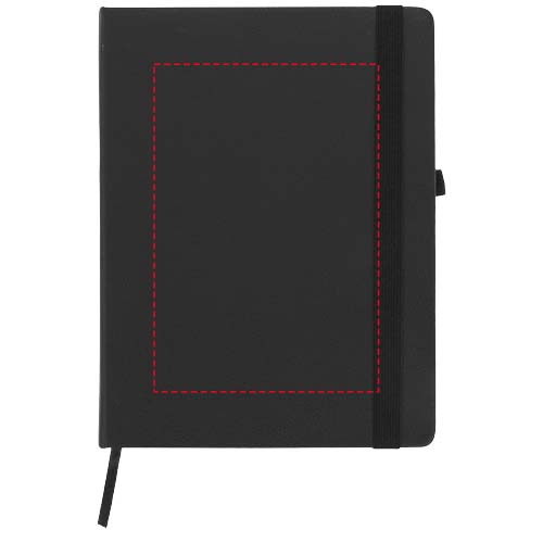 Блокнот Rivista отличается стильным современным дизайном с высококачественной обложкой, идеально подходящей для нанесения логотипа и информации вашей компании. Предлагаются современные цвета. Также предусмотрена эластичная застежка, держатель для ручки, лента-закладка и кармашек изнутри на задней стороне обложки. Содержит 128 листов линованной бумаги (70 г/м²) кремового цвета.