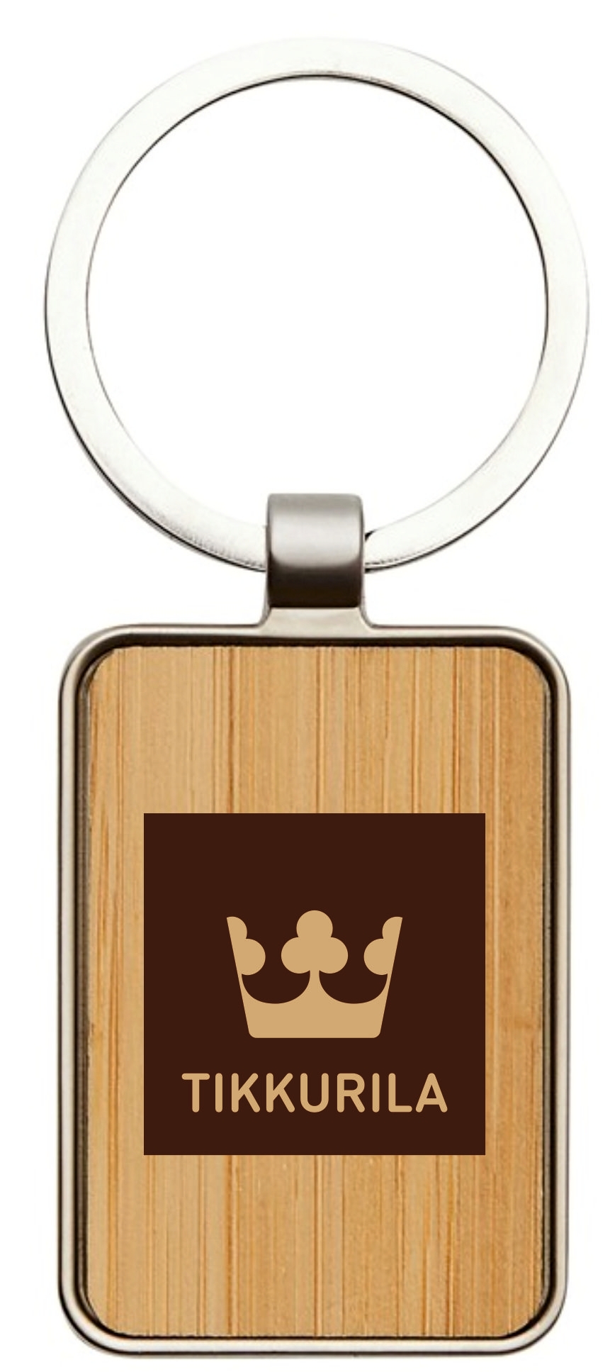 Металлический брелок для ключей в с бамбуковой вставкой.