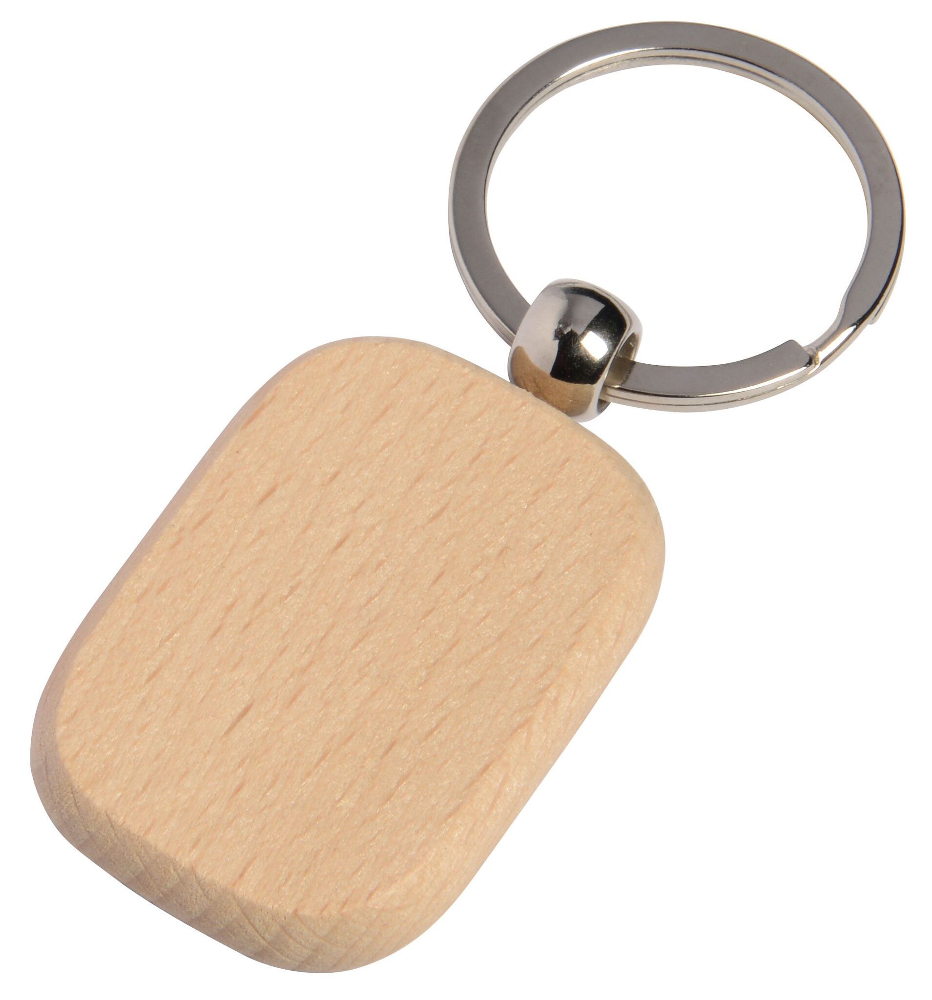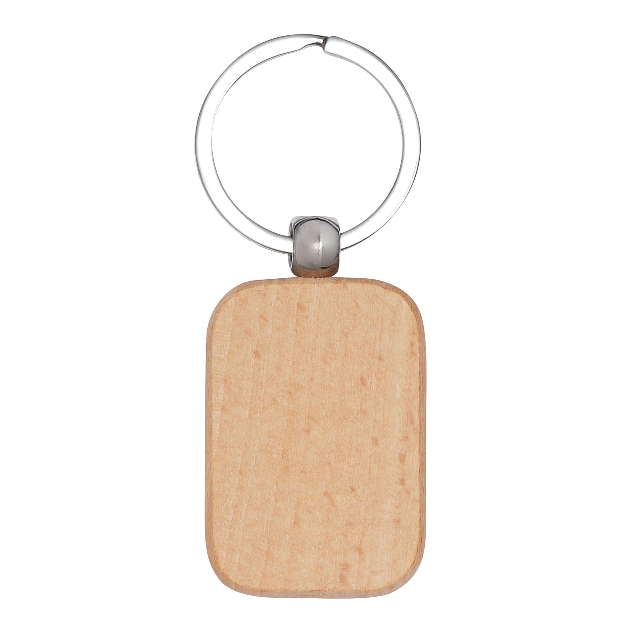 Брелок TIMBER , прямоугольной формы: с кольцом серебряного цвета и большой деревянной поверхностью.