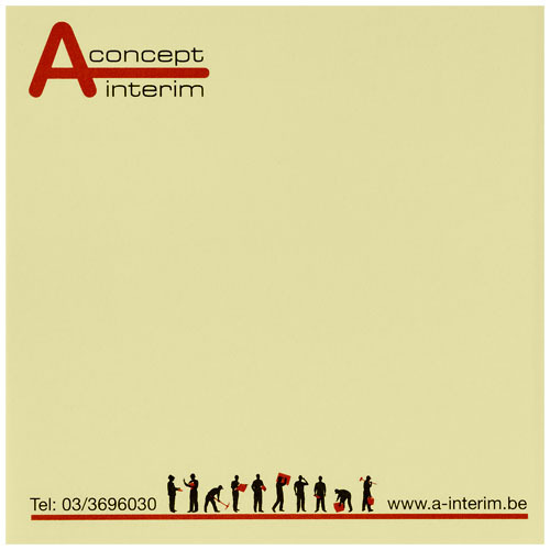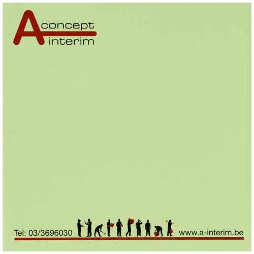 Бумага для заметок Sticky-Mate®. Состоит из чистых листов 80 г/м². Стандартный вариант состоит из 50 листов, а также доступно по 25 и 100 листов. На каждый лист можно нанести полноцветный рисунок. Размеры листа: 75x75мм.