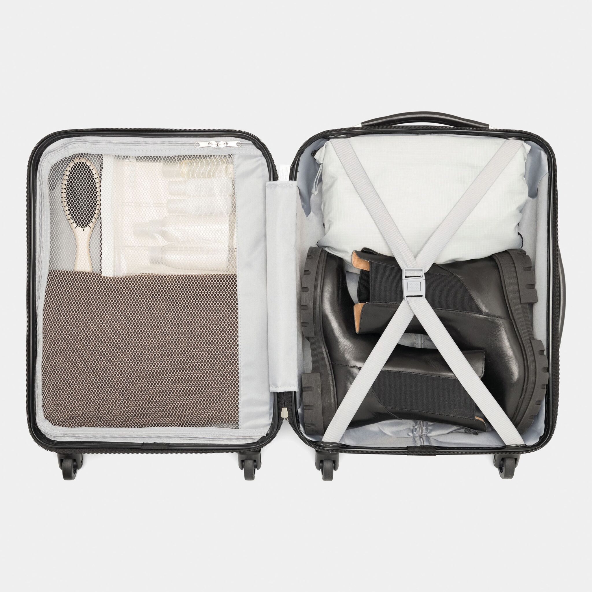 Чемодан ST. TROPEZ возможность упаковки с двух сторон, внутри подкладка с разделительной стенкой и упаковочными ремнями, выдвижная ручка, 2 ручки, 4 боковые ножки, 4 колеса, кодовый замок, размеры отвечают требованиям низкобюджетных авиалиний