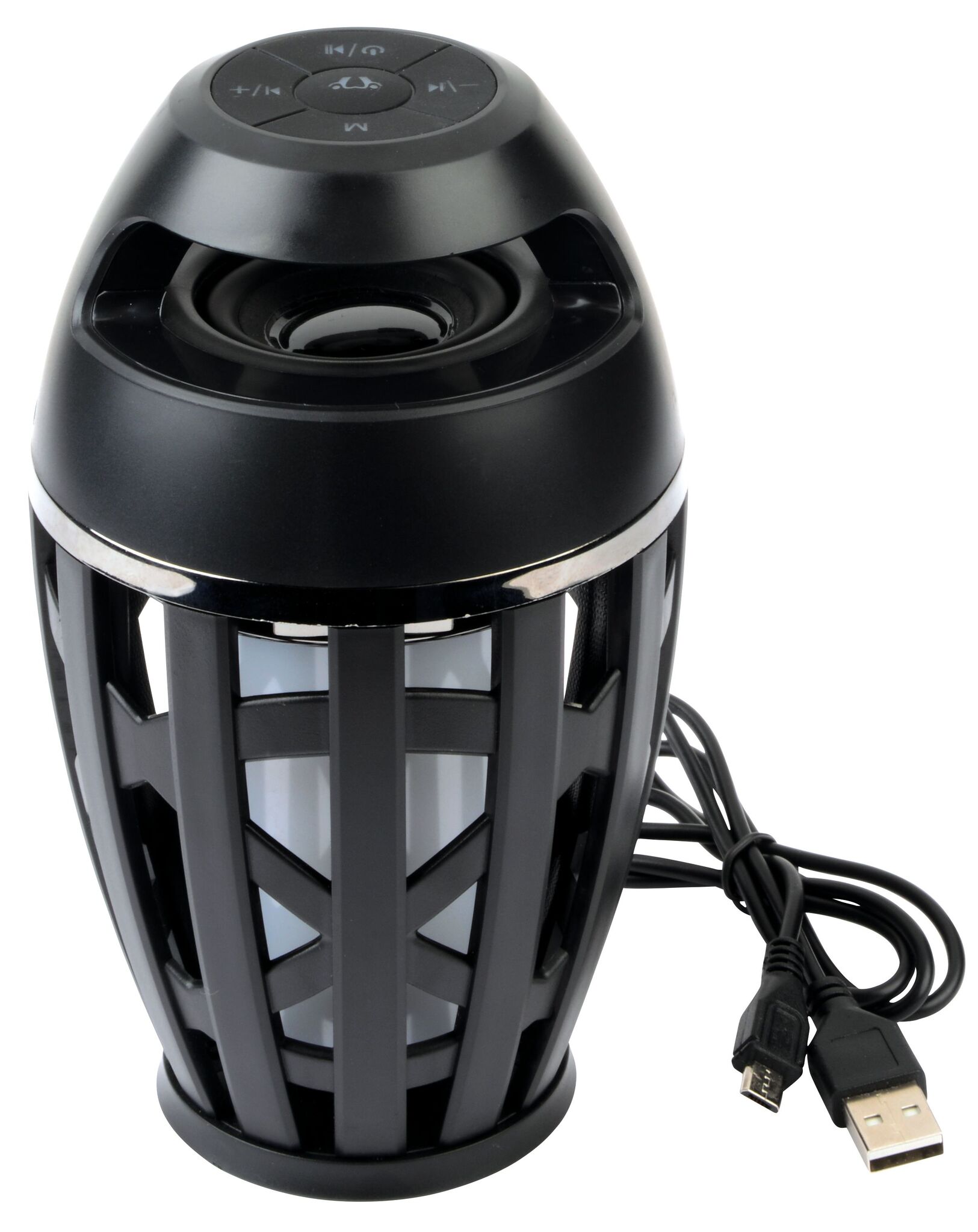 Динамик с беспроводным соединением BONFIRE : мощность 3W, возможность подключения через беспроводное соединение к мобильным телефонам, mp3-плеерам, планшетам и тд., считыватель карт TF, кабель Micro-USB (длина ок. 60 см), мощная аккумуляторная батарея ёмкостью 1,500 mAh, подсветка из 48 LED лампочек, напоминающая огонь