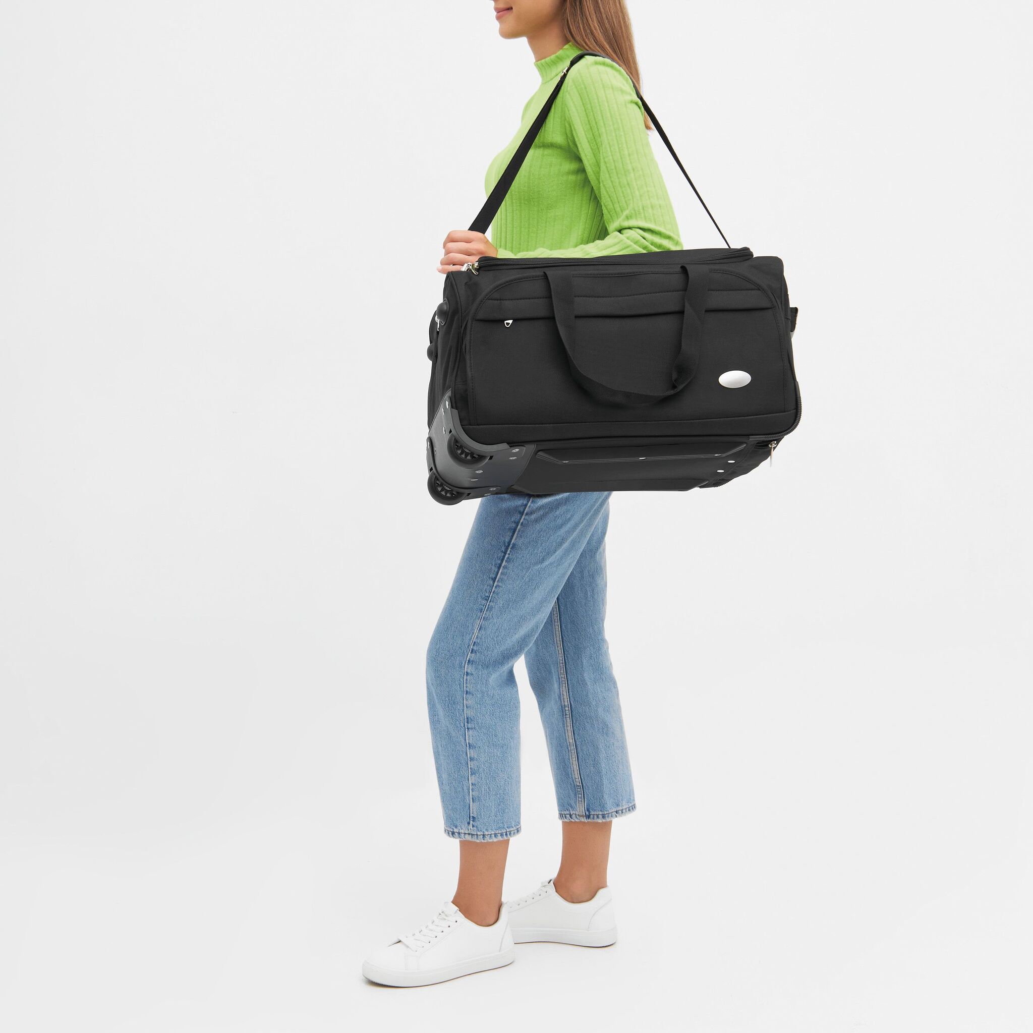 Дорожная сумка AIRPACK , на резиновых колёсиках, с выдвигающейся ручкой, с 2-мя передними карманами намолнии, металлической пластиной для логотипа, регулируемая лямка на плечо.