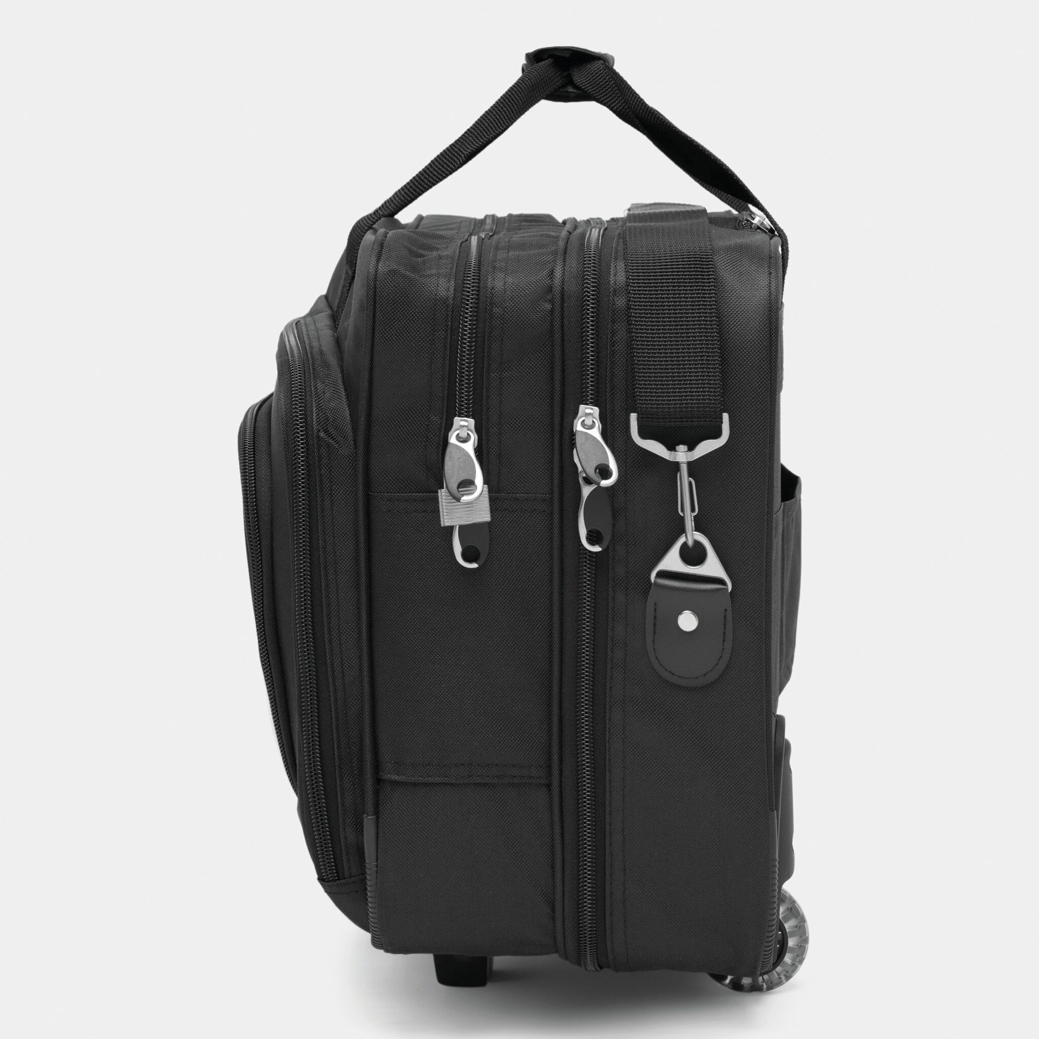 Дорожная сумка МANAGER на колёсиках, с внешним карманом на молнии, металлической пластиной для логотипа, уплотнённым отделением для мобильного телефона, 2-мя внутренними отделениями на молнии, выдвигающейся ручкой, прозрачными колёсиками, съёмной лямкой