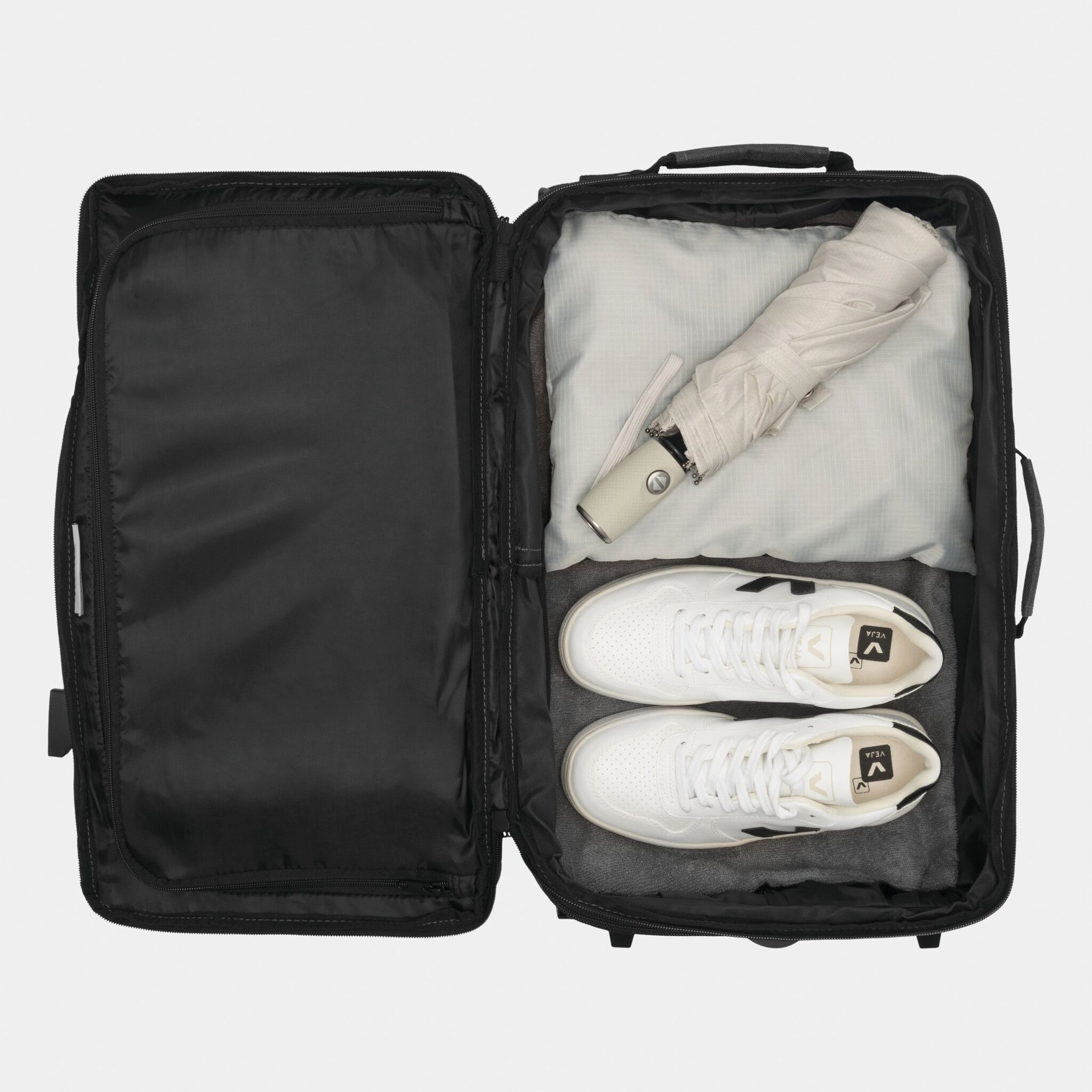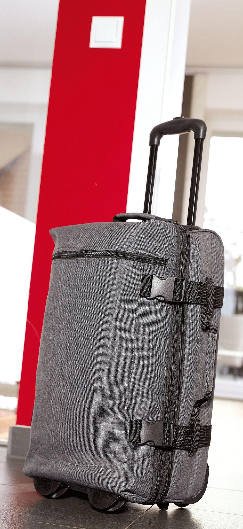 Дорожная сумка на колёсах VISBY лицевой карман на молнии, основной отсек с отдельной застежкой-молнией для увеличения объёма примерно на 10%, с обеих сторон 2 ремня со snap-застежкой, 2 мягкие ручки для переноски, выдвижная ручка для перевозки сумки, колёса с легким ходом и защитой по углам, внизу полозья и опоры.