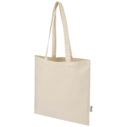 Эко-сумка Peru Blend, изготовленная из 60% переработанного хлопка, сертифицированного согласно GRS, и 40% сертифицированного GRS RPET с плотностью ткани 180 г/м², прочна и долговечна для повседневного использования. Она оснащена большим основным отделением, которое обеспечивает максимальную видимость любого логотипа, а прочный материал позволяет переносить в ней тяжелые предметы (до 5 кг). Плечевые ручки длиной 30 см обеспечивают удобную переноску. Методы печати, используемые для этой эко-сумки, также сертифицированы согласно GRS, что гарантирует прозрачную и полностью сертифицированную цепочку поставок.