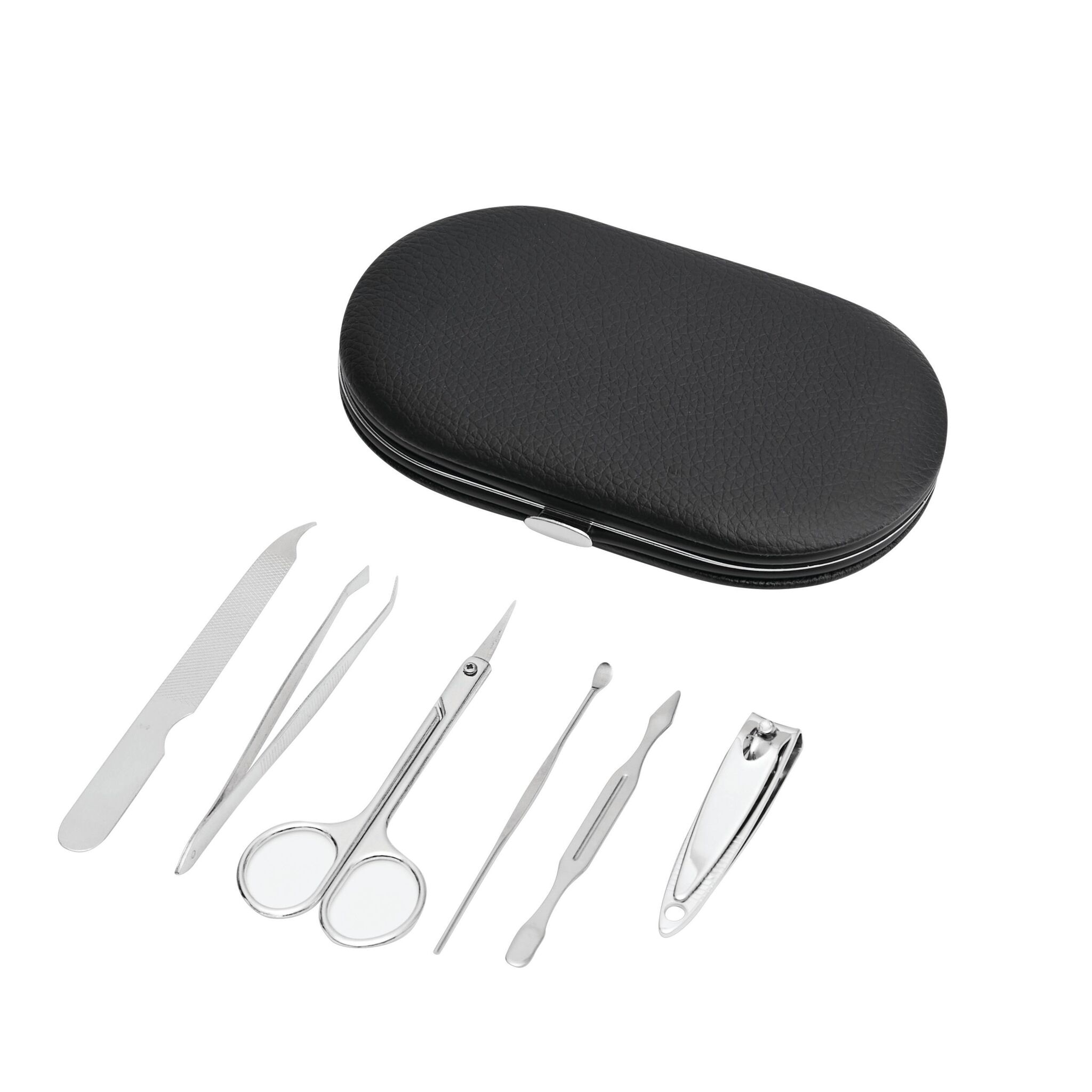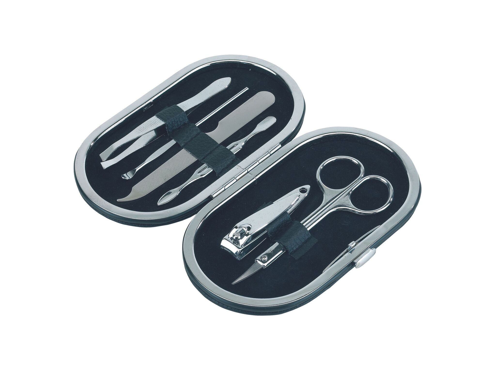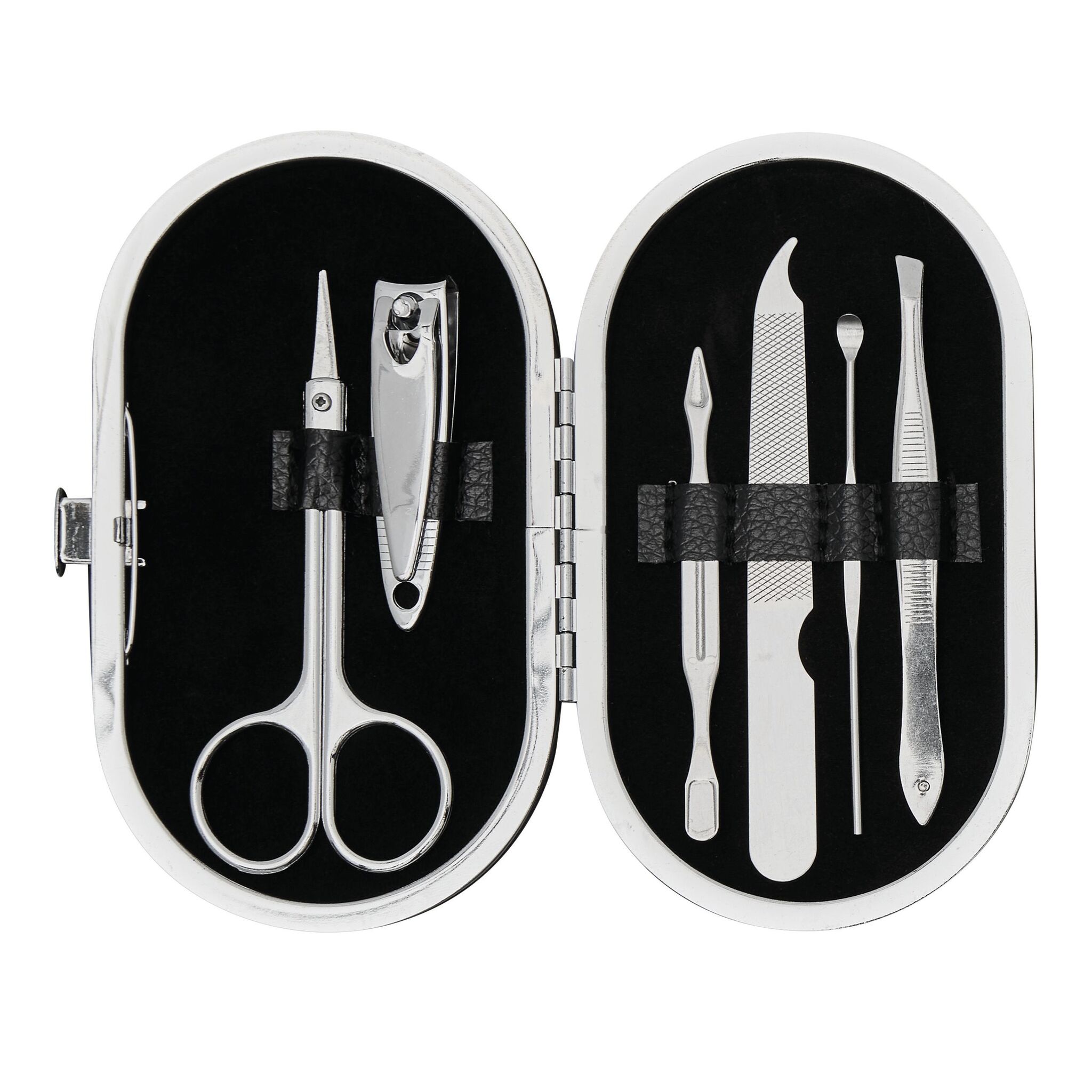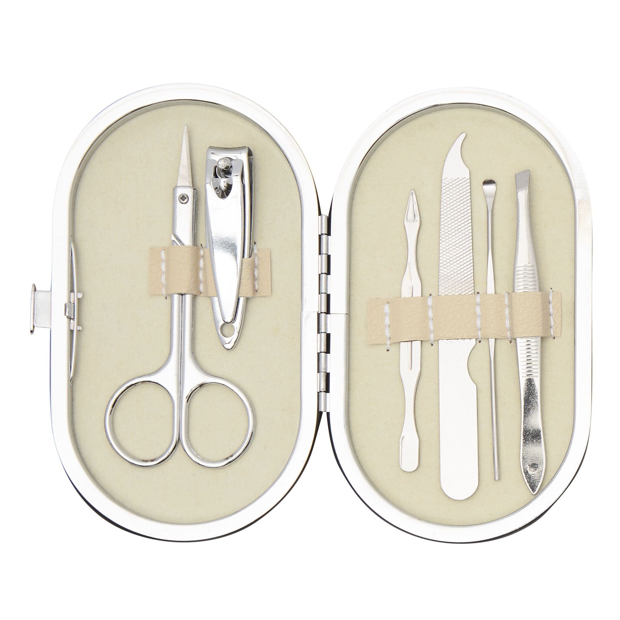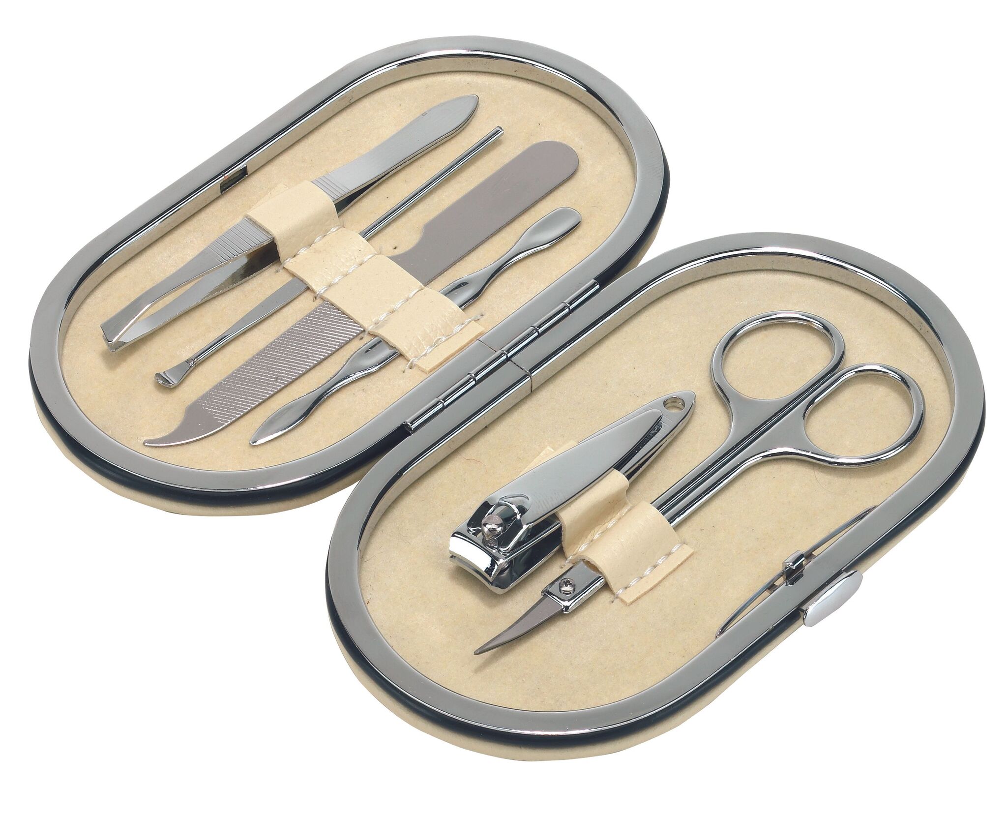 Элегантный маникюрный набор DENISE : ножницы, пинцет, кусачки, маникюрная палочка, пилочка, маникюрная лопатка, в сумочке с застёжкой-кнопкой