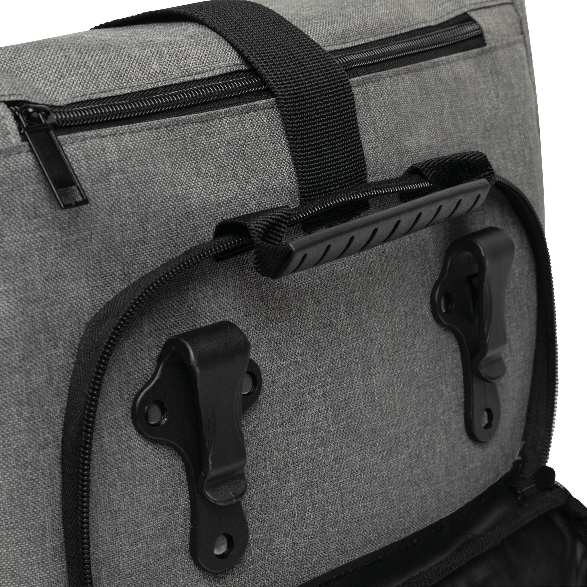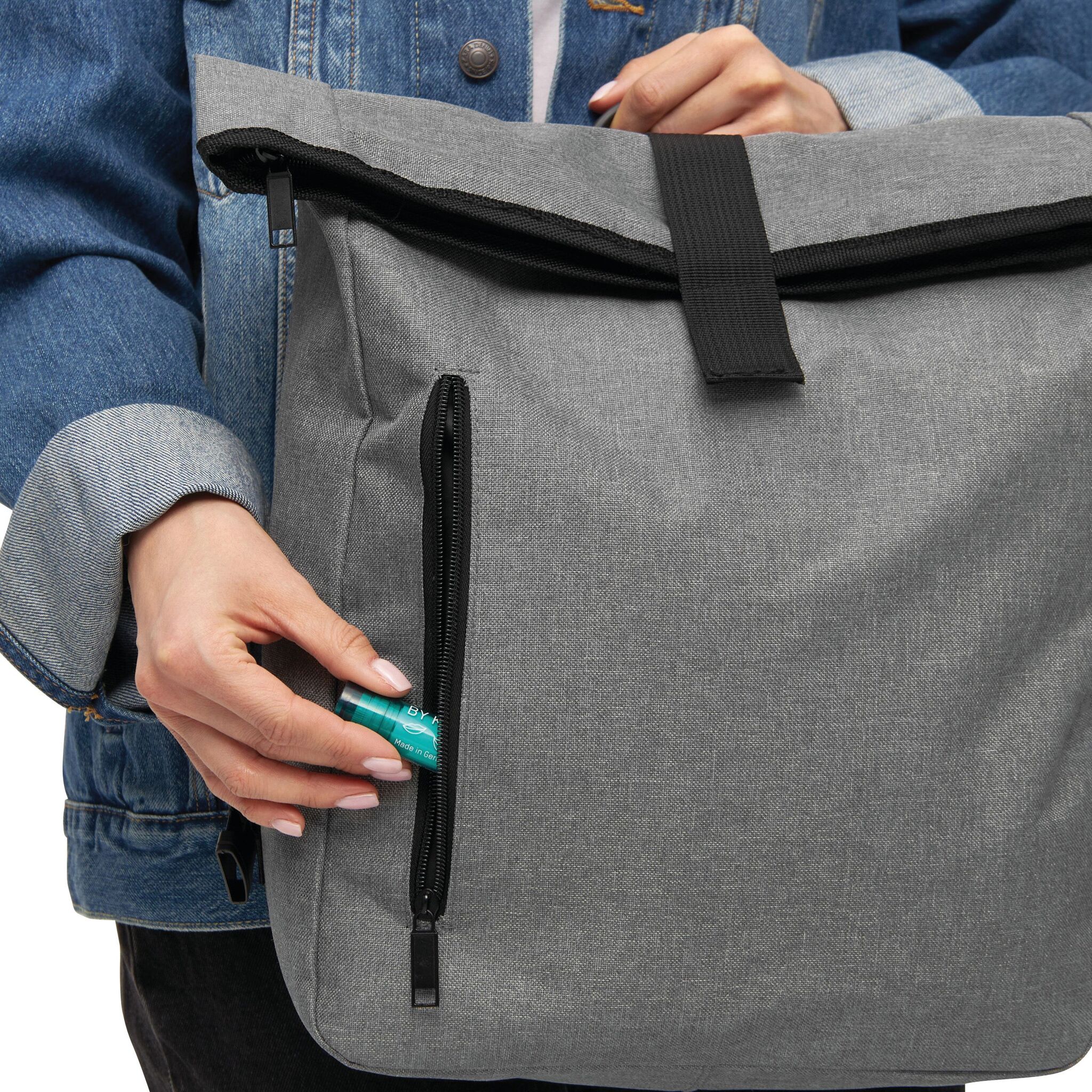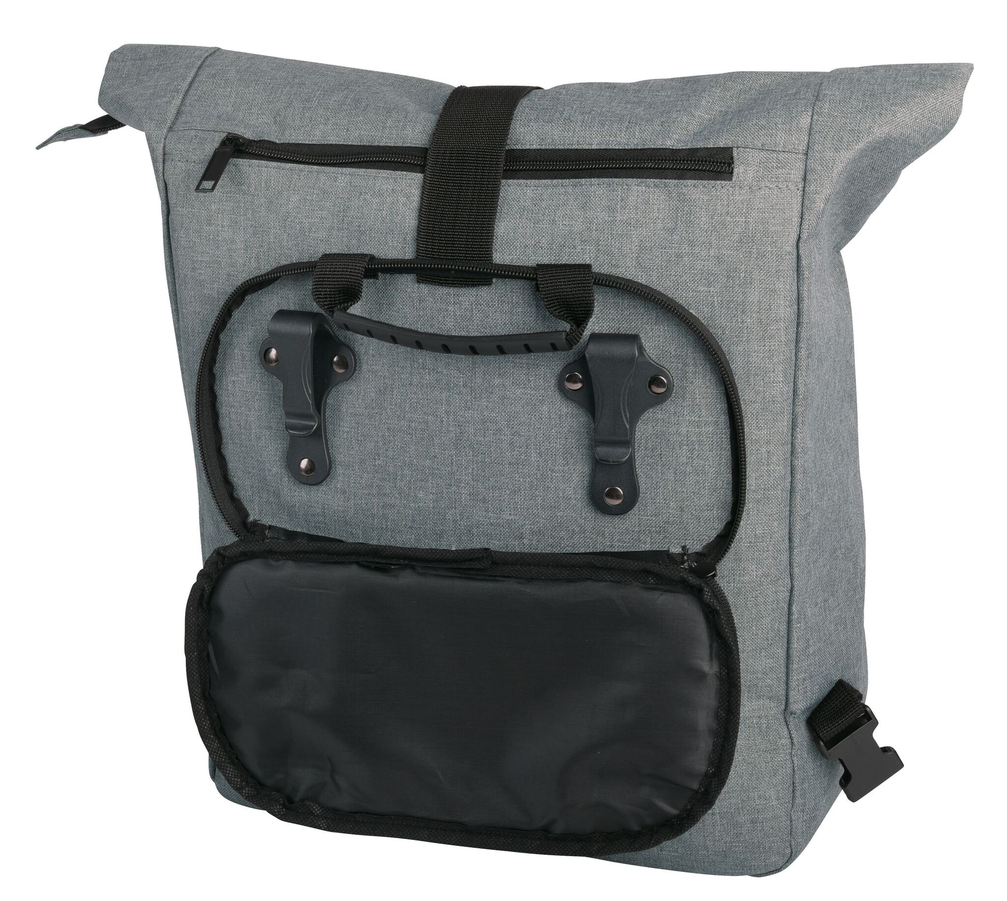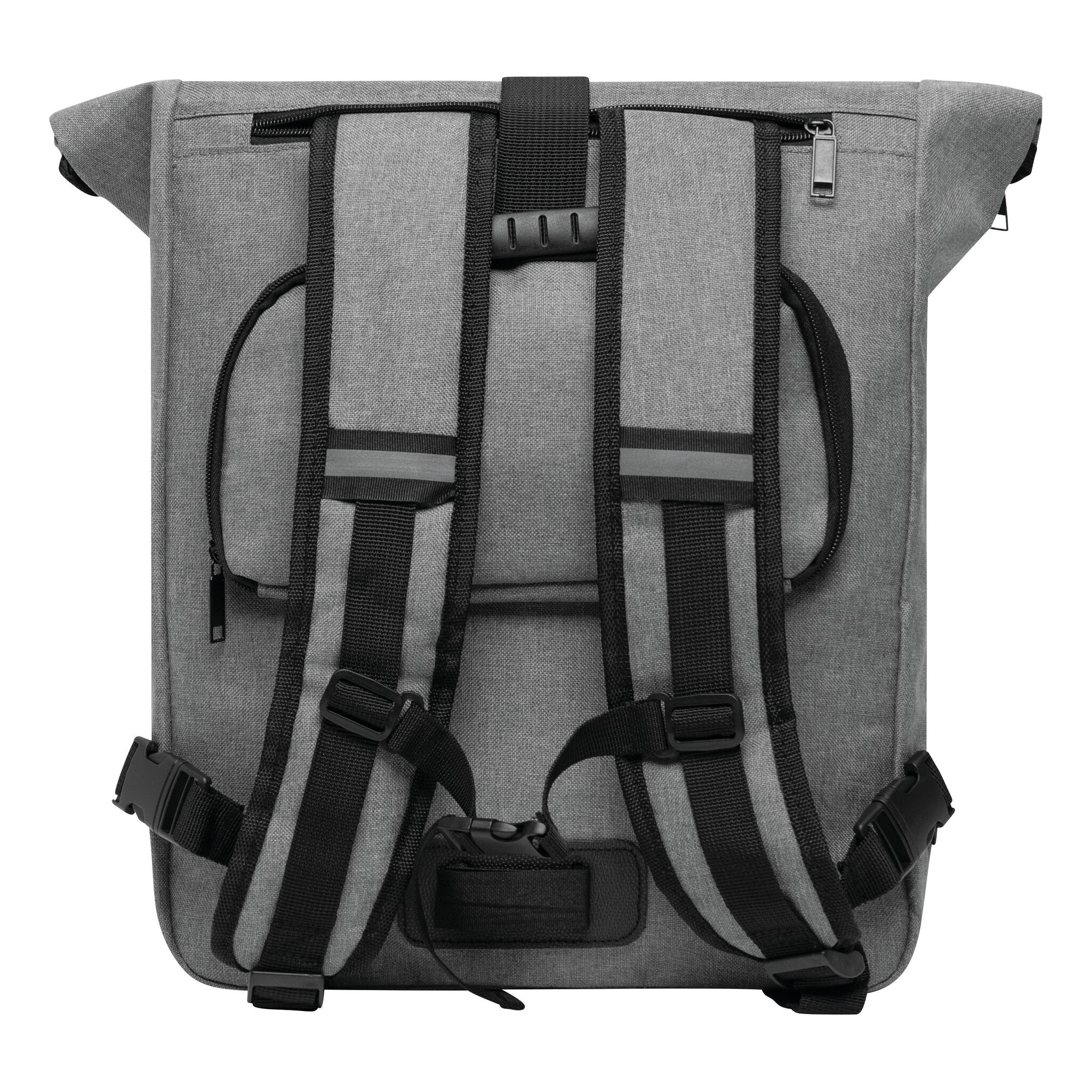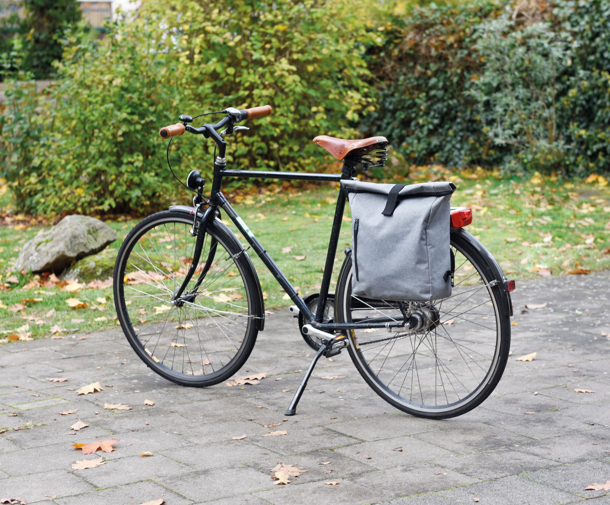 Fahrradrucksack BIKE RACE : Reißverschluss-Hauptfach mit gepolstertem Innenfach für Laptop oder Tablet, aufrollbar und mit Klettverschluss verschließbar, gepolsterte Schultergurte, Reißverschluss-Vortasche, abdeckbare Gepäckträgerhalterungen, Tragegriff, Schultergurte können in einem Reißverschlussfach verstaut werden