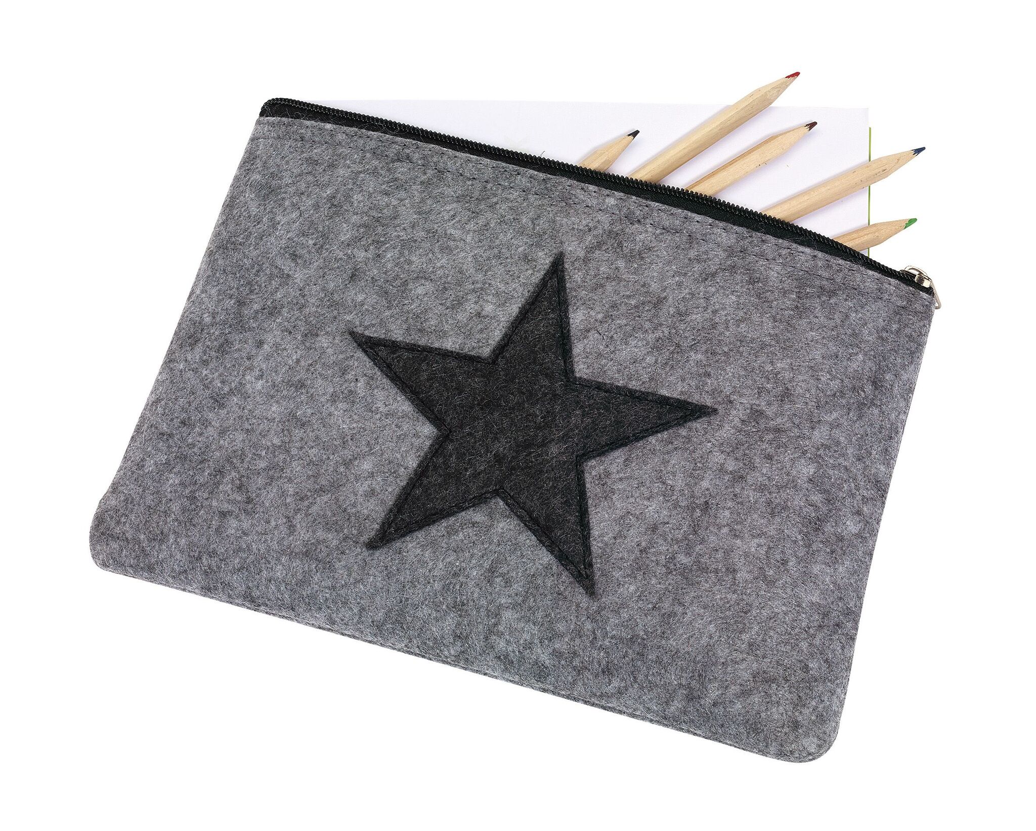 Фетровый клач-органайзер STAR DUST USE закрывается на молнию, много функциональная, может быть сумочкой для ручек, аксессуаров или косметичкой, спереди аппликация с мотивом звезды