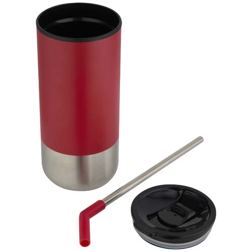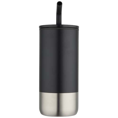 Стакан имеет двойные стенки и изоляцию, а также трубочку из переработанной нержавеющей стали с силиконовым наконечником для удобства использования. Внутренняя стенка изготовлена из пластика РР, а внешняя — из переработанной нержавеющей стали, сертифицированной RCS. Сдвижная крышка из пластика PS и ABS в сочетании с матовым покрытием придает стакану элегантный вид. Объем: 480 мл.