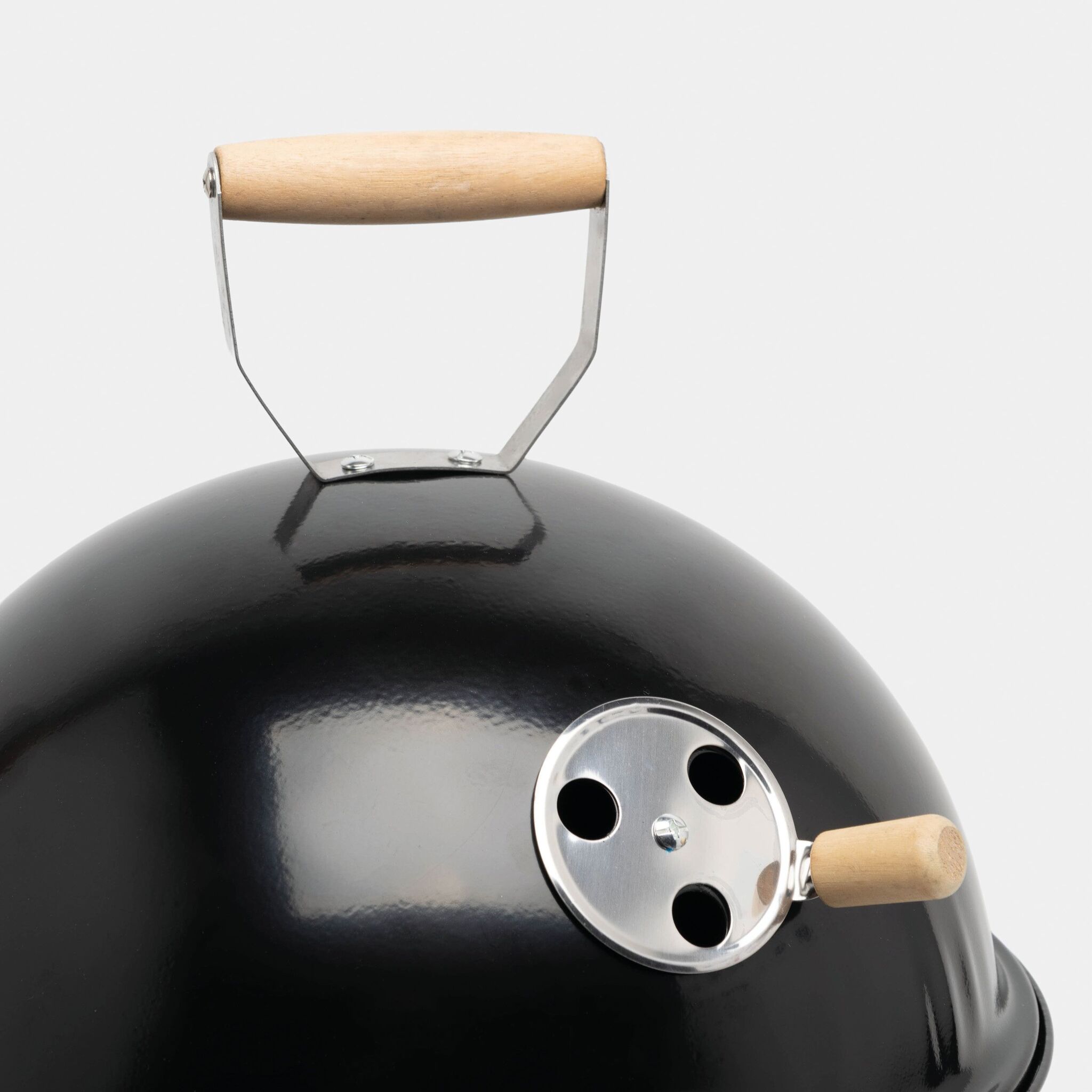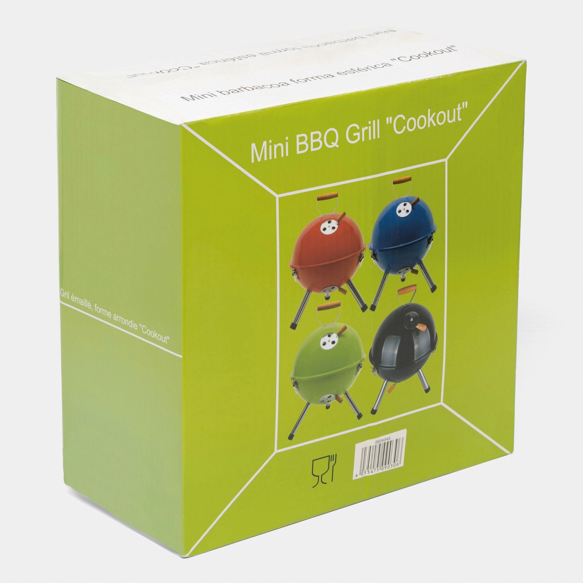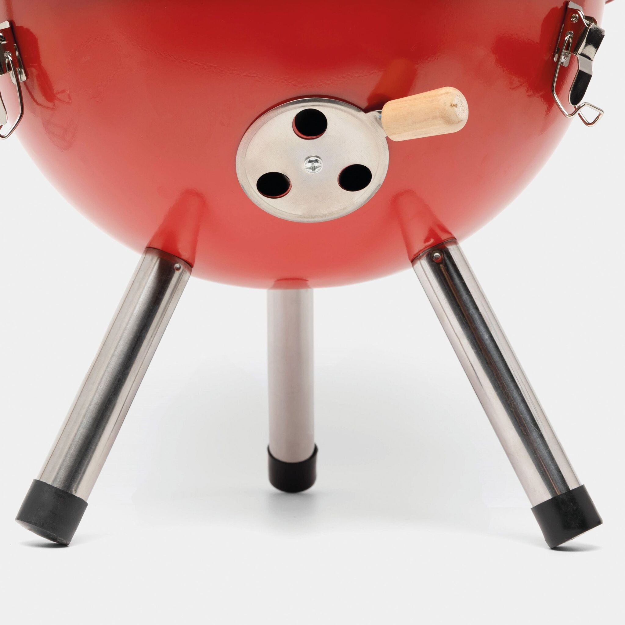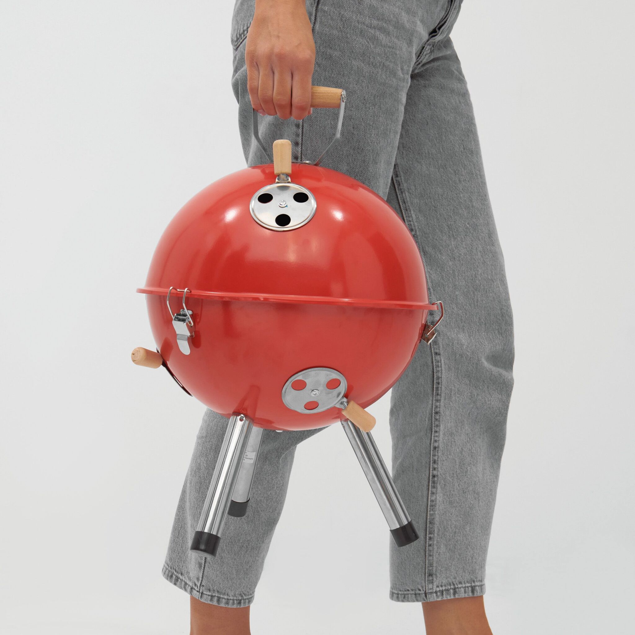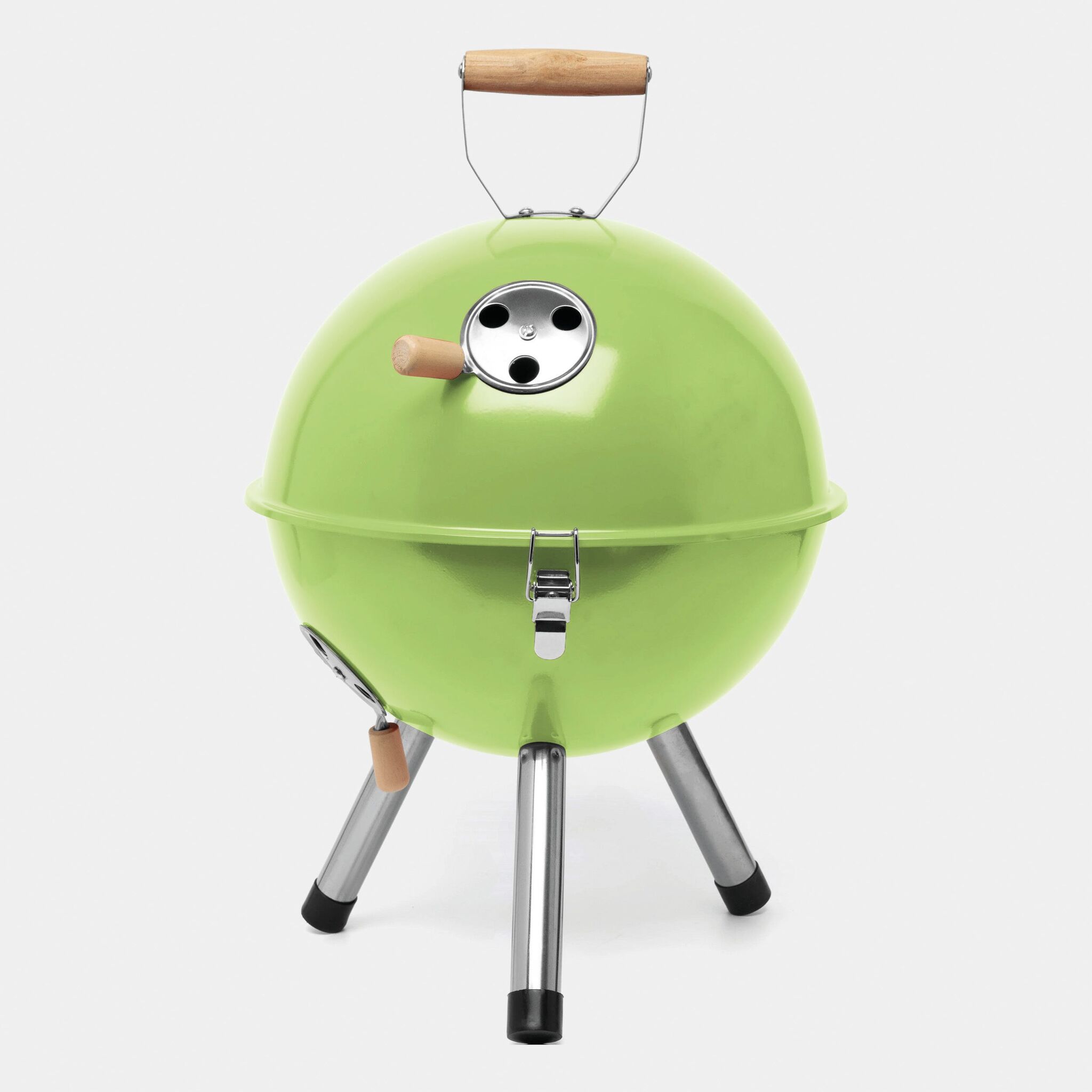 Гриль COOKOUT металлический корпус с 2 вентиляционными отверстиями, съемный поднос для угля с вентиляционными отверстиями, 1 съемная решетка диаметром около 29 см., крышка с вентиляционным отверстием и деревянной ручкой, 3 защелки, удерживающие крышку на корпусе, 3 металлические ножки с пластиковыми наконечниками, запакованный в коробку