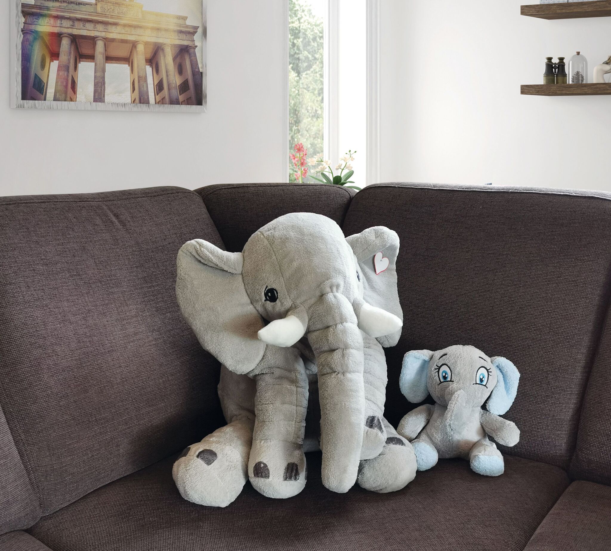 Großer Plüsch-Elefant LOUNIS : mit weichem Fell, mit Herz zum Bedrucken - Made in Europe