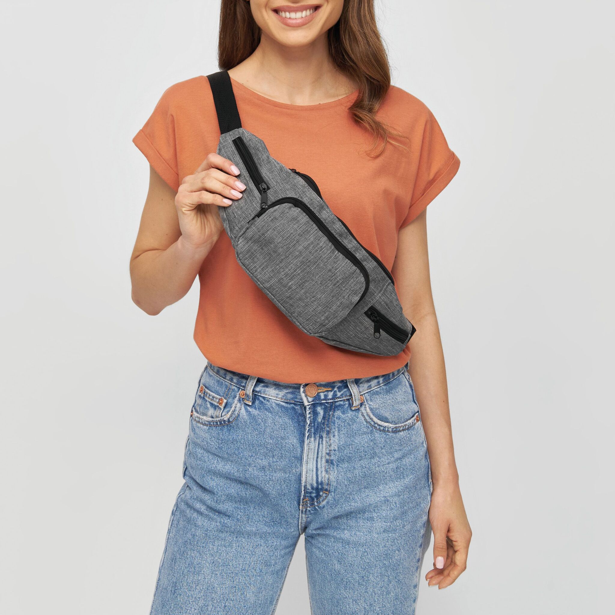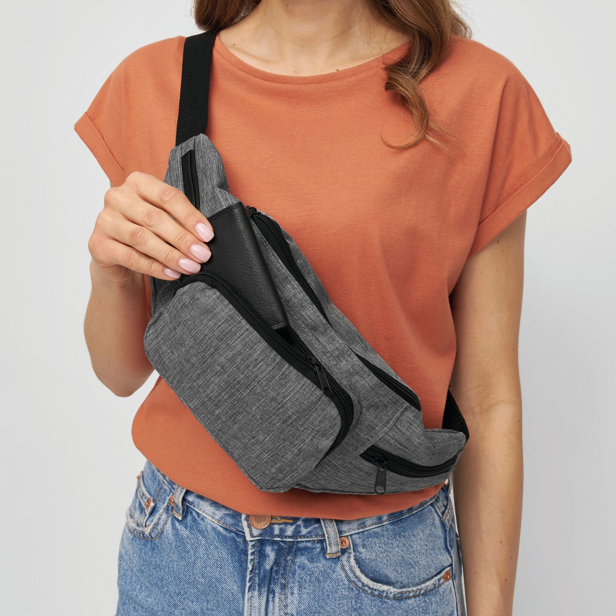 Gürteltasche QUAD : geräumiges Reißverschluss-Hauptfach, 1 Reißverschluss-Vortasche, 2 kleine, seitliche Reißverschluss-Fächer, verstellbarer Hüftgurt mit Schnappverschluss
