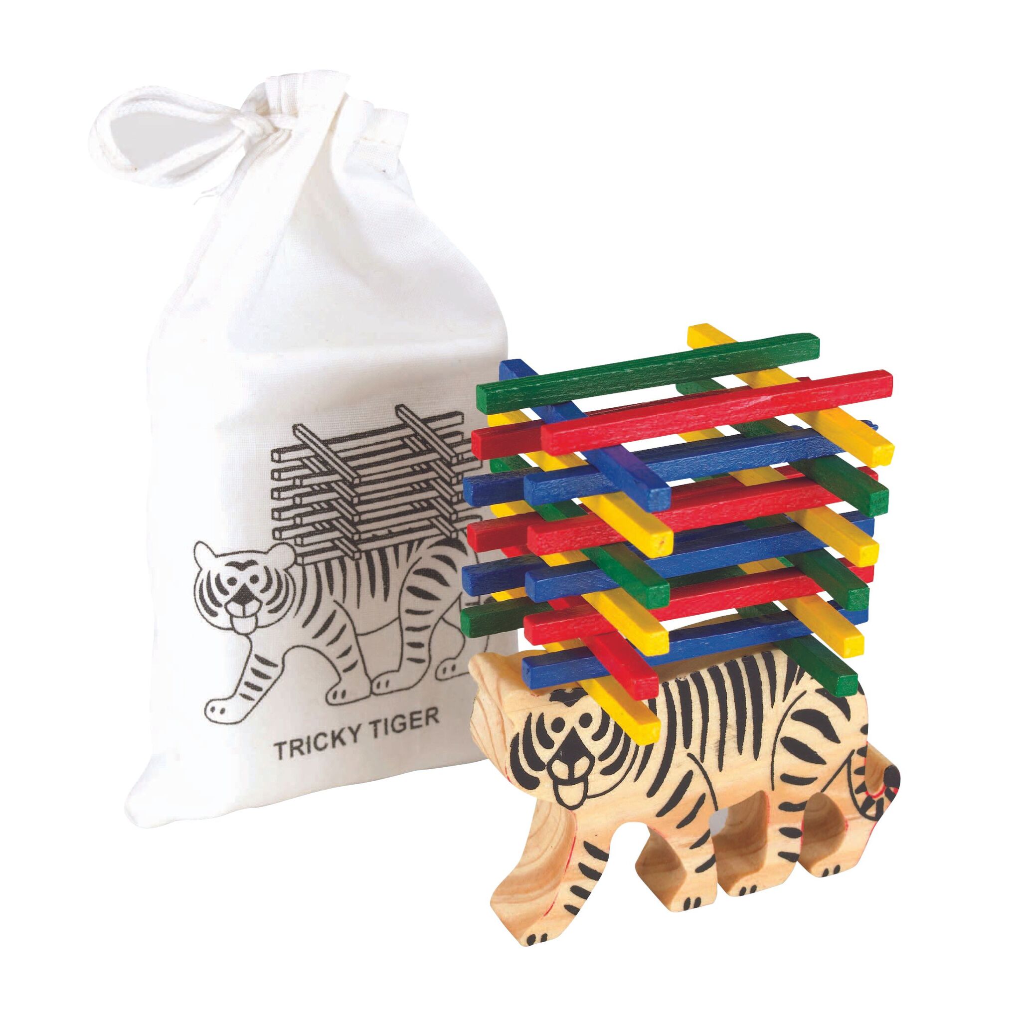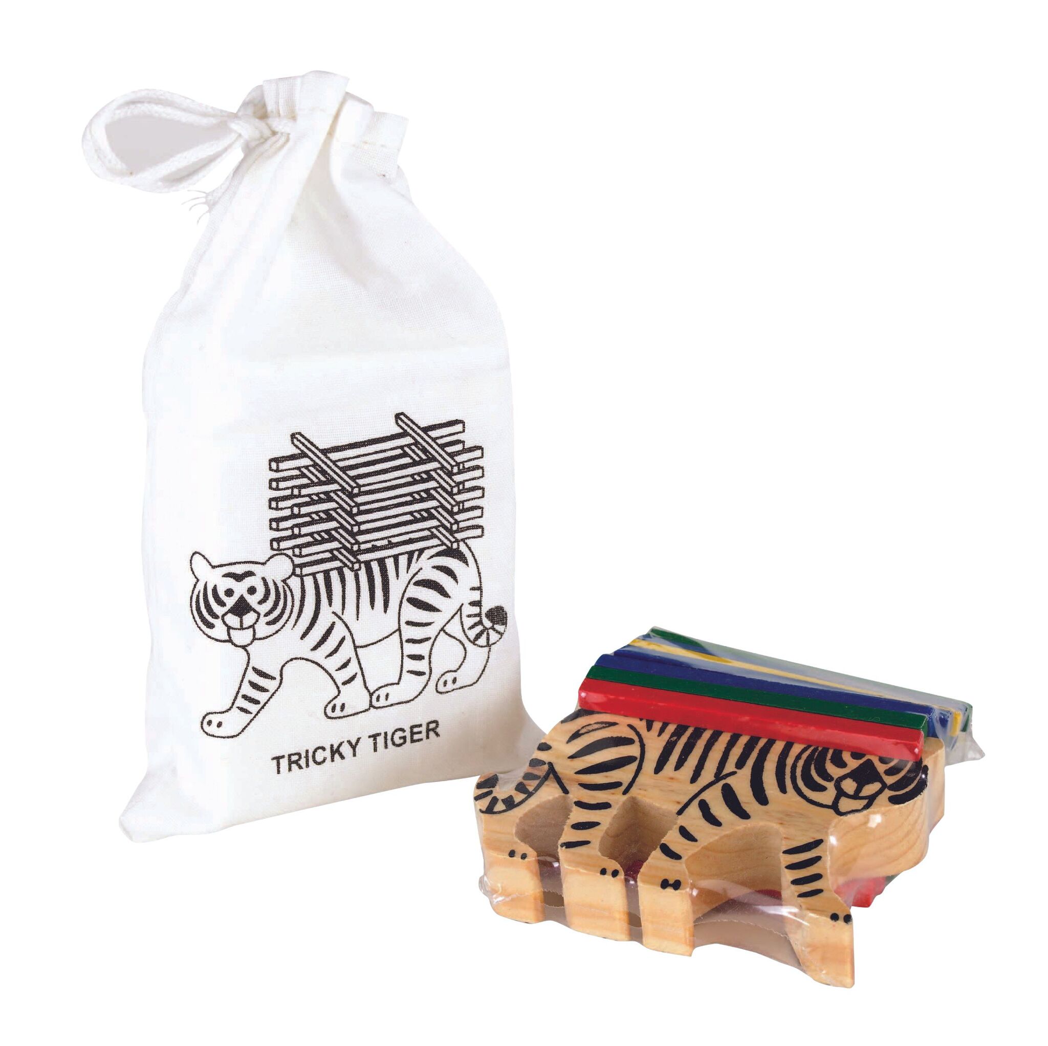 Игра на ловкость TRICKY TIGER тигр из дерева , 24 деревянные палочки четырёх цветов в асортименте, с описанием игры, в экологически безвредном хлопчатобумажном мешочке
