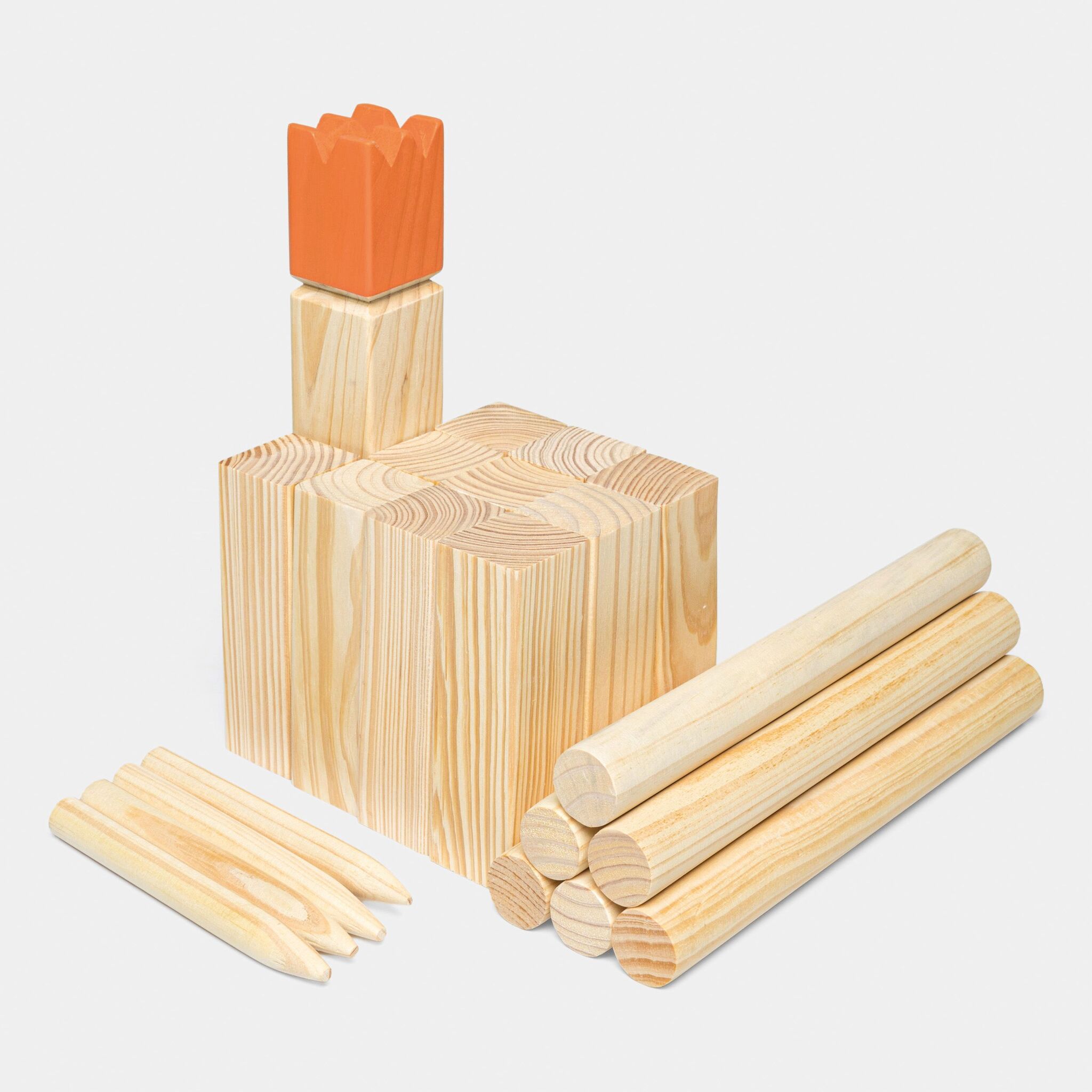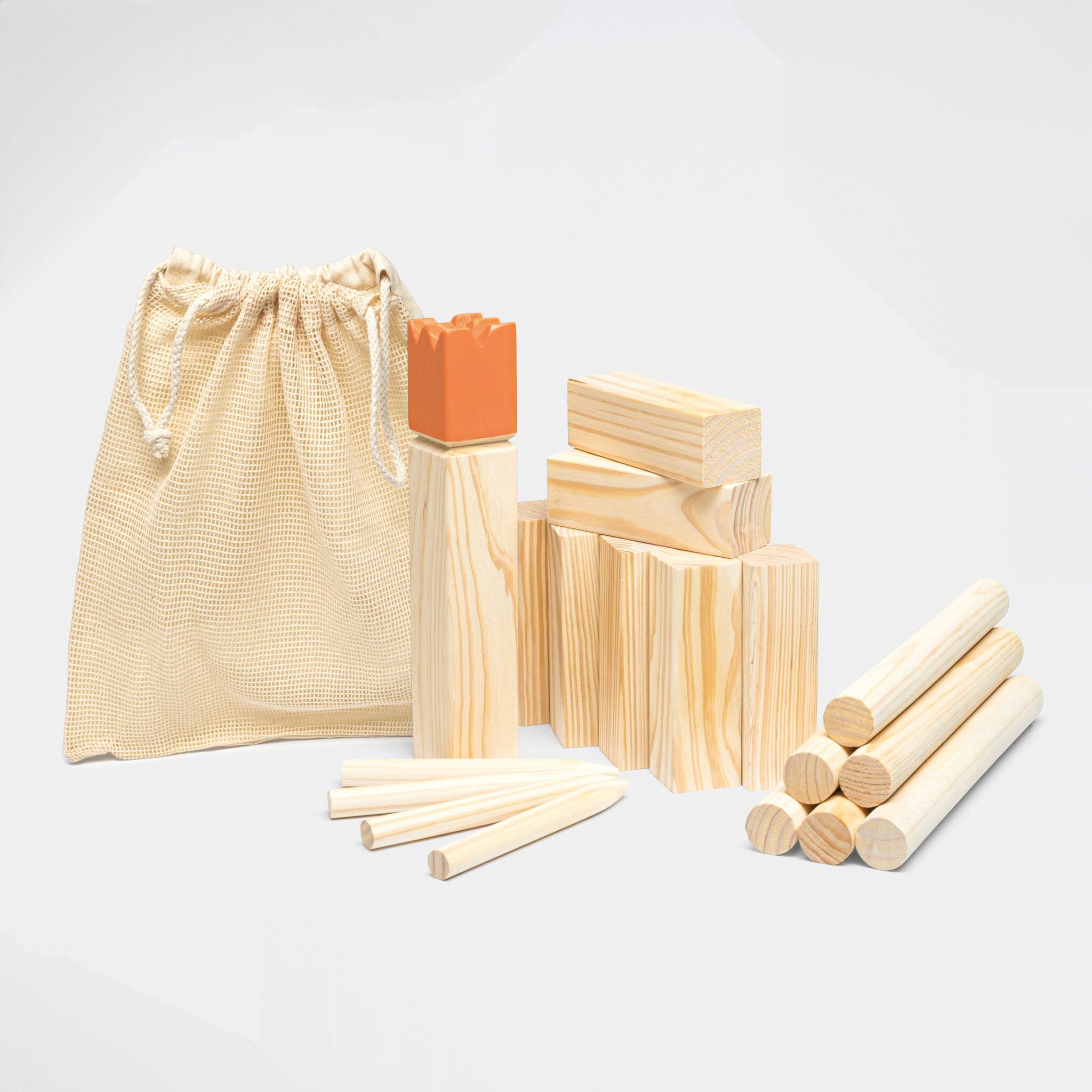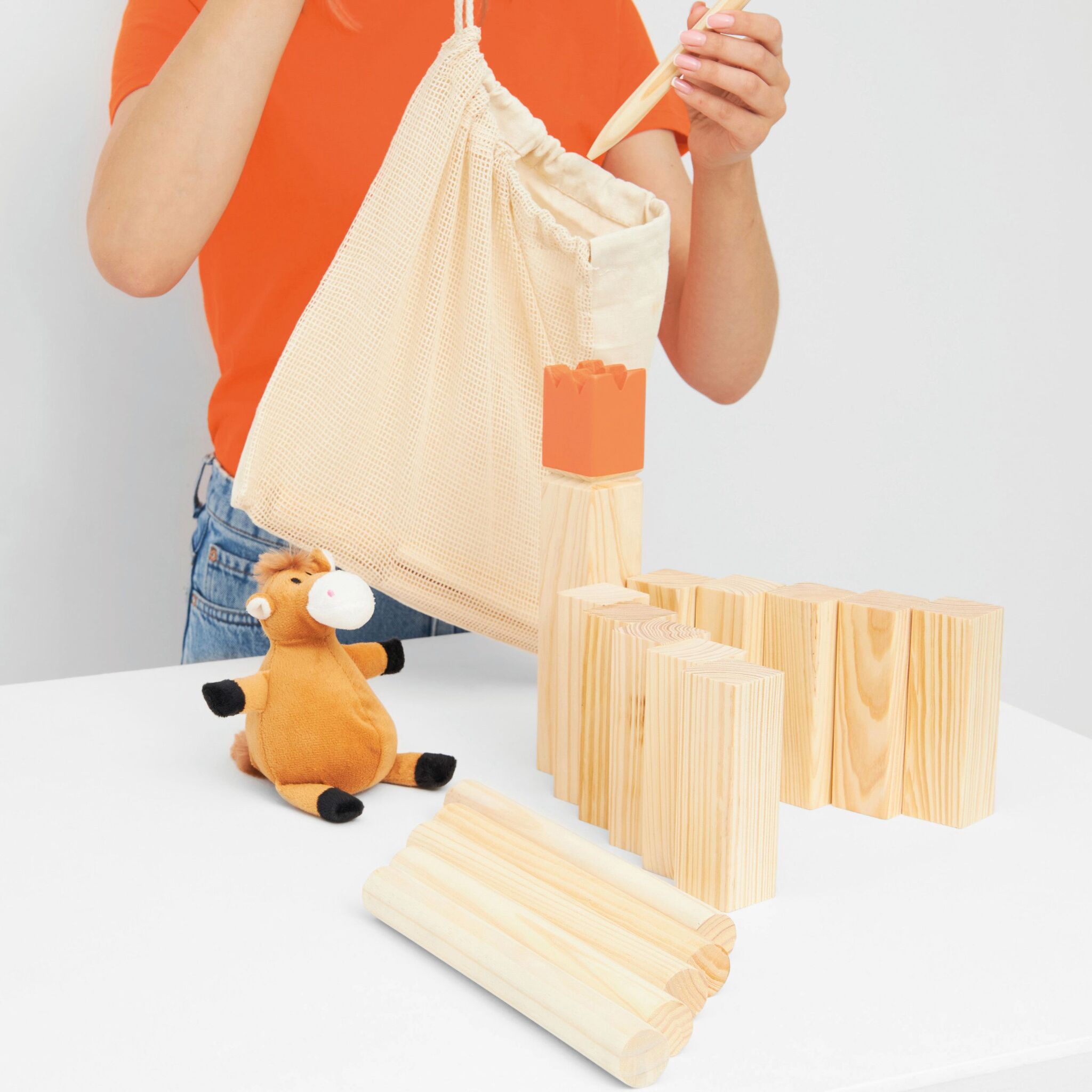 Игра в метание 'шахматы викингов' KUBB из дерева: 1 король, 4 угловых стойки, 10 деревянных пешек, 6 метательных палочек, вкл. хлопковый мешок, игра на ловкость на свежем воздухе для 2-12 игроков
