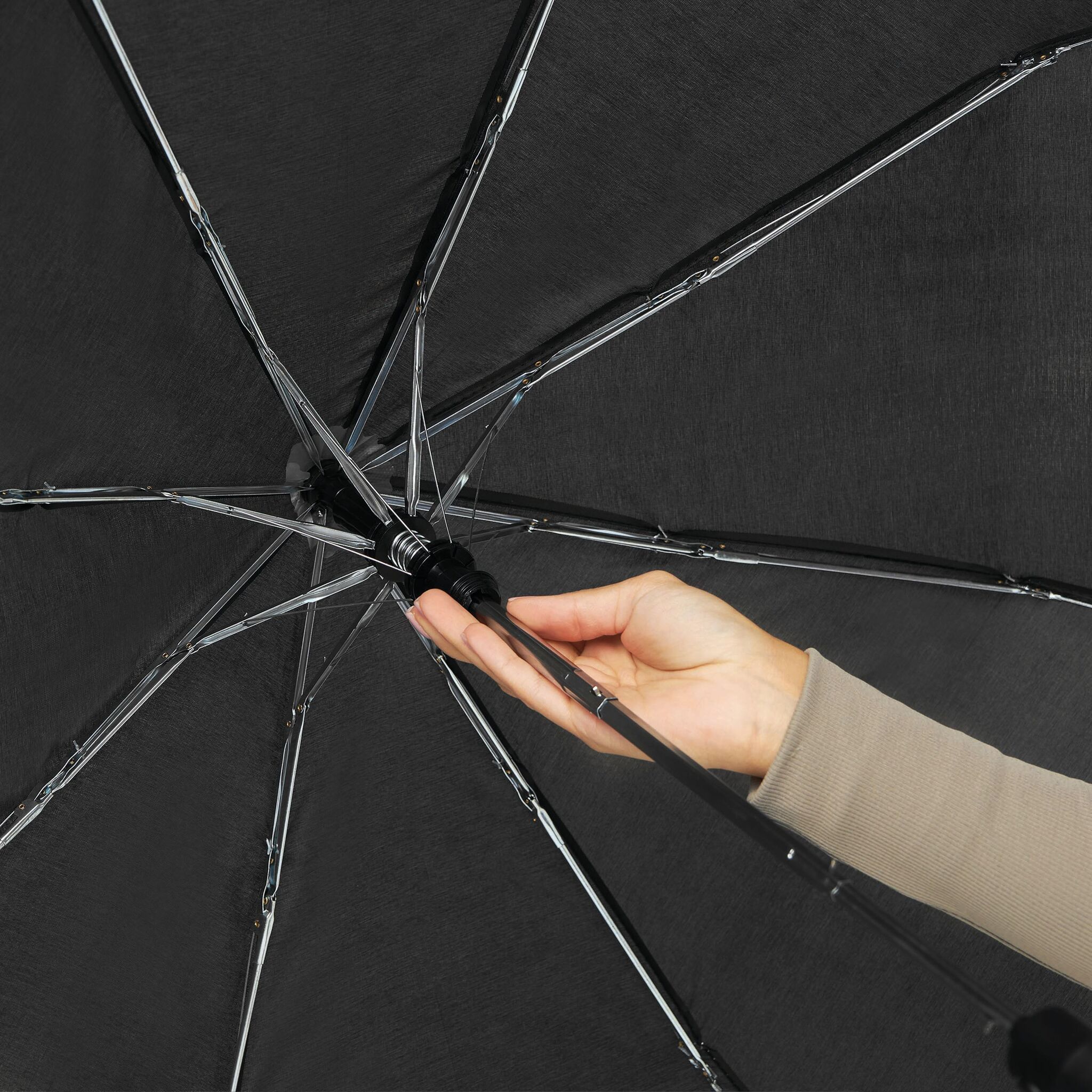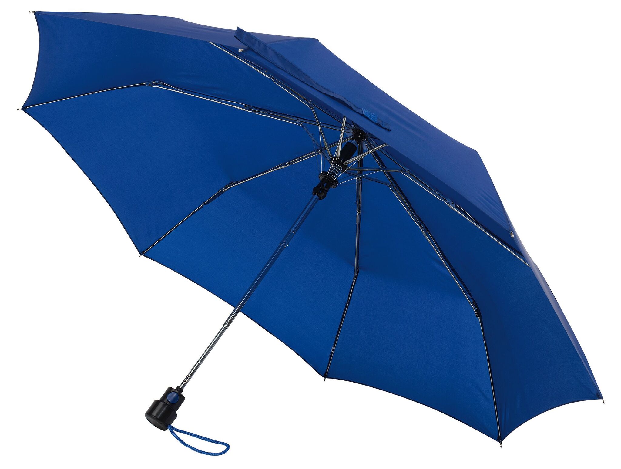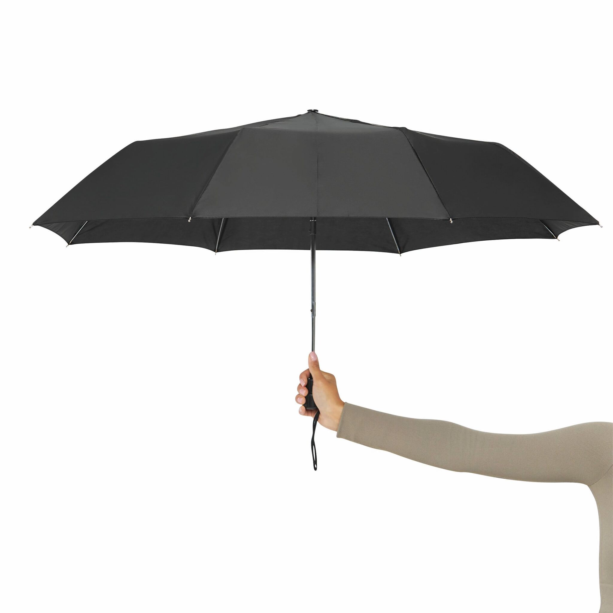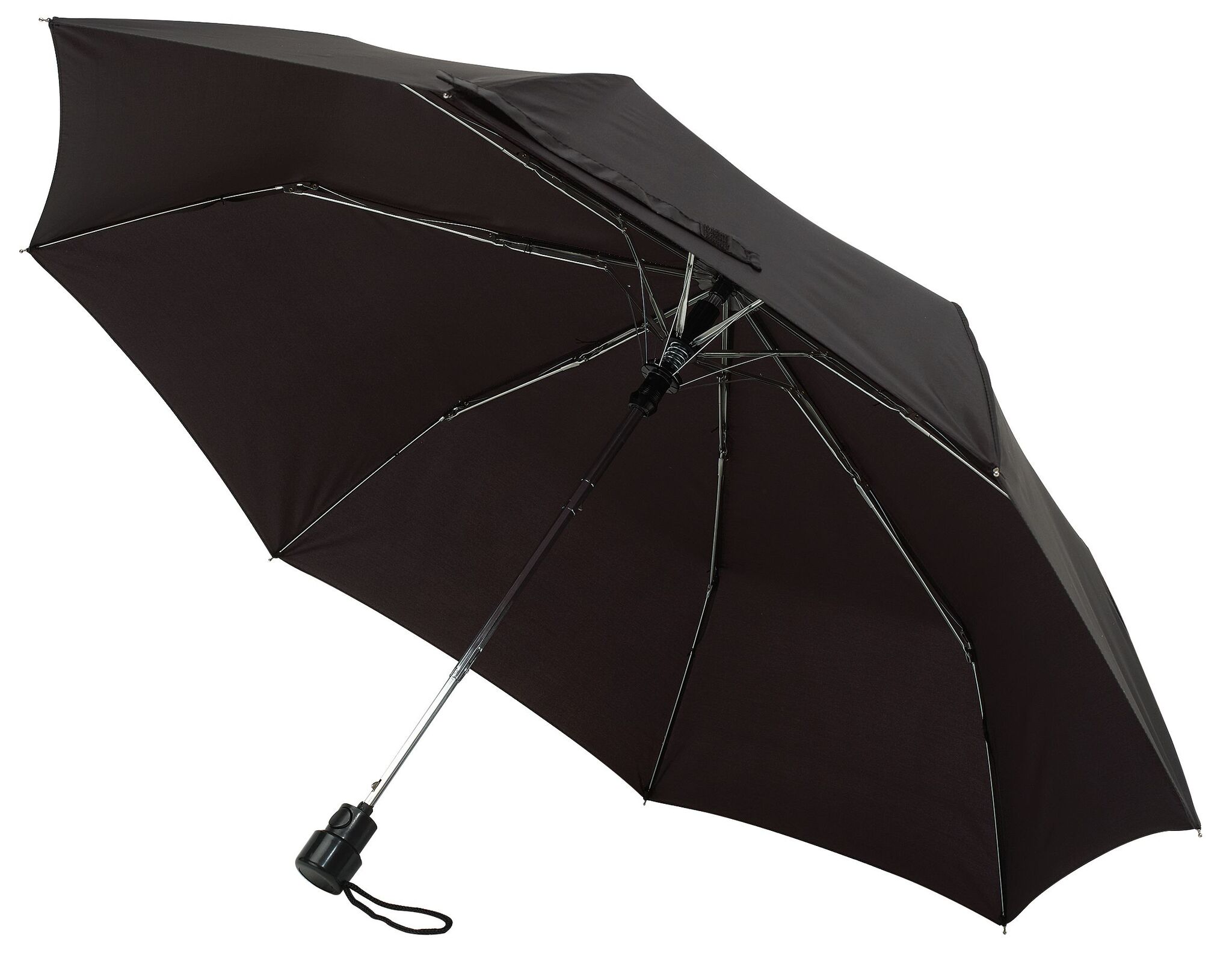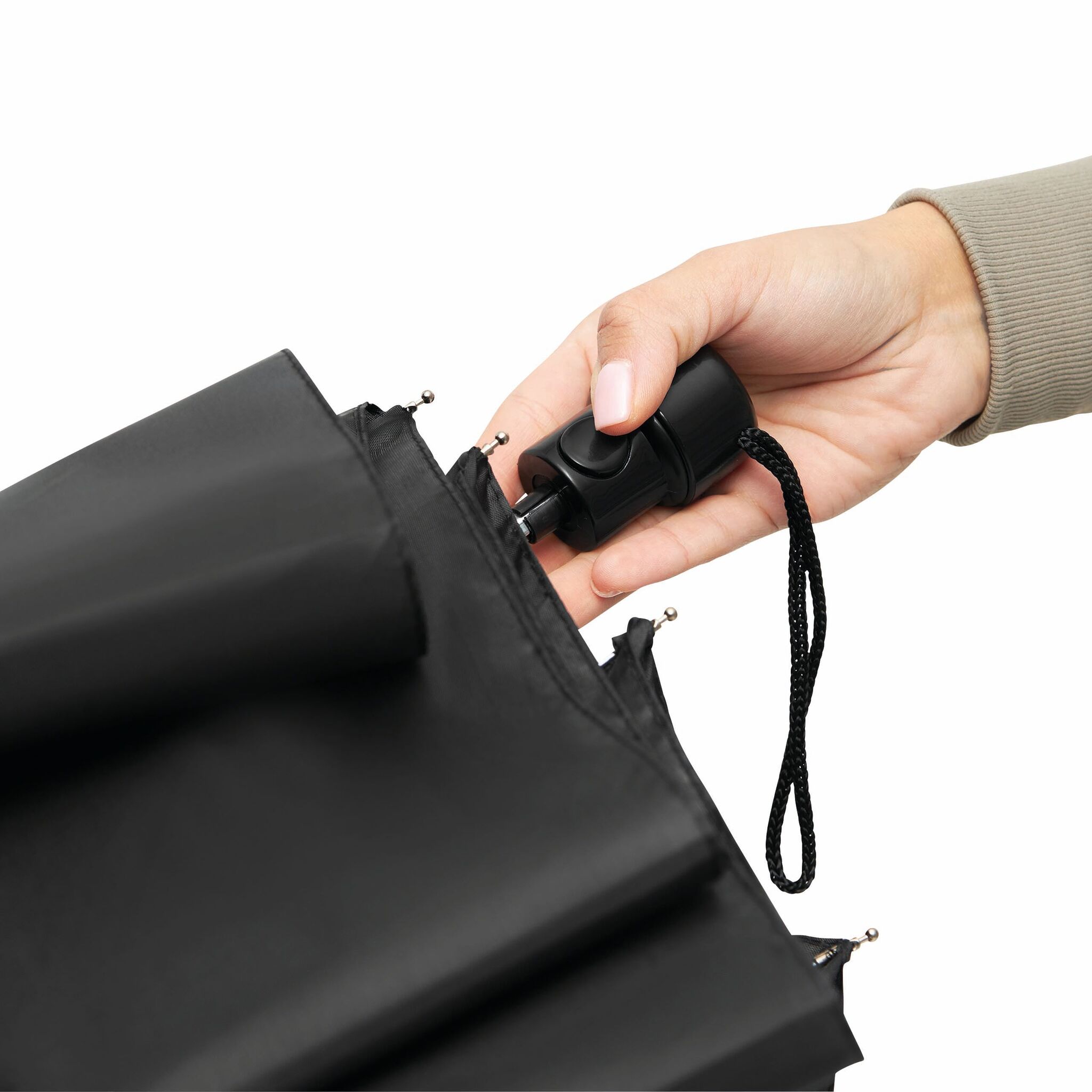 Карманный зонт автомат PRIMA чехол в цвете покрытия, металлический стержень из 3 частей, ребра, черная пластиковая ручка с автоматической кнопкой и петлей, закрывается на липучку
