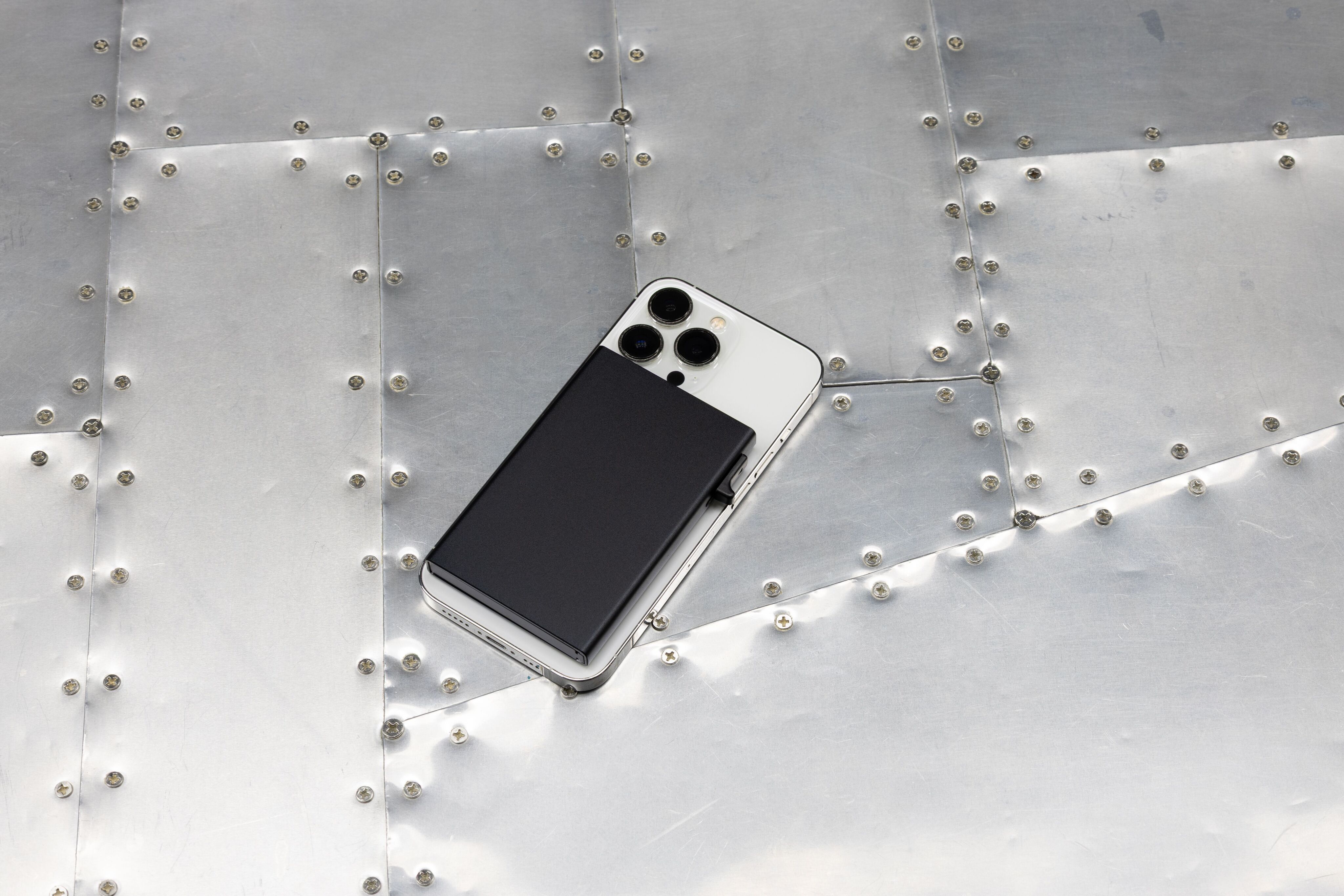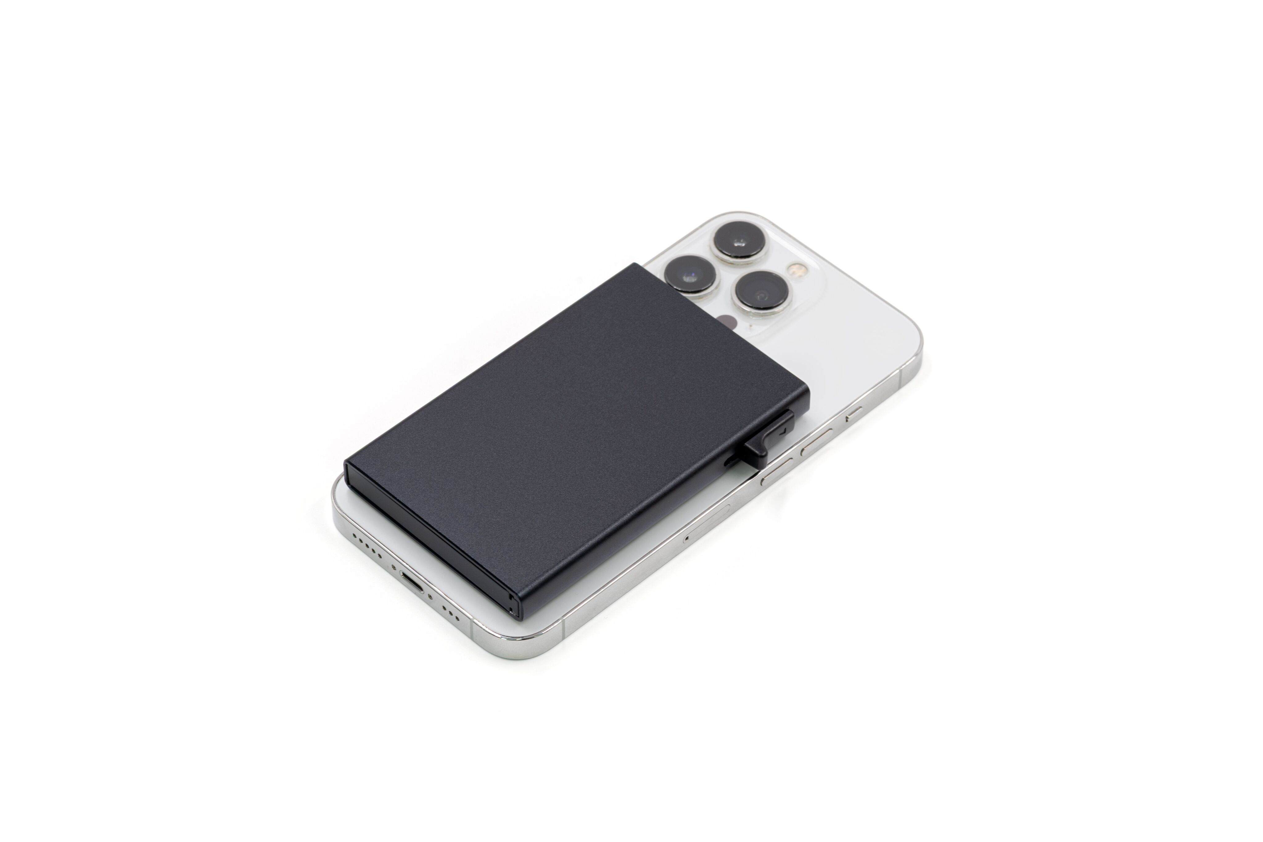 Совместим с Magsafe, нажимной механизм, защита RFID/NFC, вмещает до 6 карт, алюминиевое основание