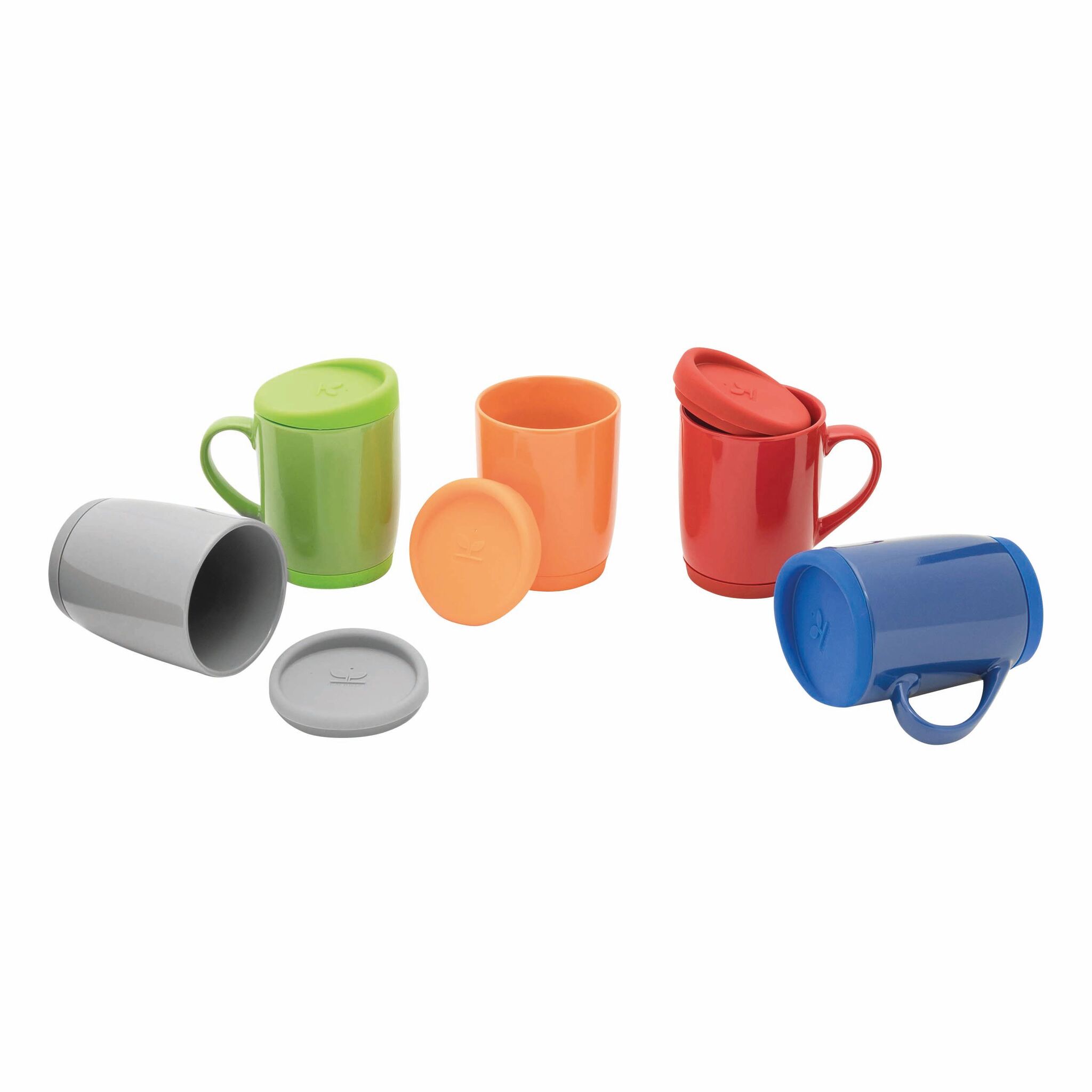 Керамическая кружка EASY DAY со съемной силиконовой подставкой и силиконовой крышкой, предохраняющей от проливания, вместимость ок. 350 ml, в белой коробке