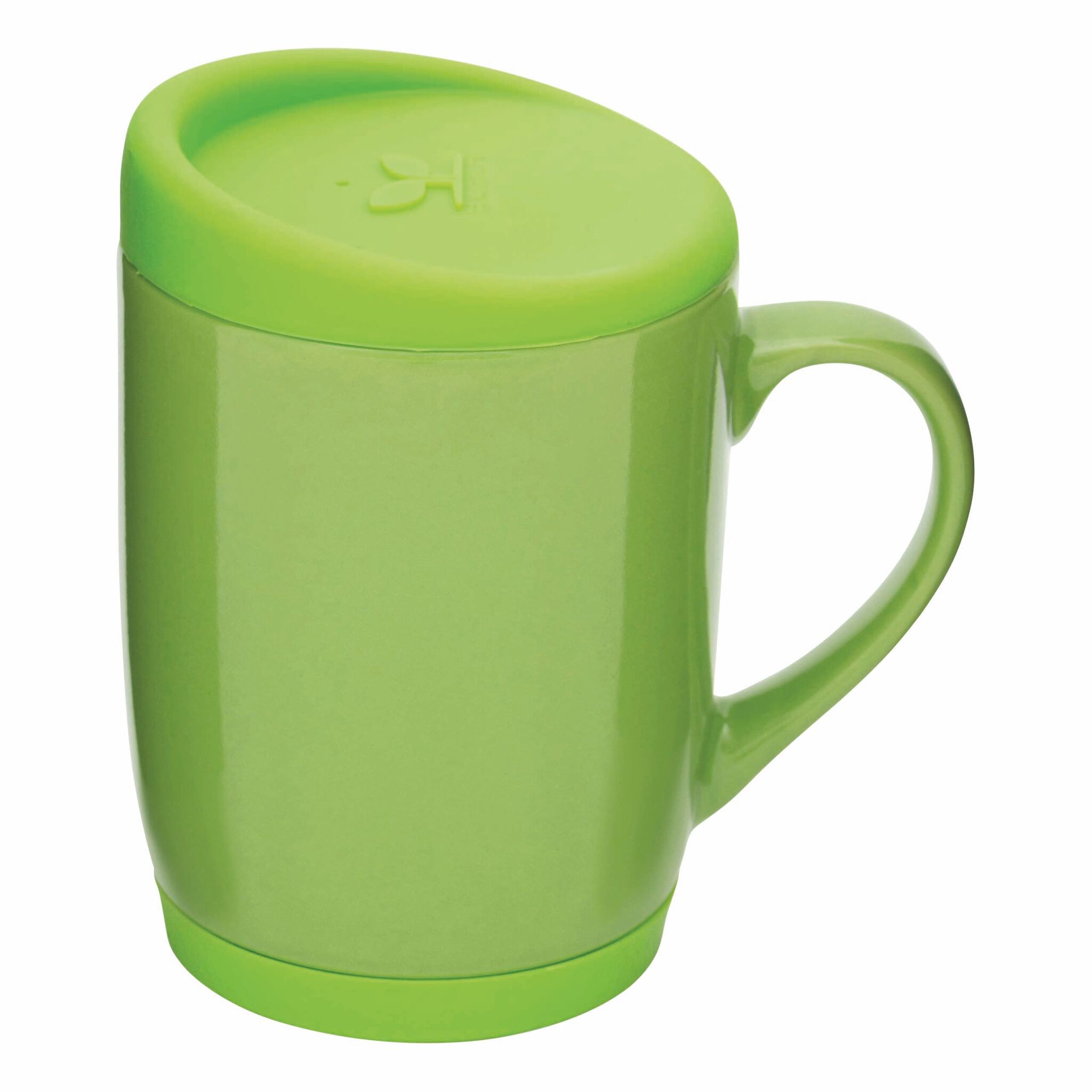 Керамическая кружка EASY DAY со съемной силиконовой подставкой и силиконовой крышкой, предохраняющей от проливания, вместимость ок. 350 ml, в белой коробке