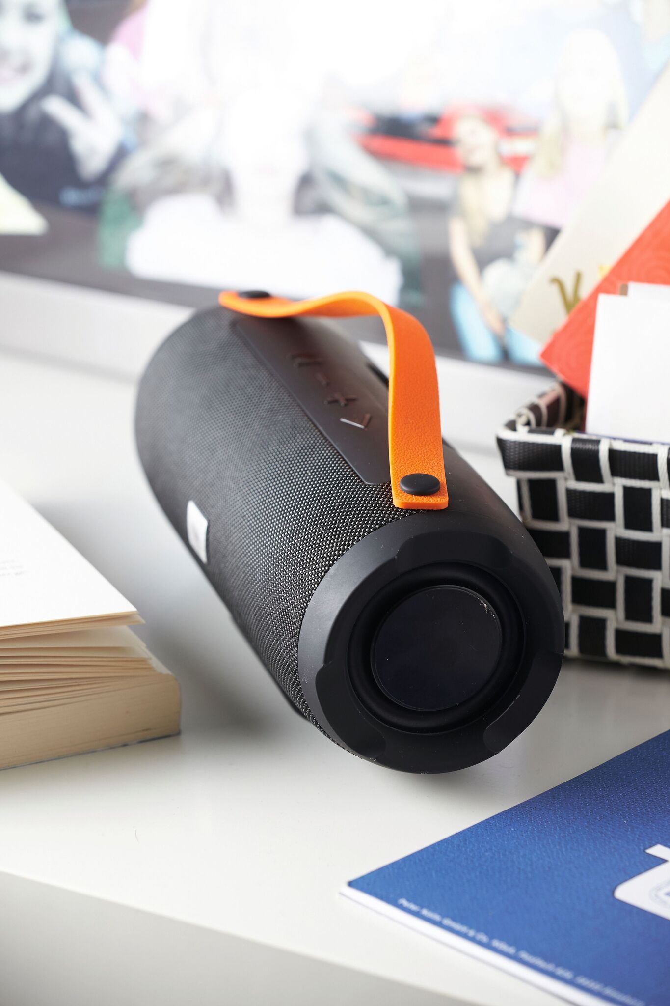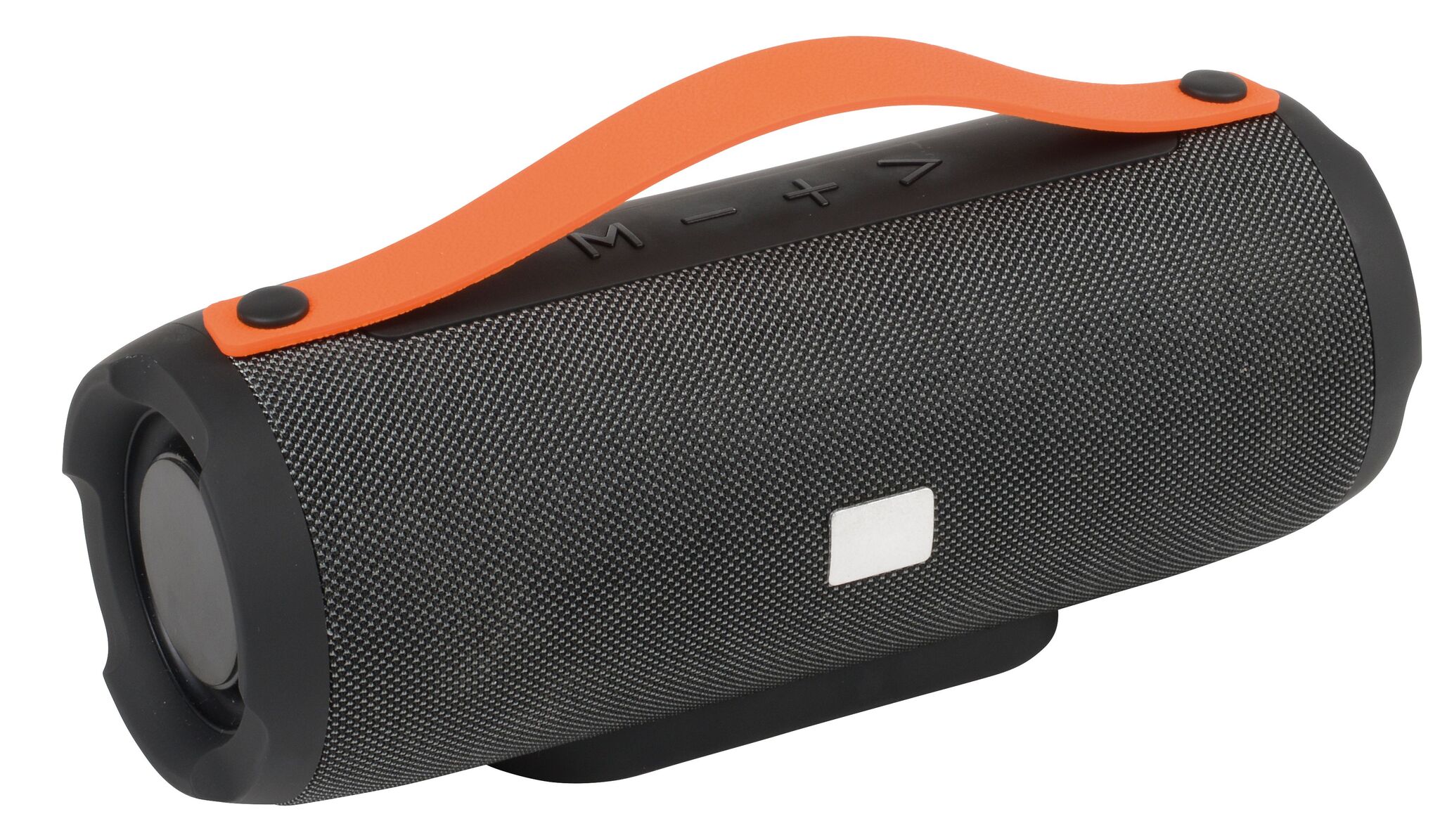 Колонка с беспроводным соединением MEGA BOOM : мощность 2 x 5 watt, компатебилен с моб.телефонами, планшетами и тд., возможно подключение к внешним устройствам через разъем AUX-IN, воспроизведение MP3 через USB и с карты Micro-SD, функция громкой связи, FM радио, аккумуляторная батарея ёмкостью 1.200 mAh, время работы ок. 2-3 ч, время зарядки- ок. 2ч, макс.радиус действия -ок 10 м, в наборе зарядный USB-кабель со штекером Micro-USB (длина ок. 34,5 см) и аудио-кабель (длина ок.51см), маленькая пластинка для гравировки и оранжевая силиконовая ручка