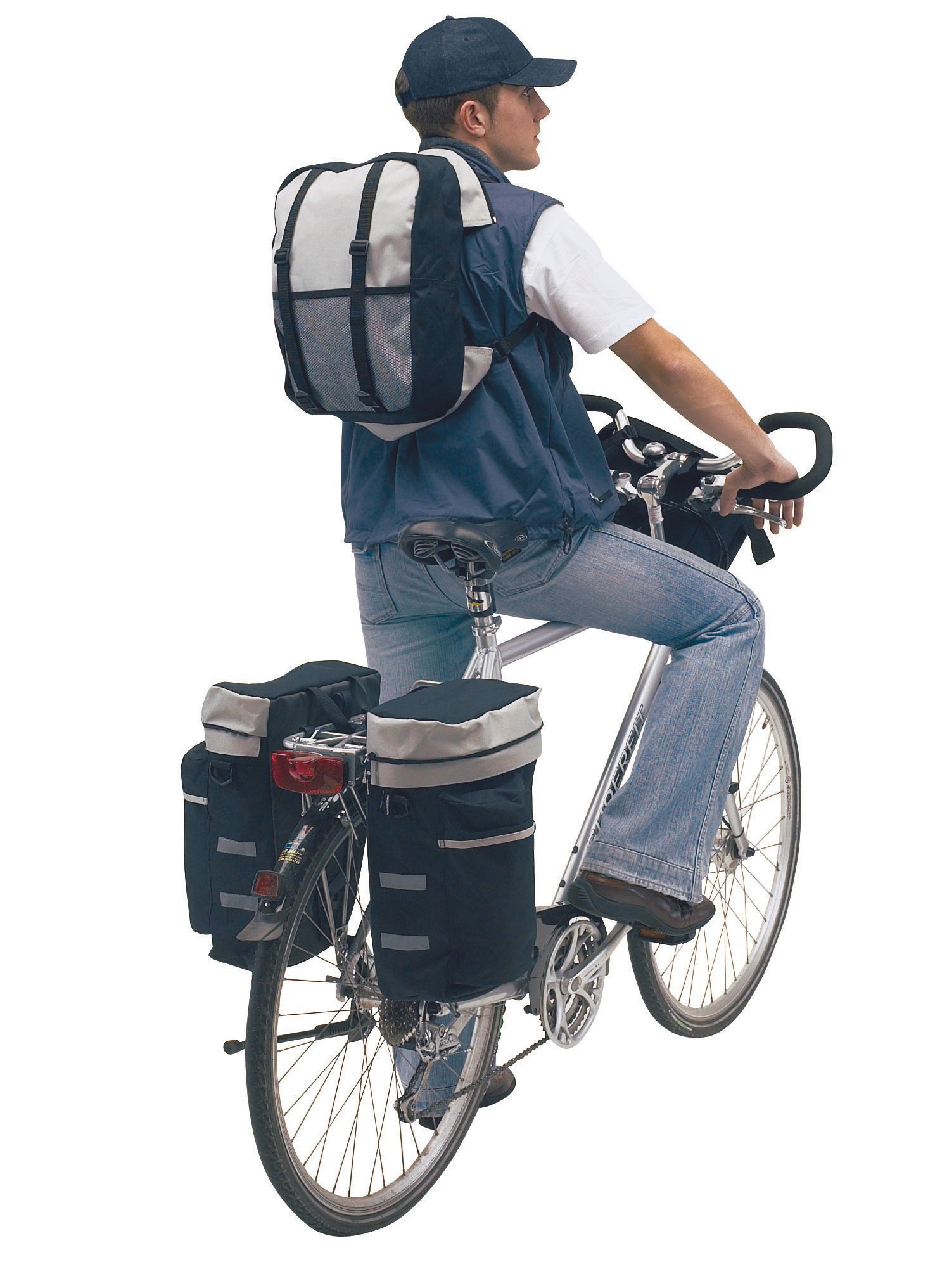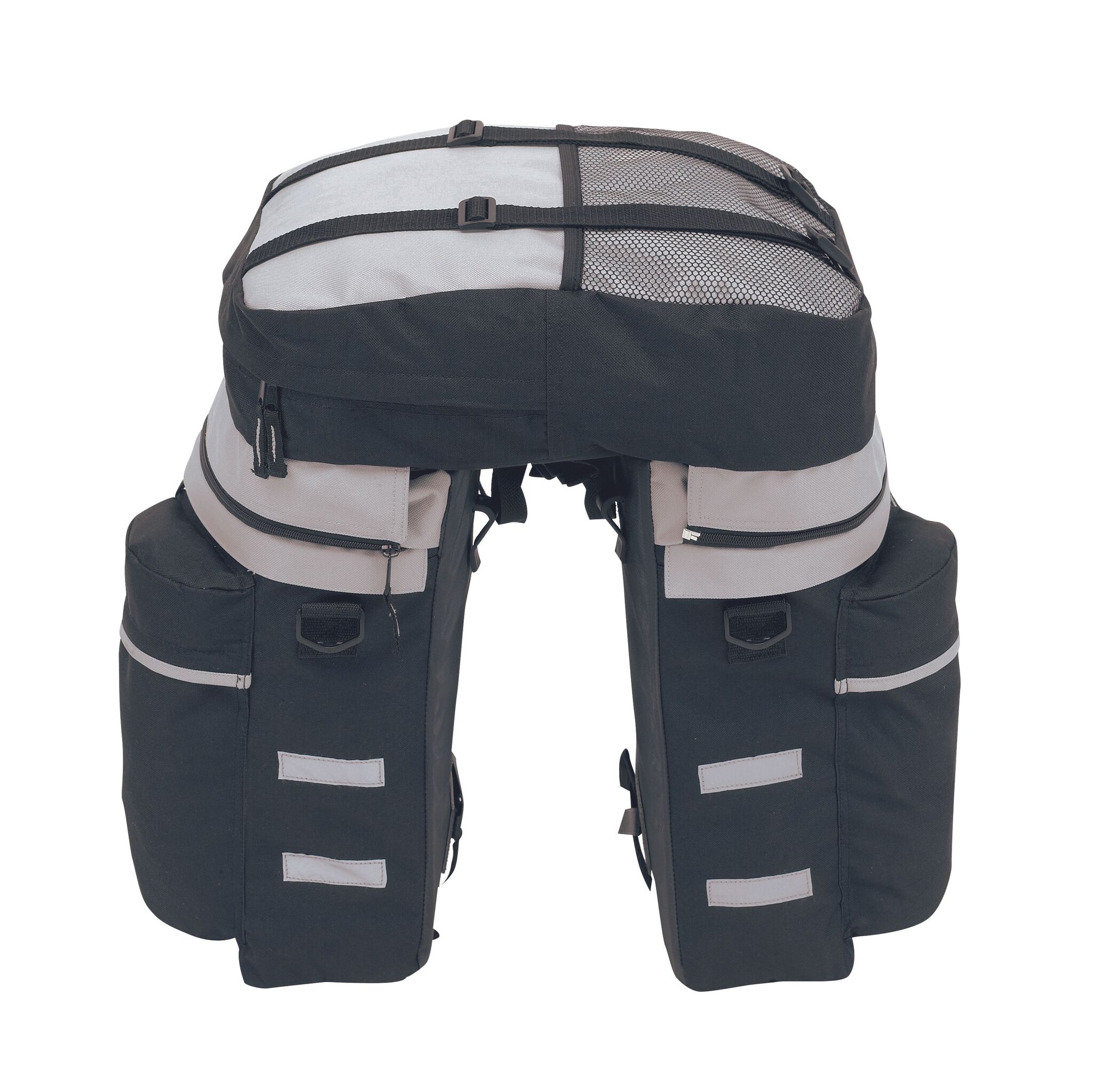 Комплект сумок BIKE : 2 боковые секции с флюоресцентными полосками и рюкзак, c защитой от дождя и съёмными плечевыми ремнями