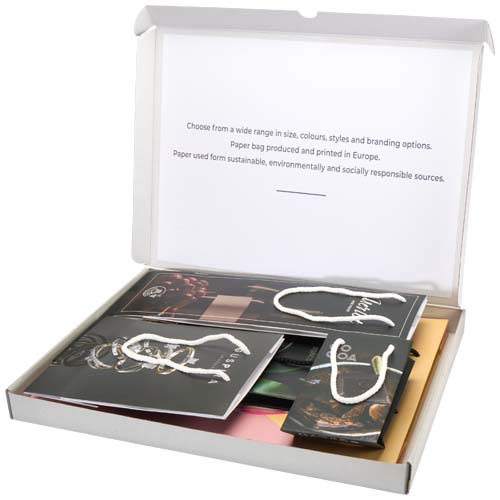 Коробка образцов с 6 матовыми сумками из бумаги Integra с пластиковыми ручками. Доступно 6 разных размеров (9,5 х 4 х 17 см, 12 х 9 х 37 см, 18 х 9 х 23 см, 24 х 9 х 36 см, 31 х 12 х 41 см, 45 х 10 х 35 см). Сделано в Европе.
