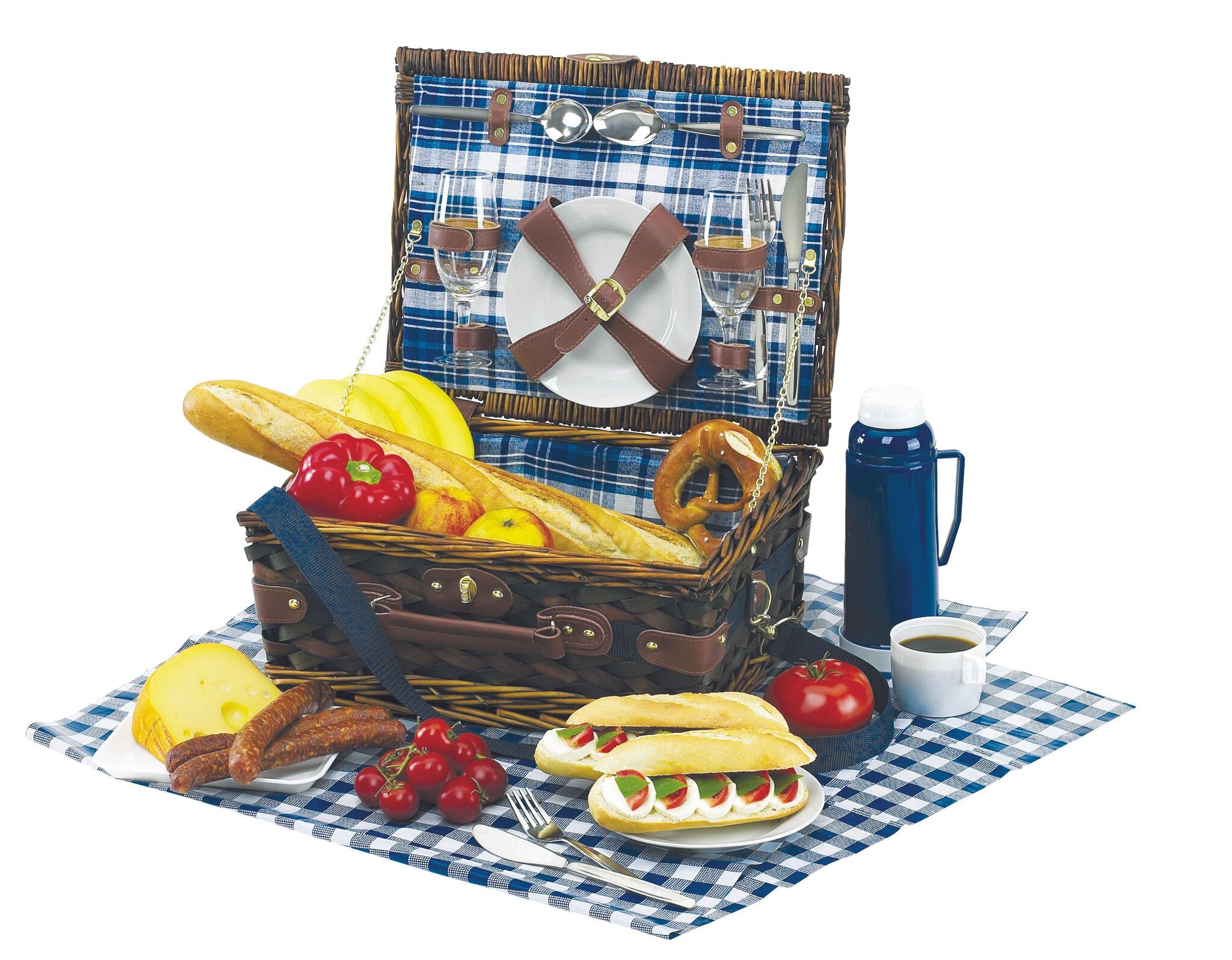 Корзина для пикника CENTRAL PARK с посудой, столовыми приборами, термосом и скатертью, на 2 персоны